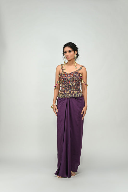 PLUM HIGHLIGHTED BBADLA CORSET SKIRT DHOTI SET