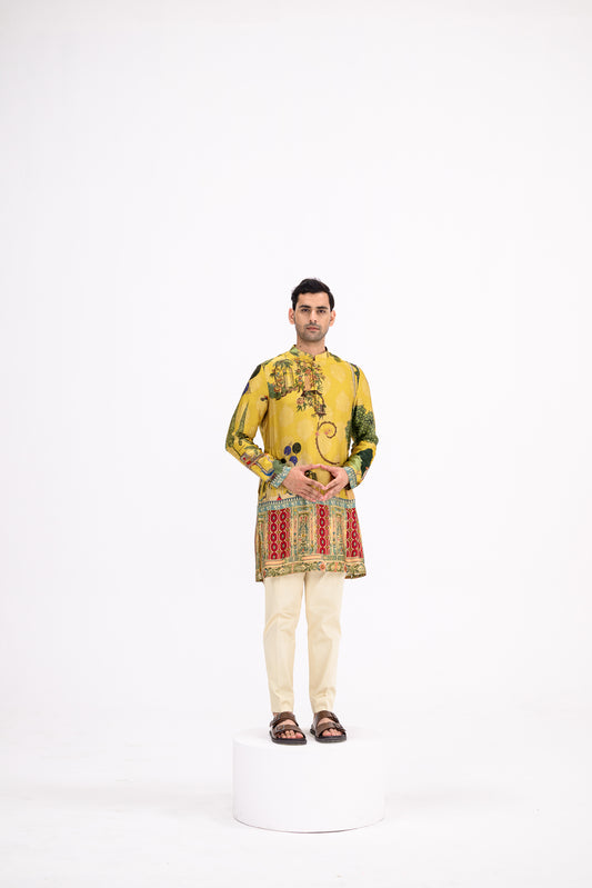 Mustard Mughal Garden Kurta /kurta Set