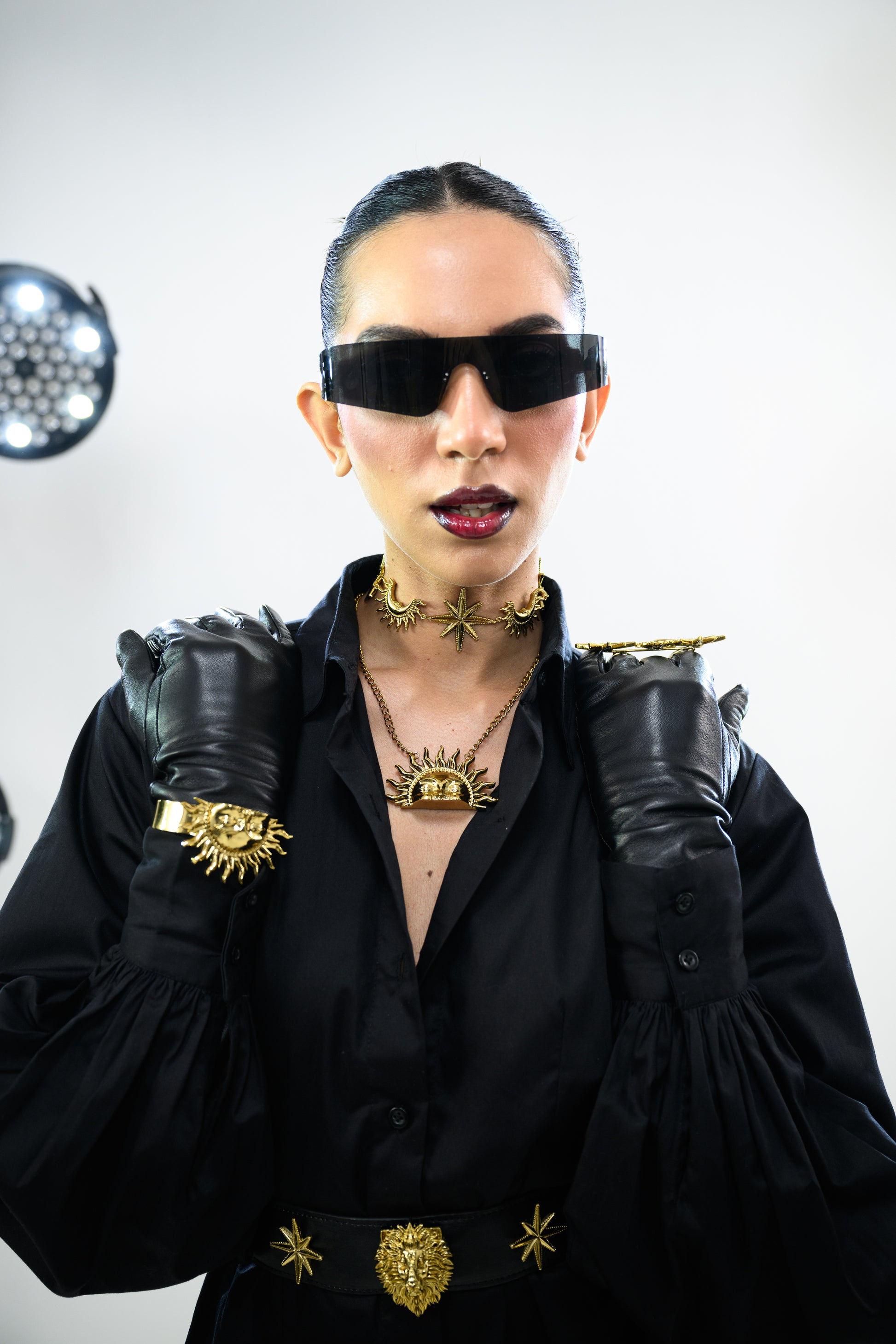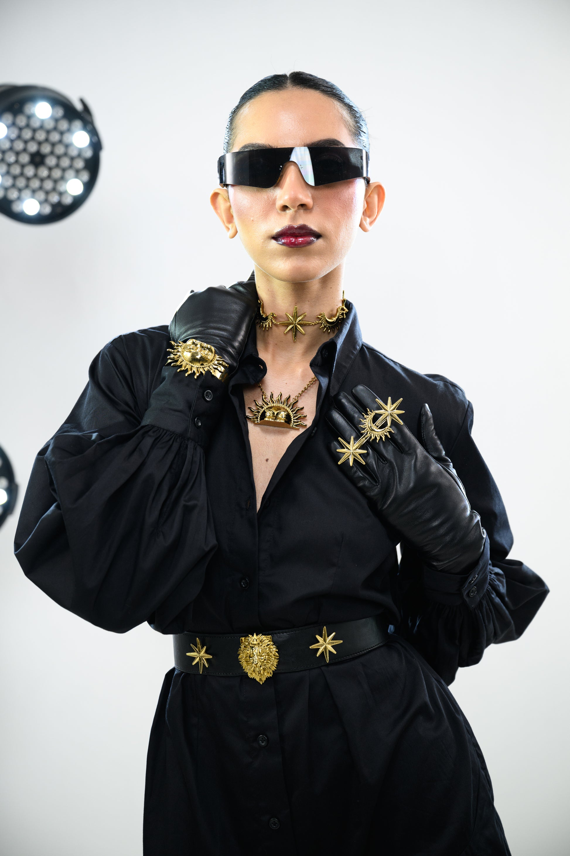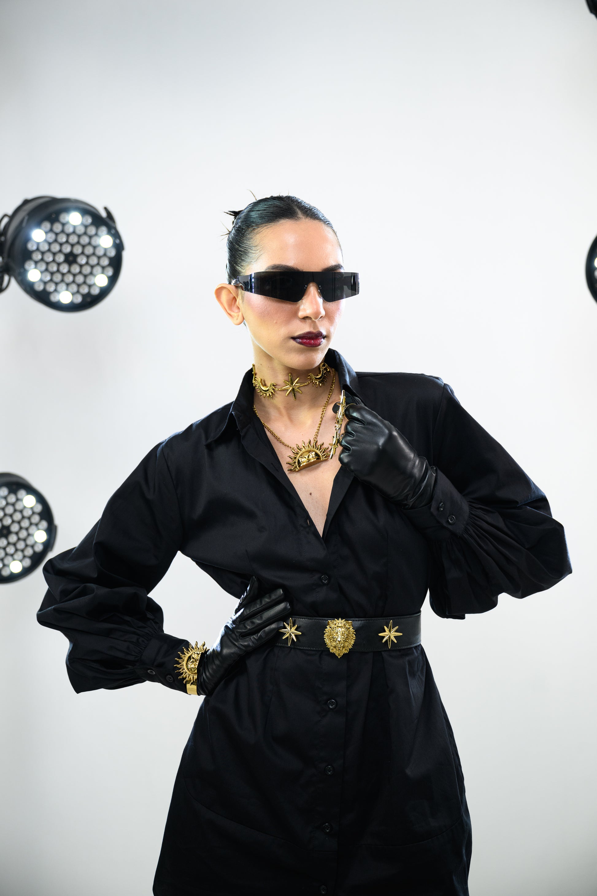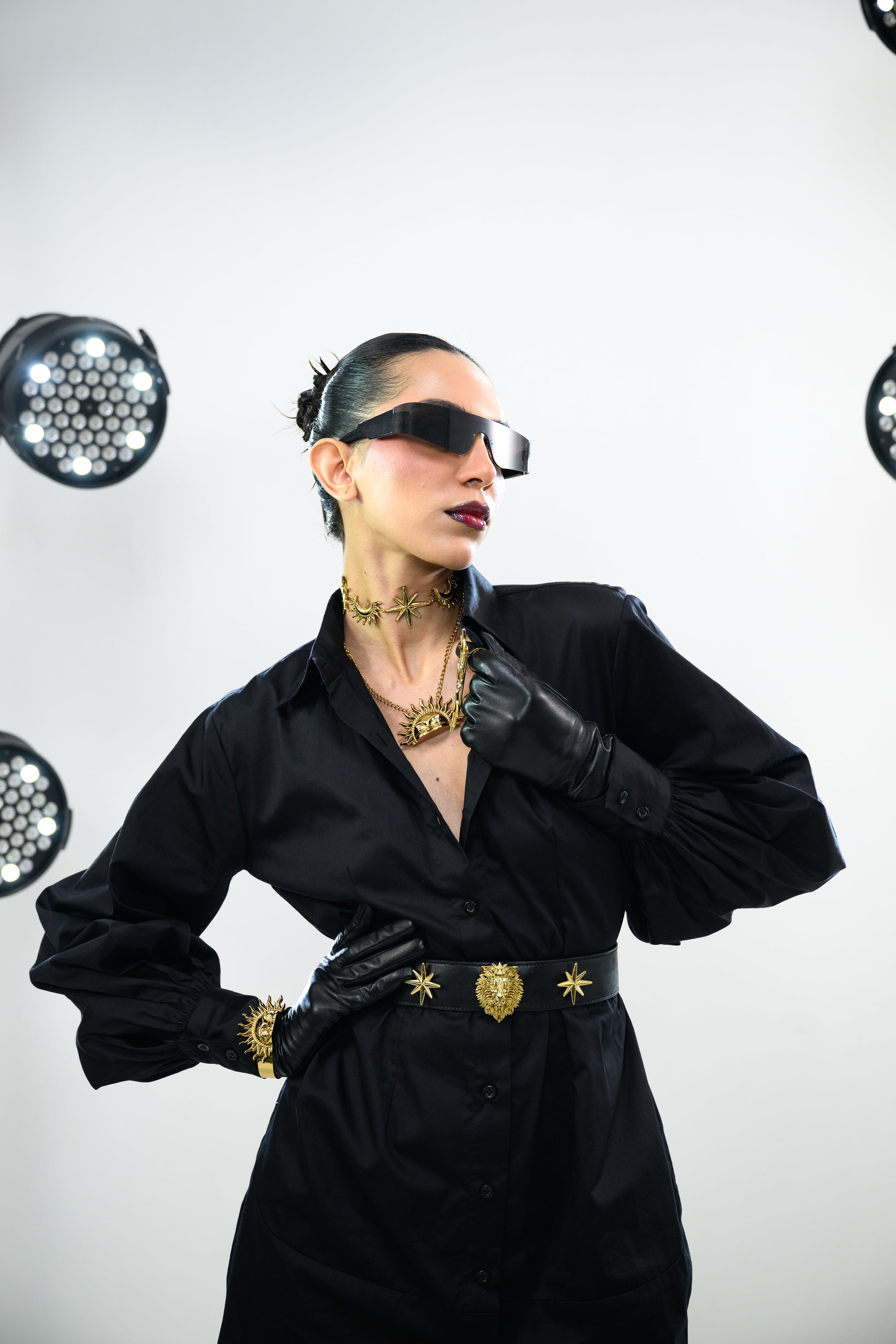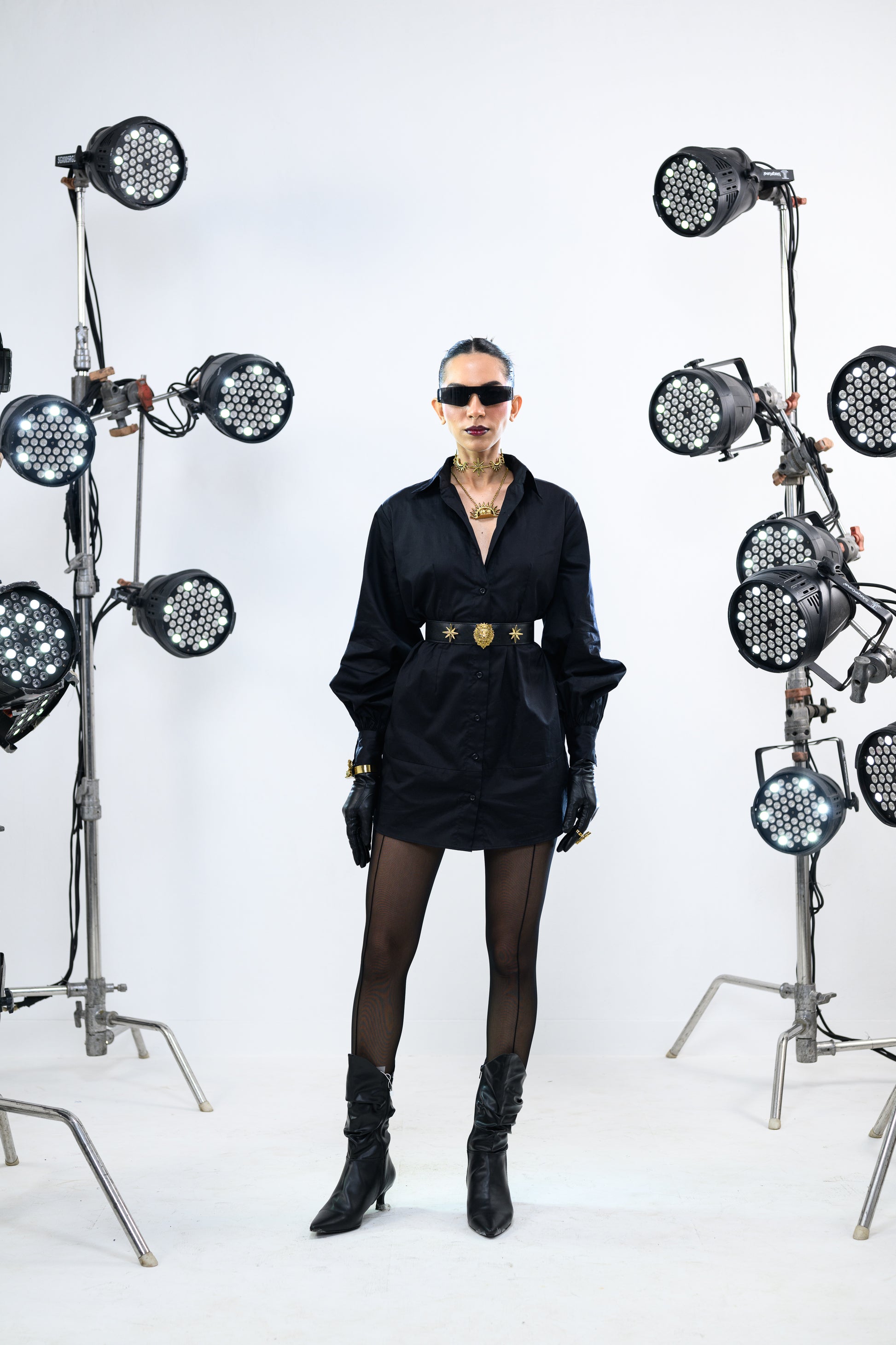 BLACK SHIRT DRESS PAIRED WITH LION STAR BELT