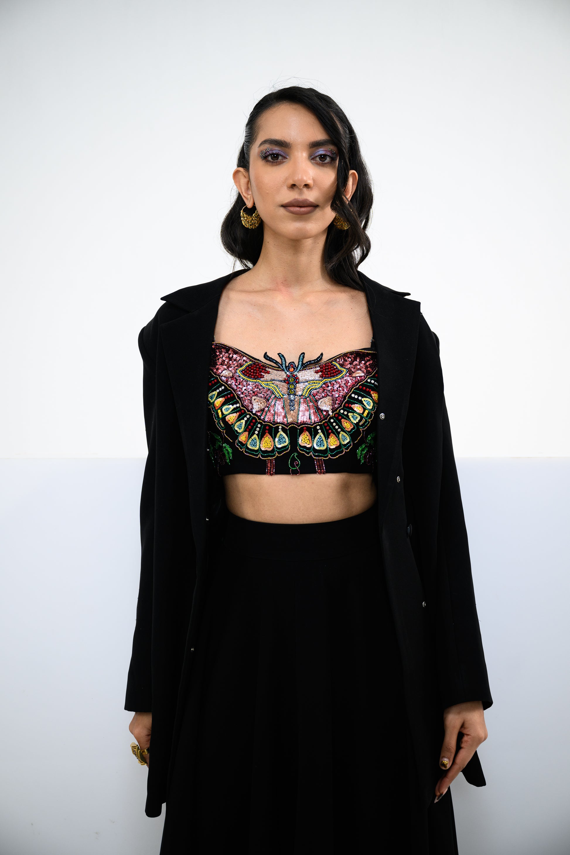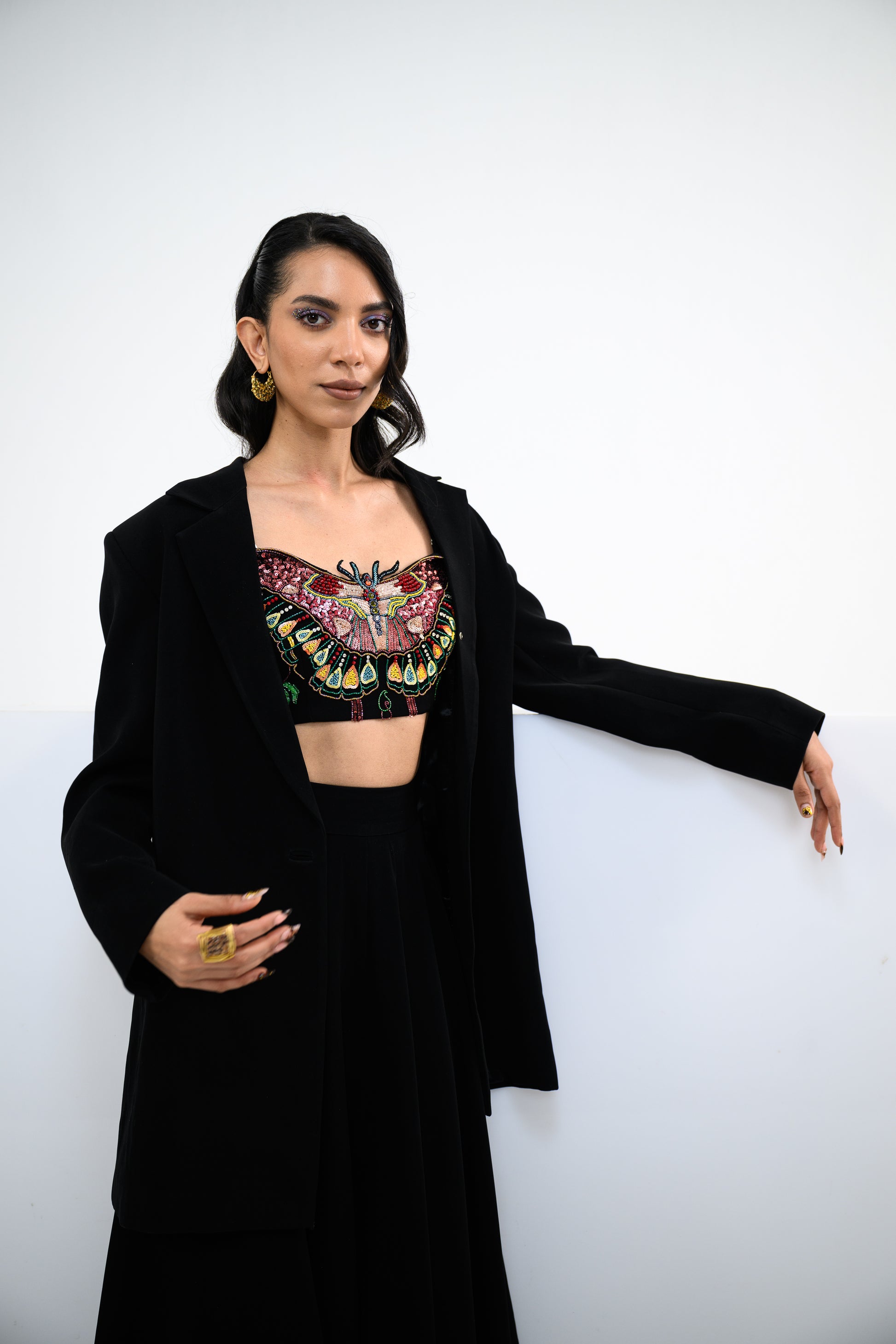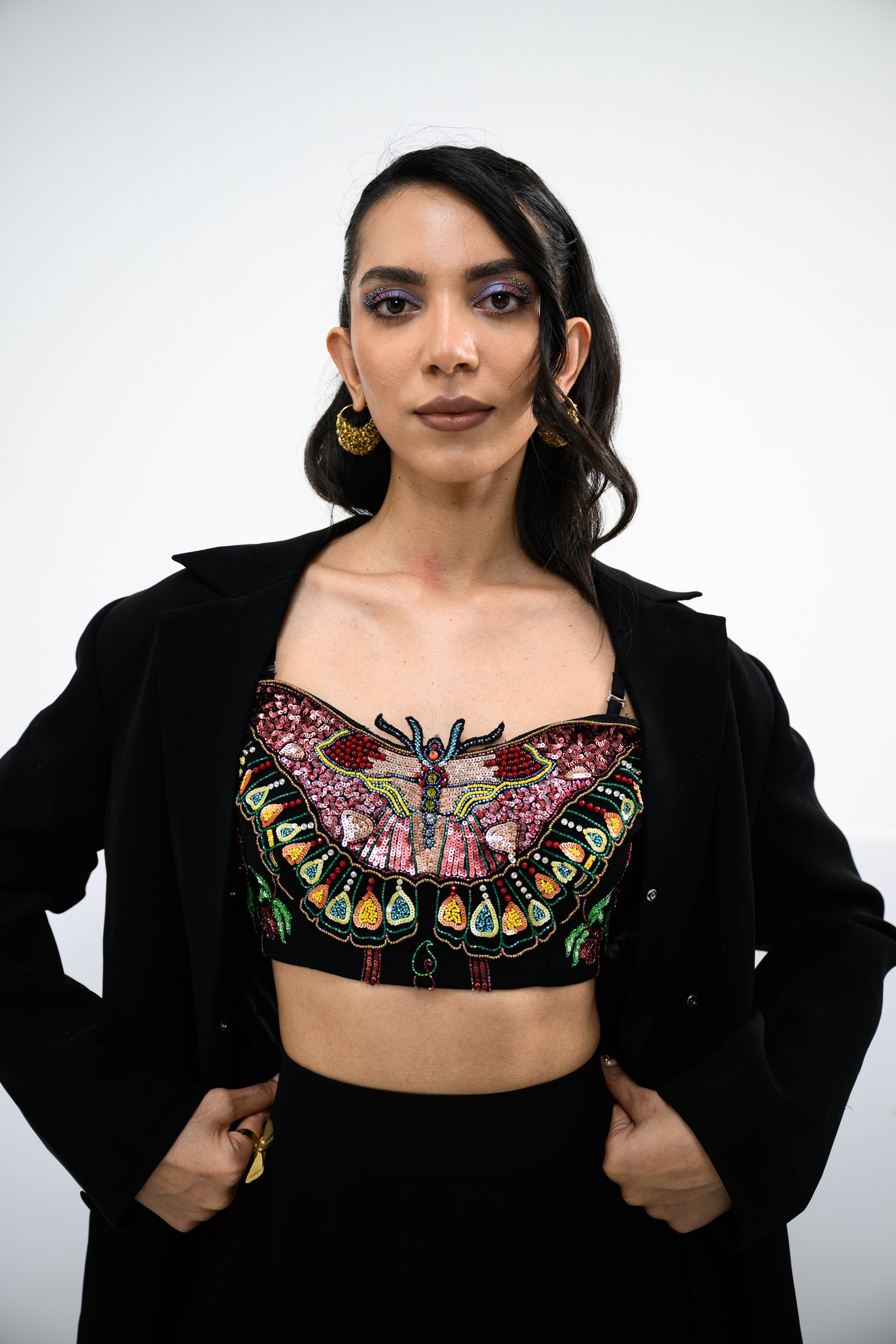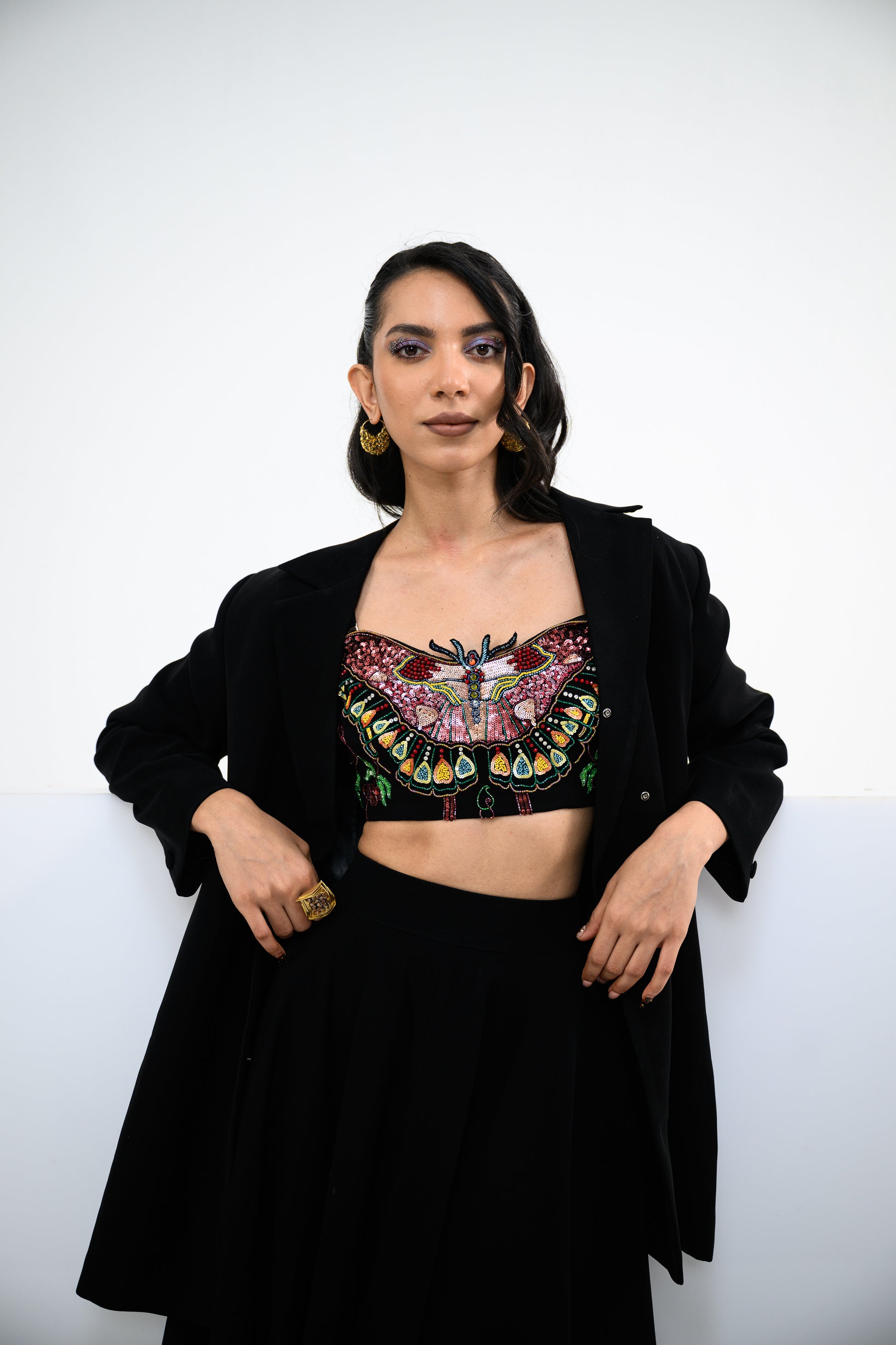 BUTTERFLY BRALETTE WITH SKIRT AND BLAZER SET