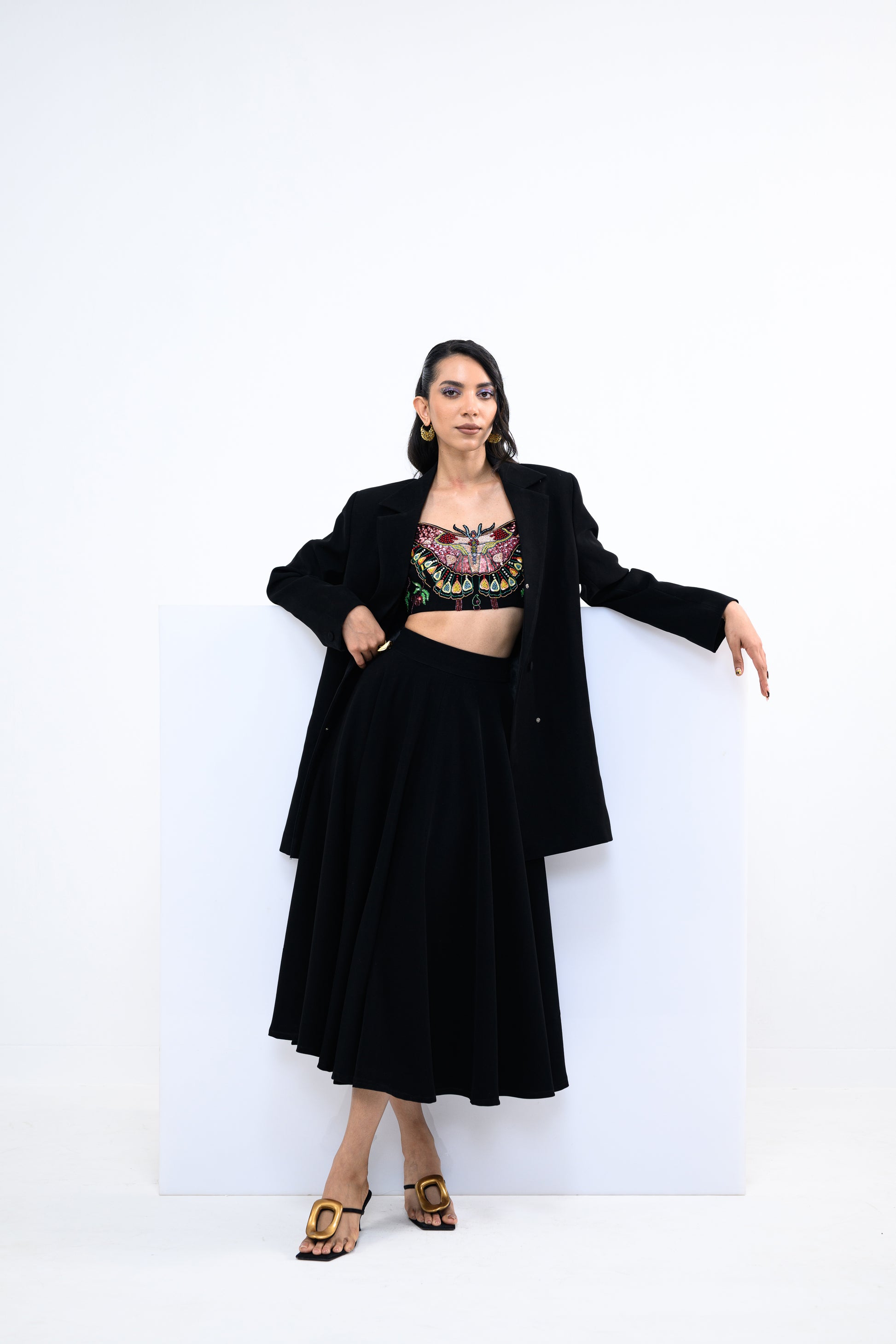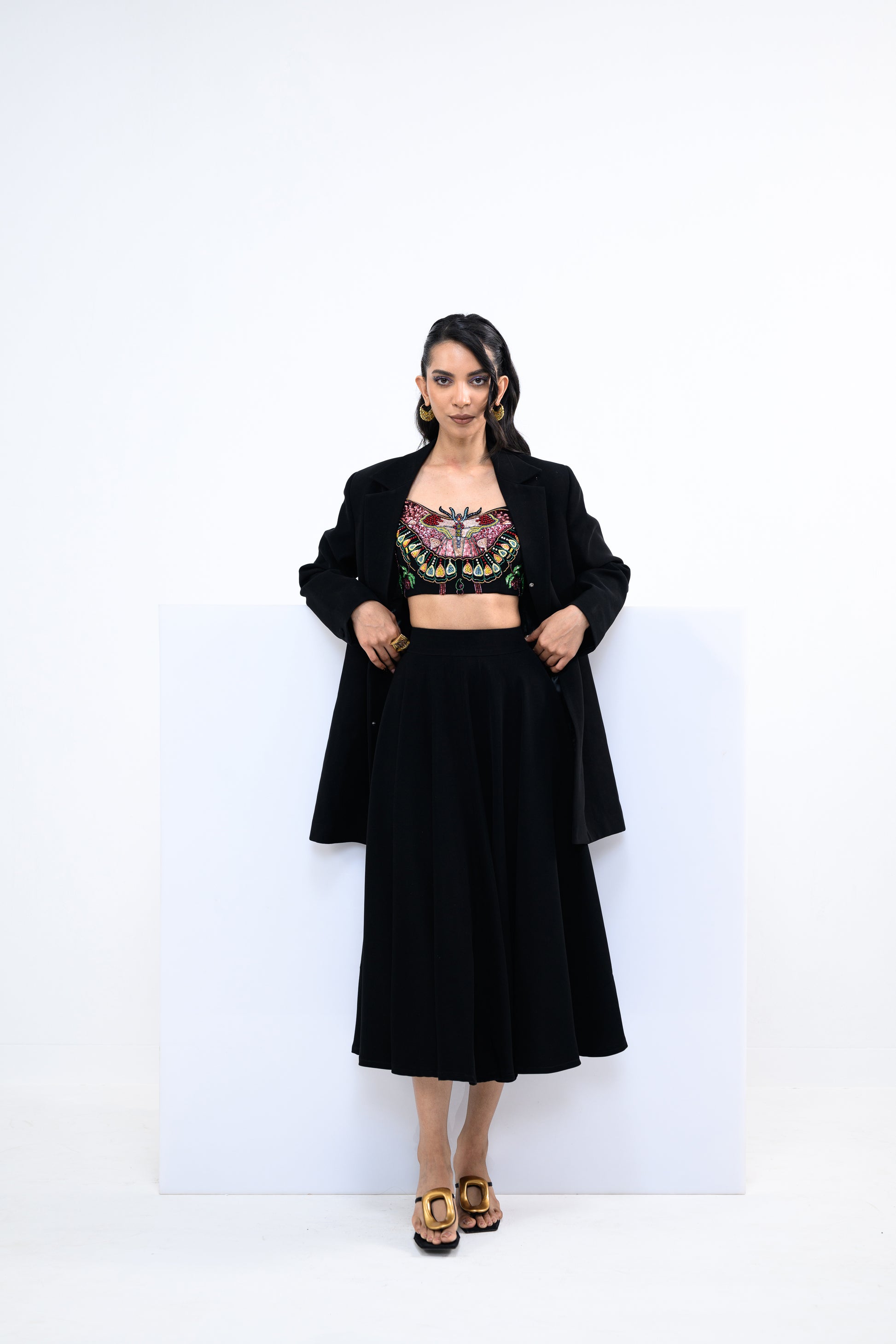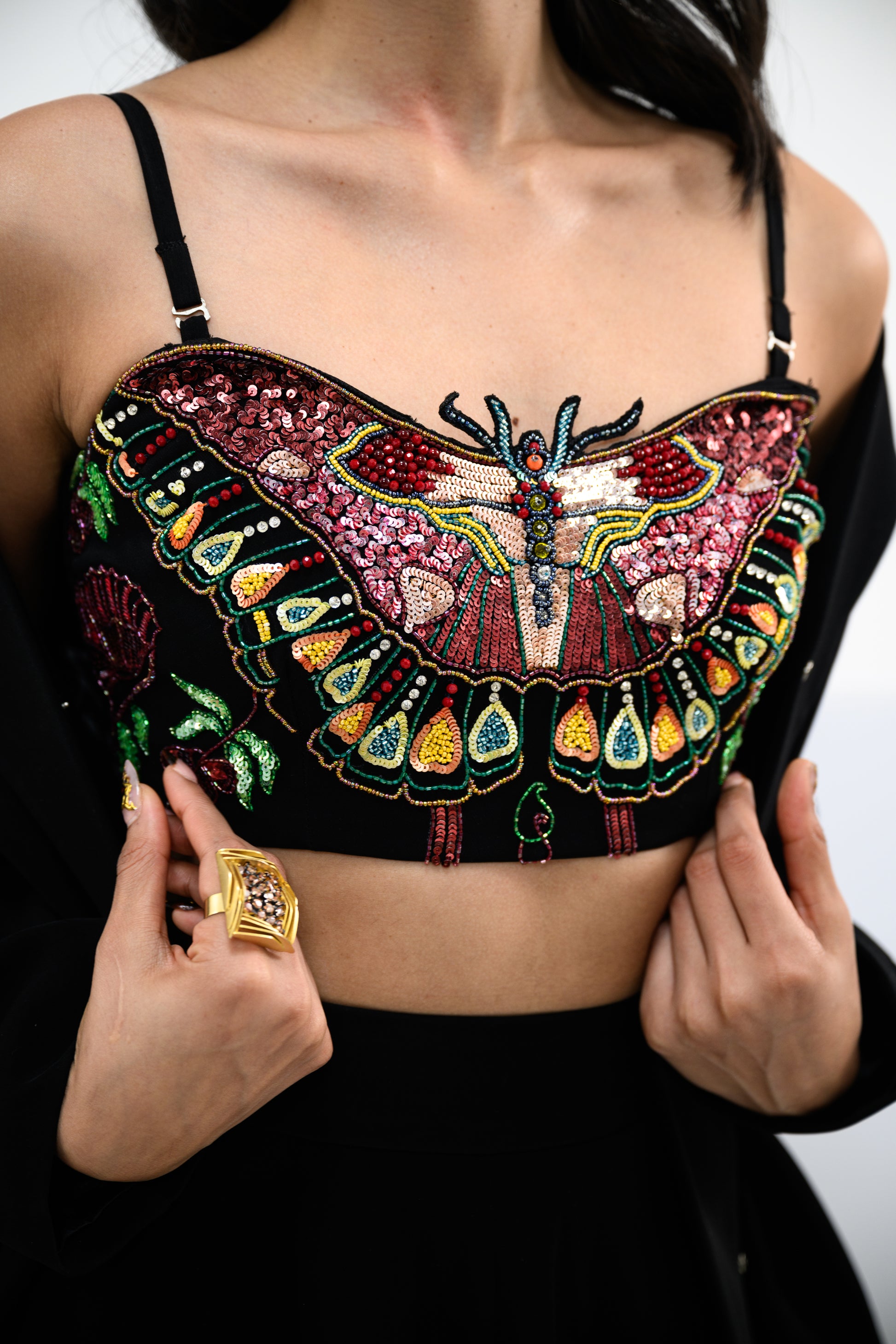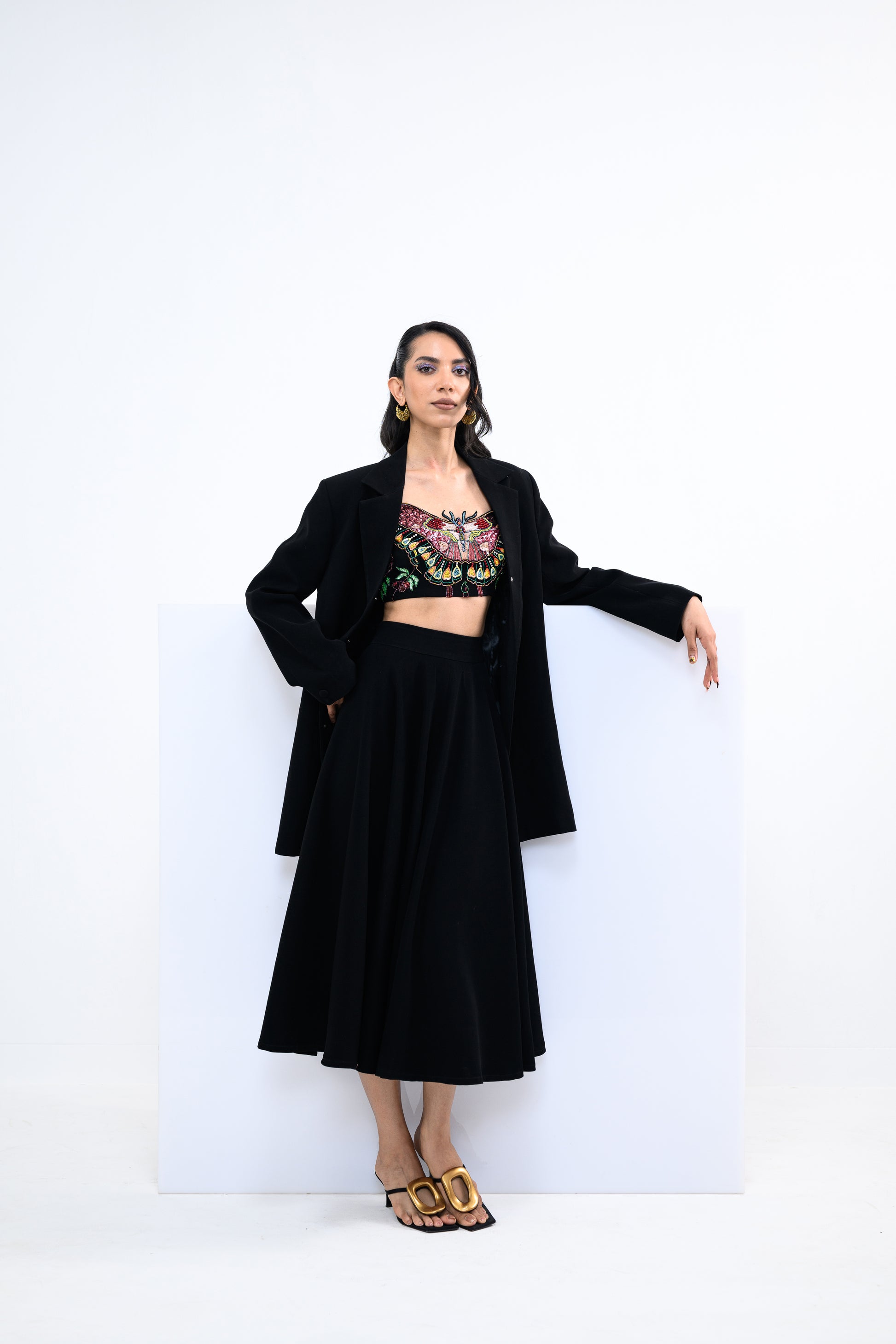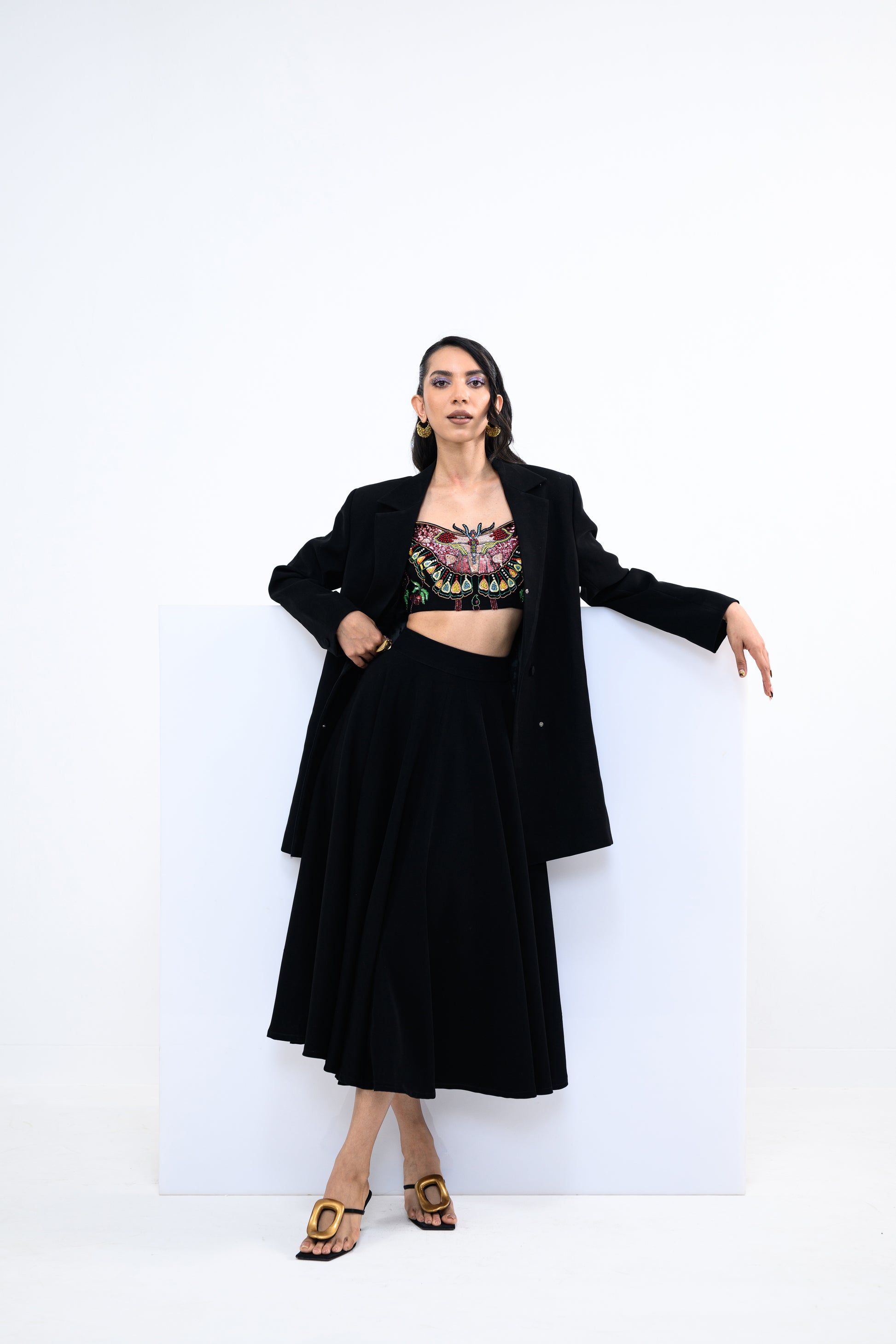 BUTTERFLY BRALETTE WITH SKIRT AND BLAZER SET