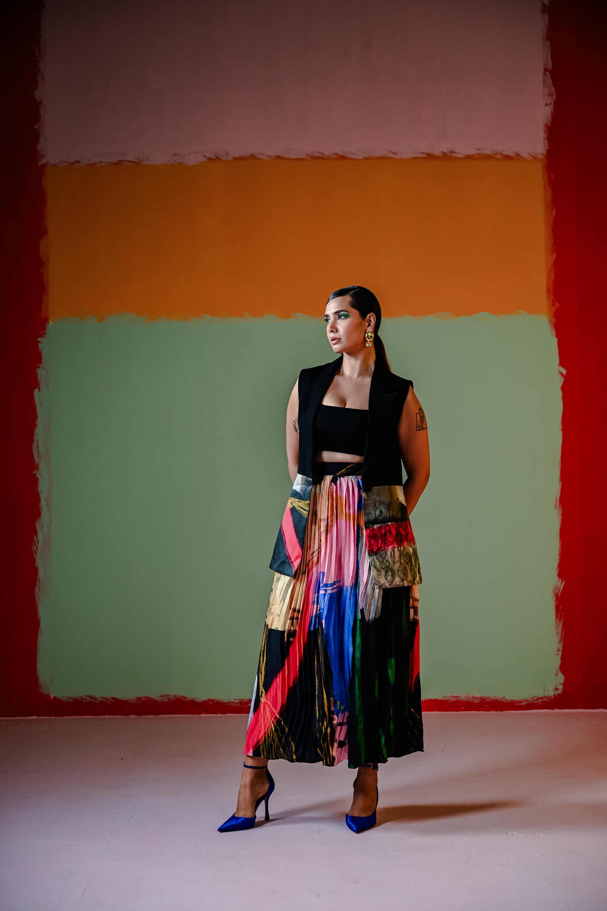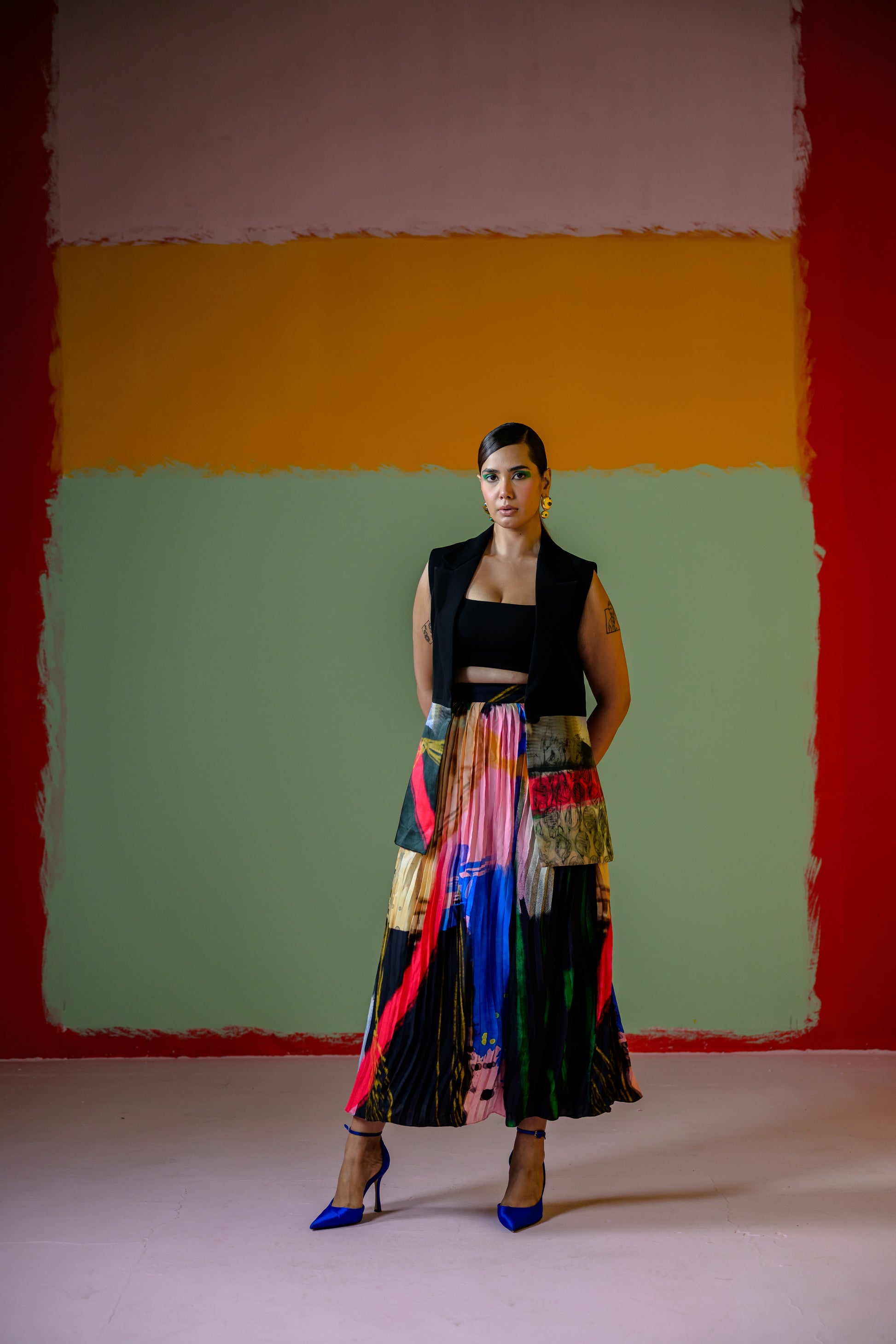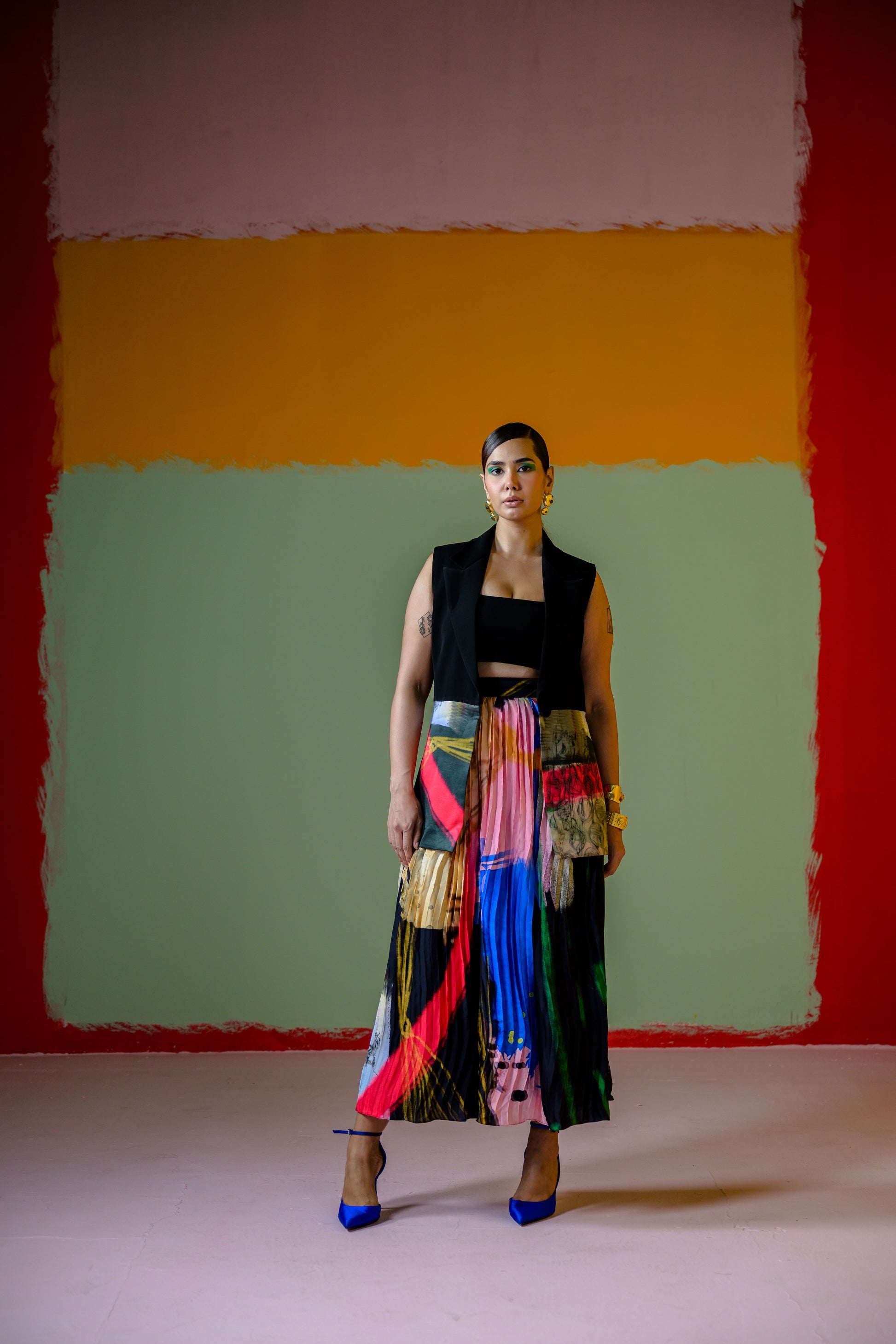 Celina Half Blazer With Celina Pleated Skirt Set