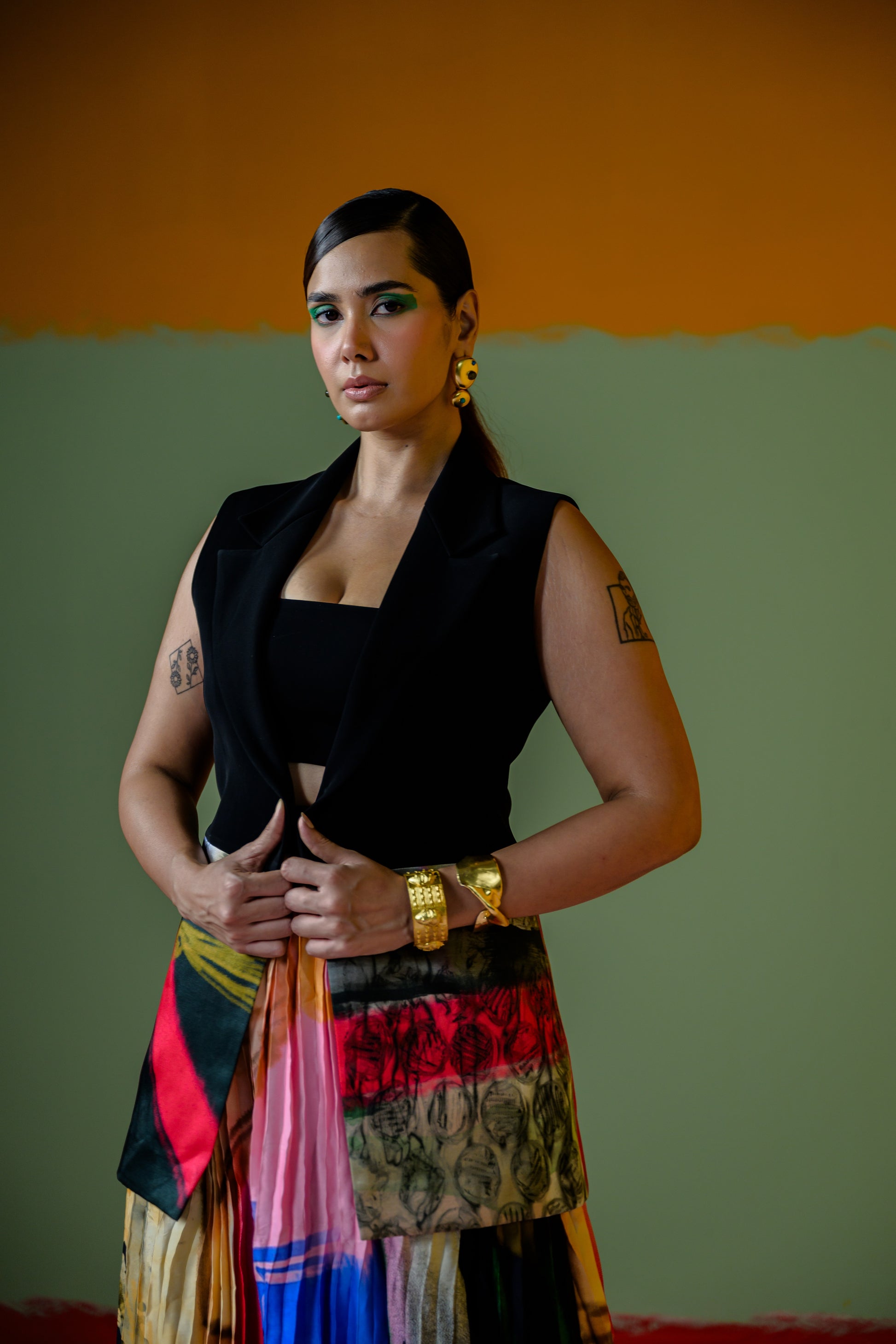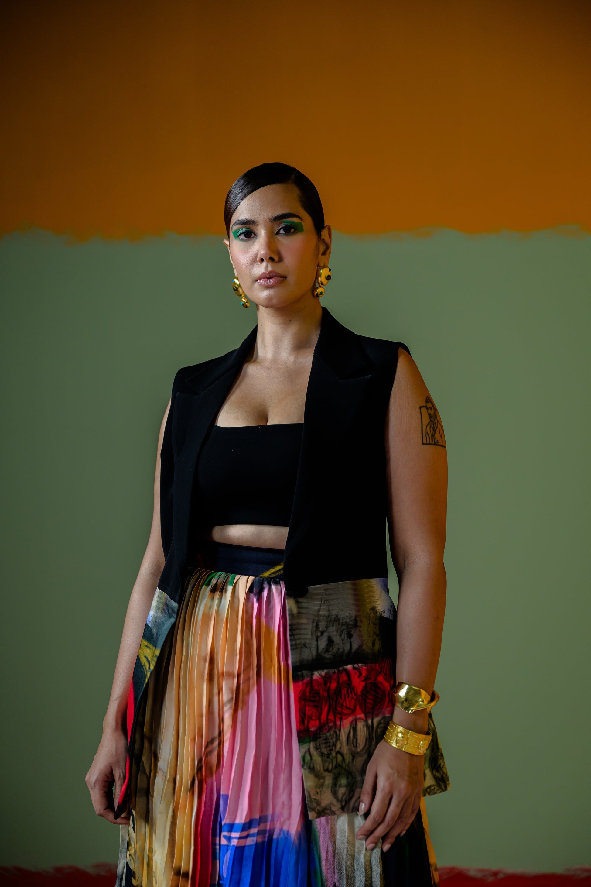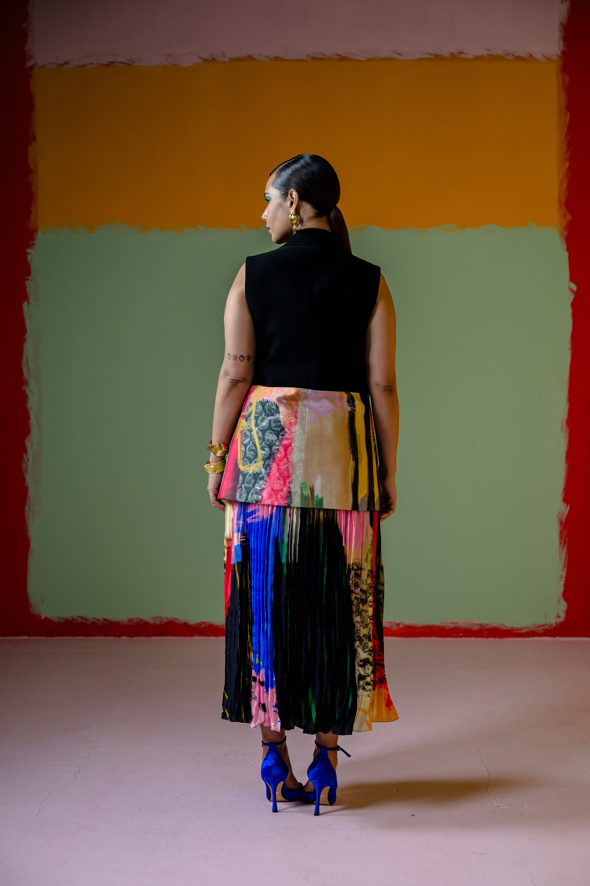 Celina Half Blazer With Celina Pleated Skirt Set