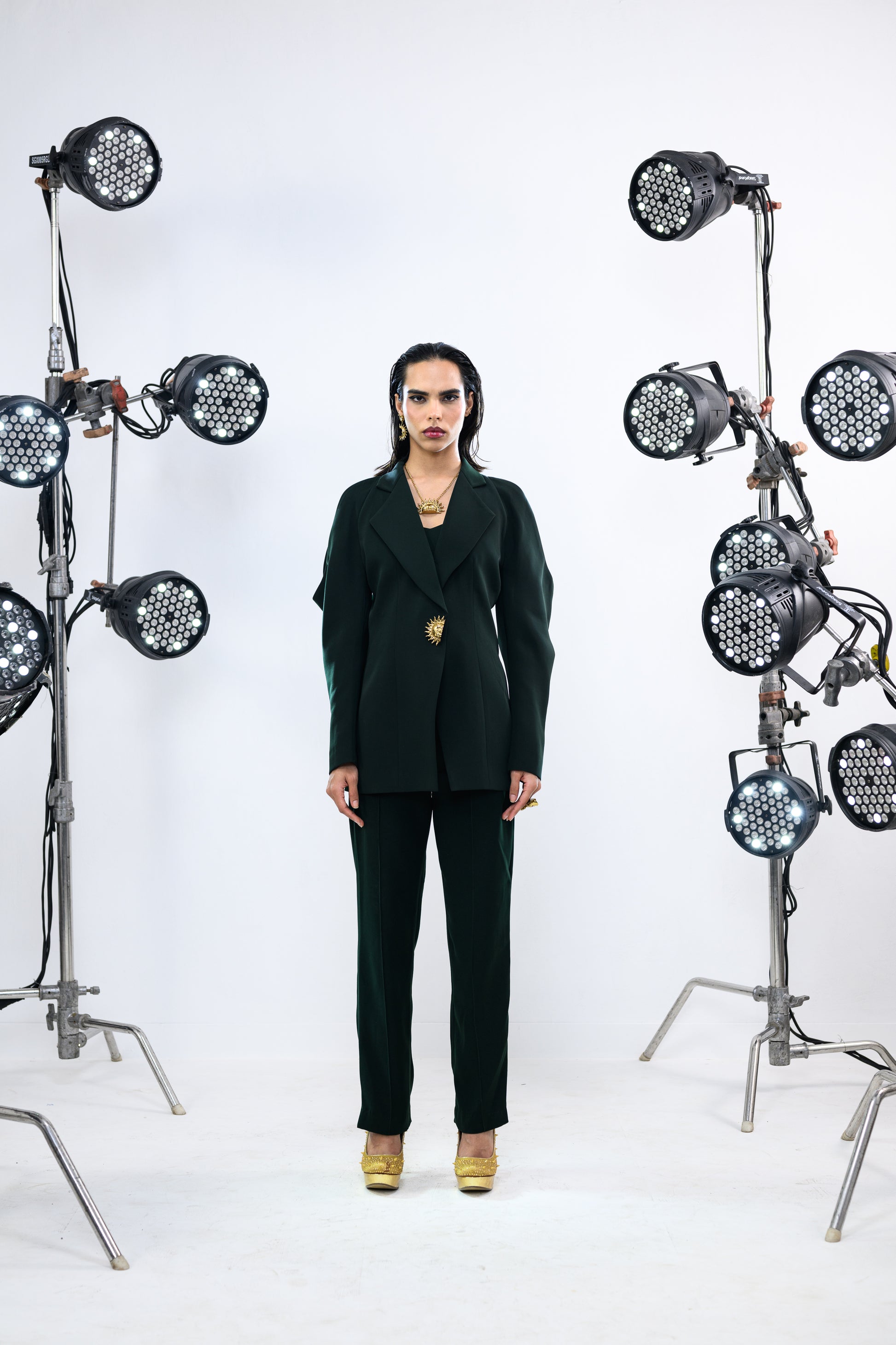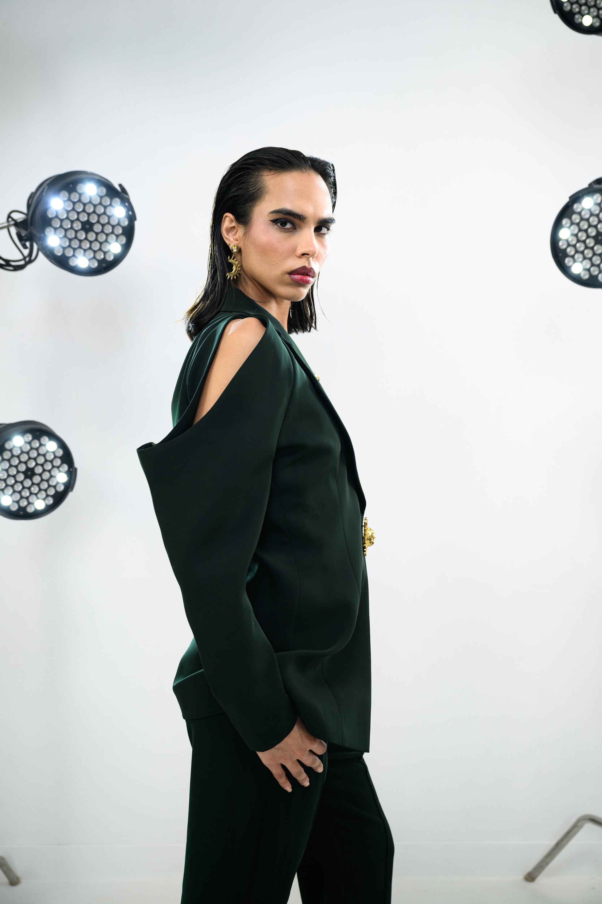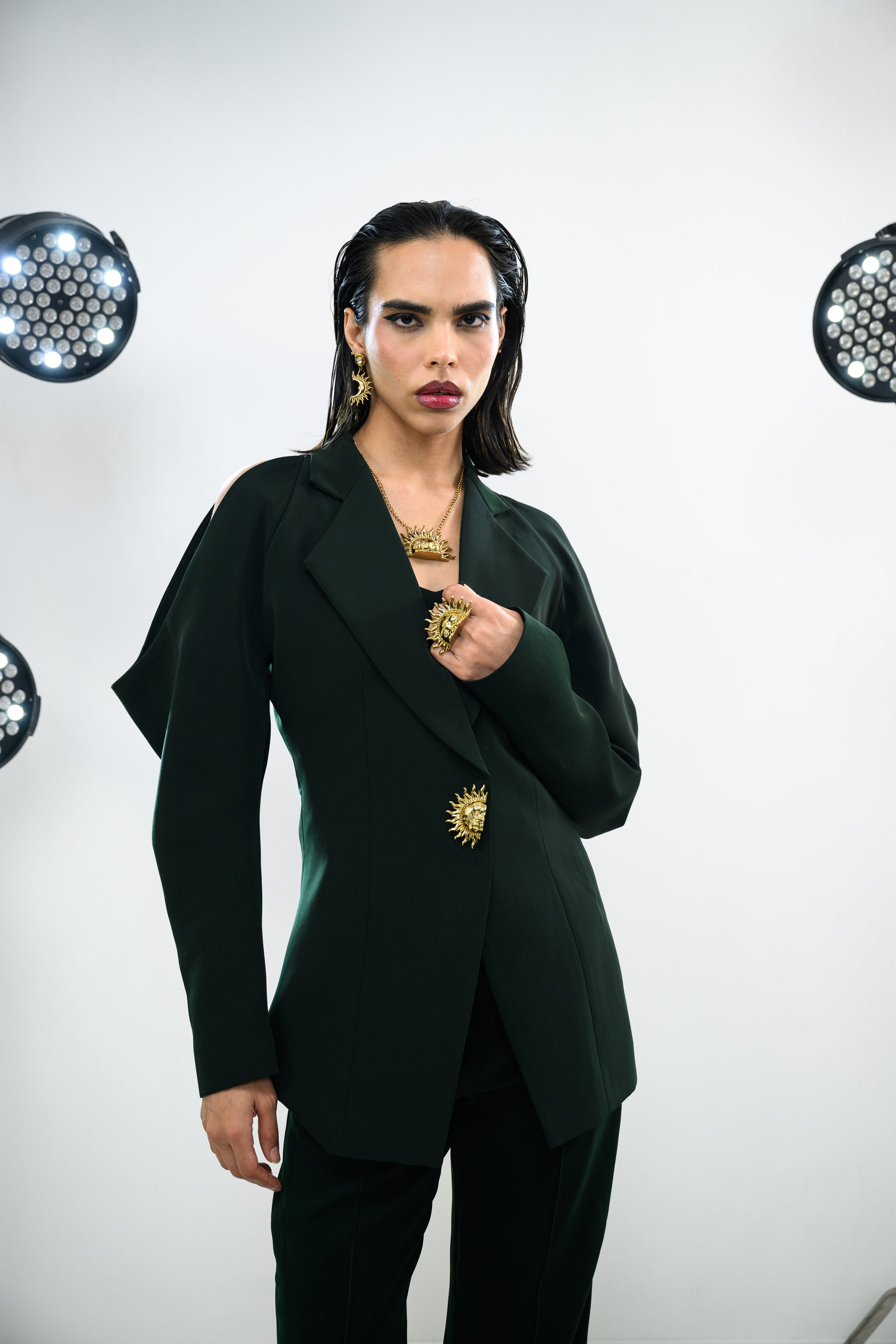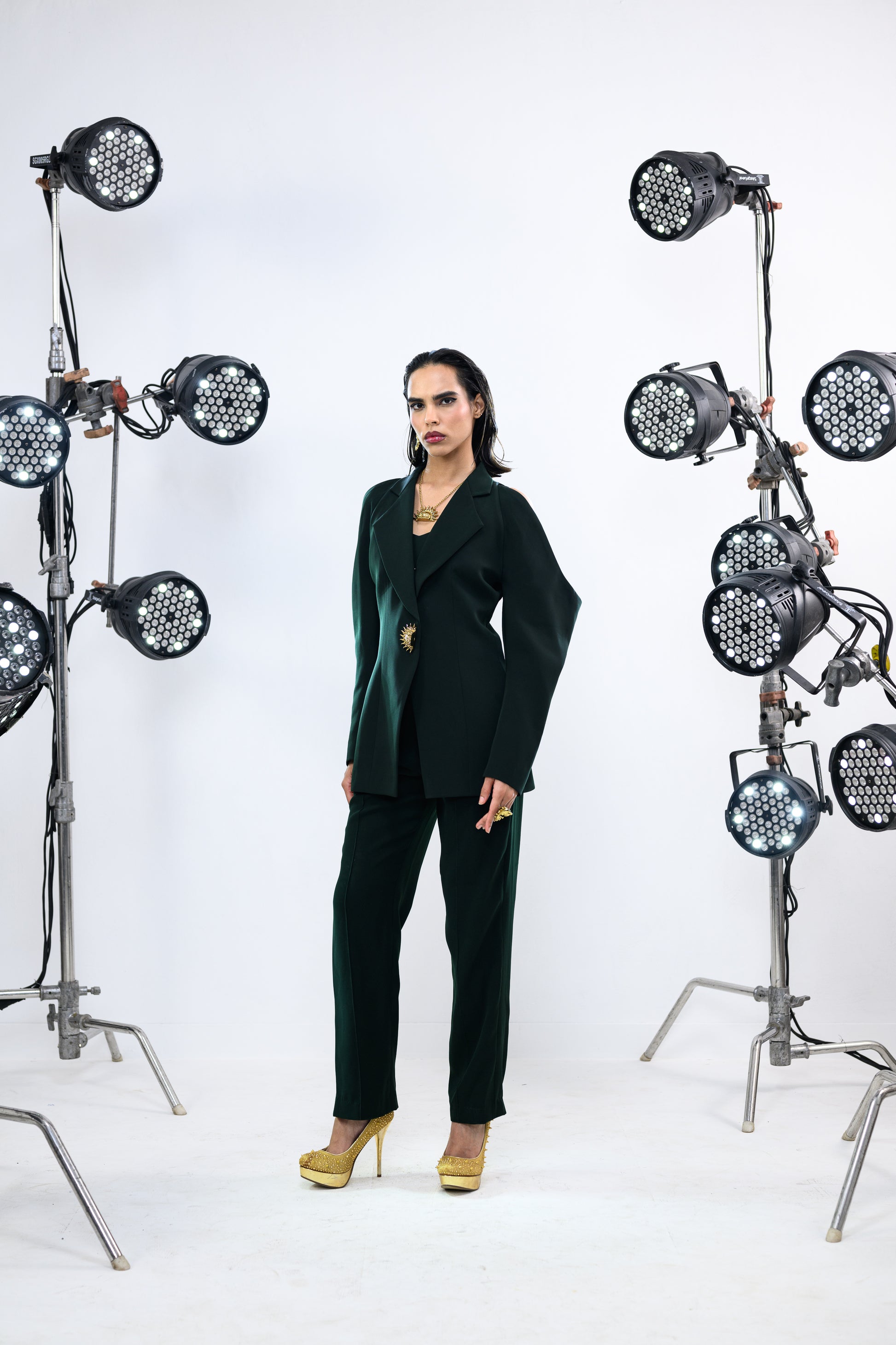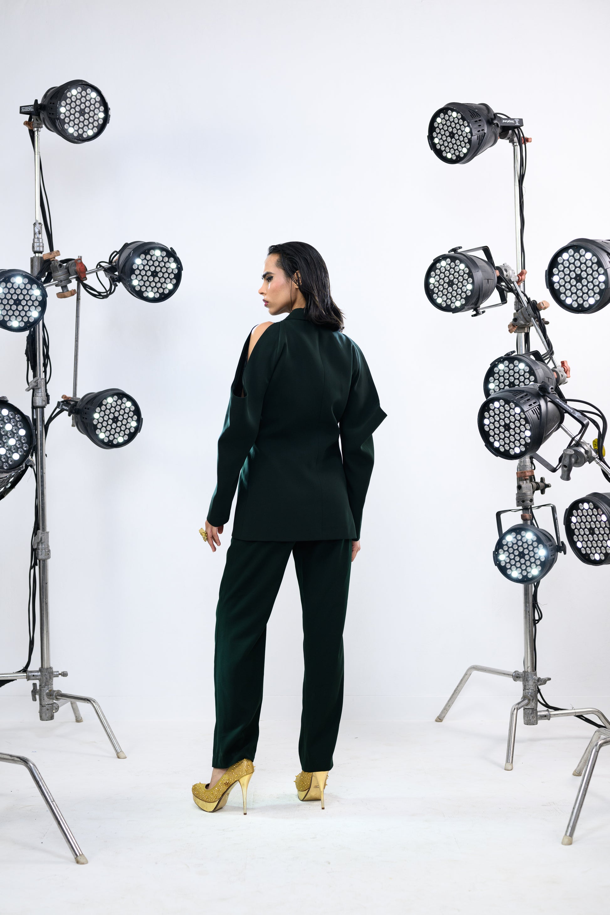 COLD SHOULDER EMERALD BLAZER PANT SET