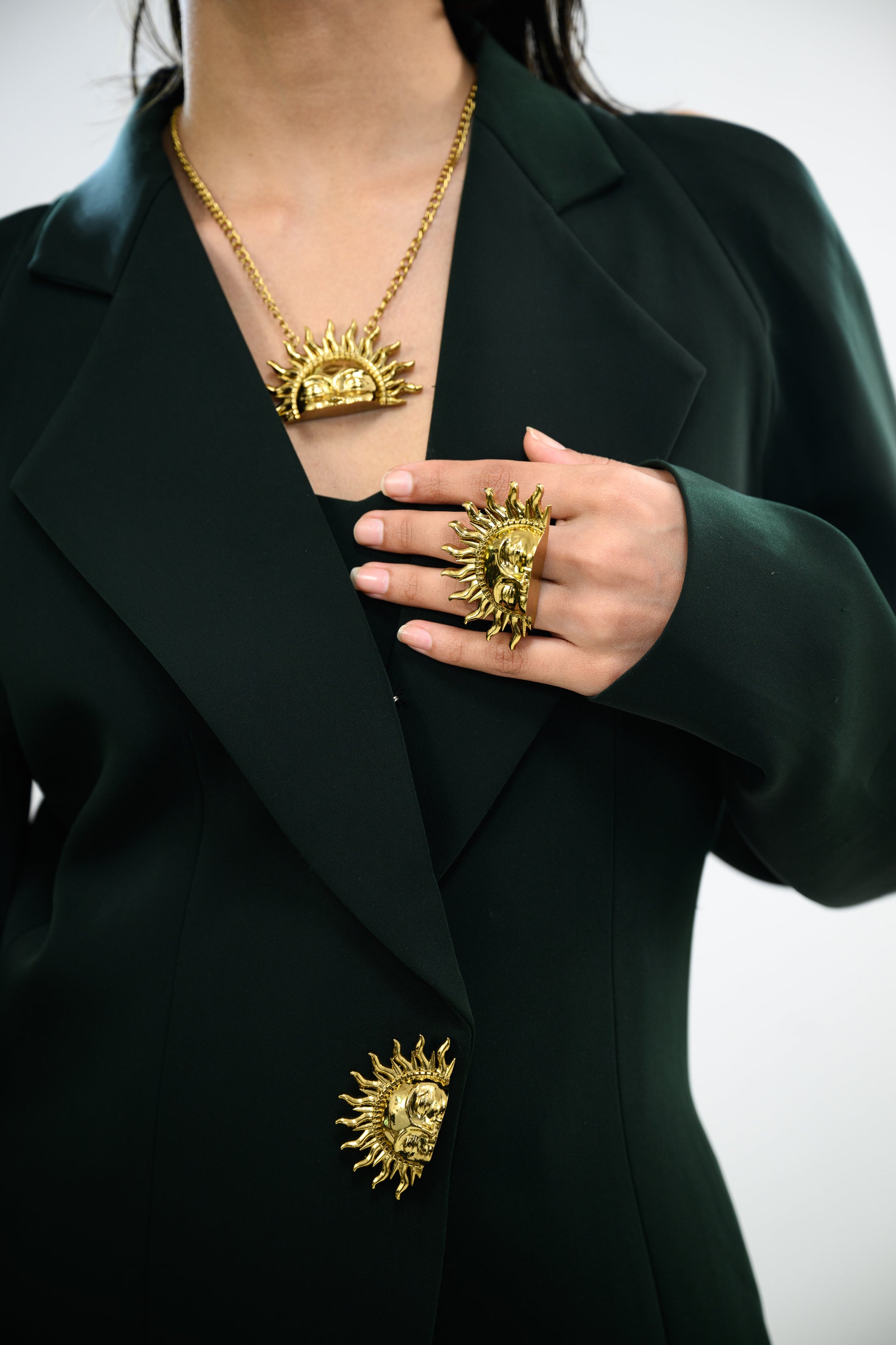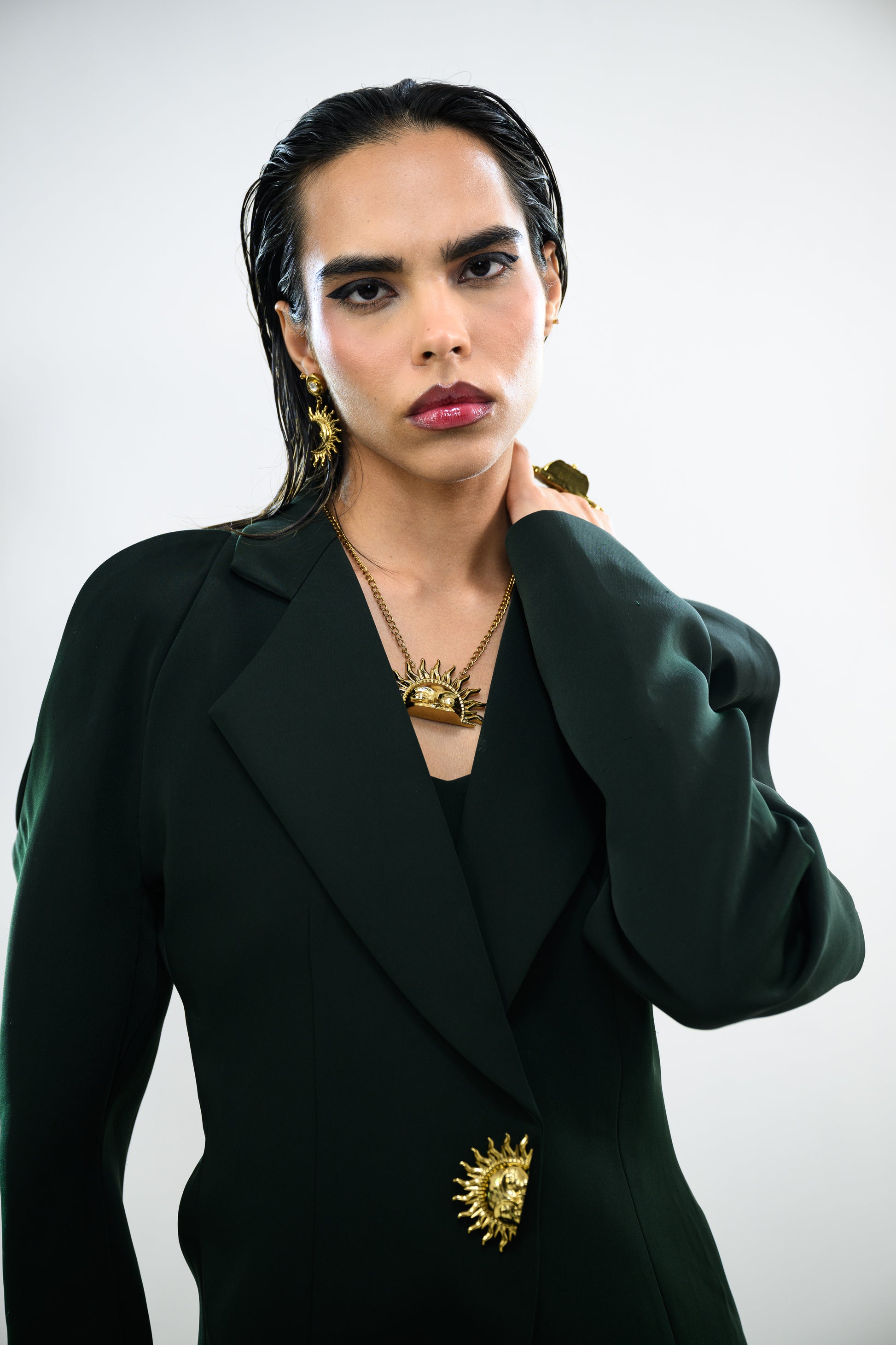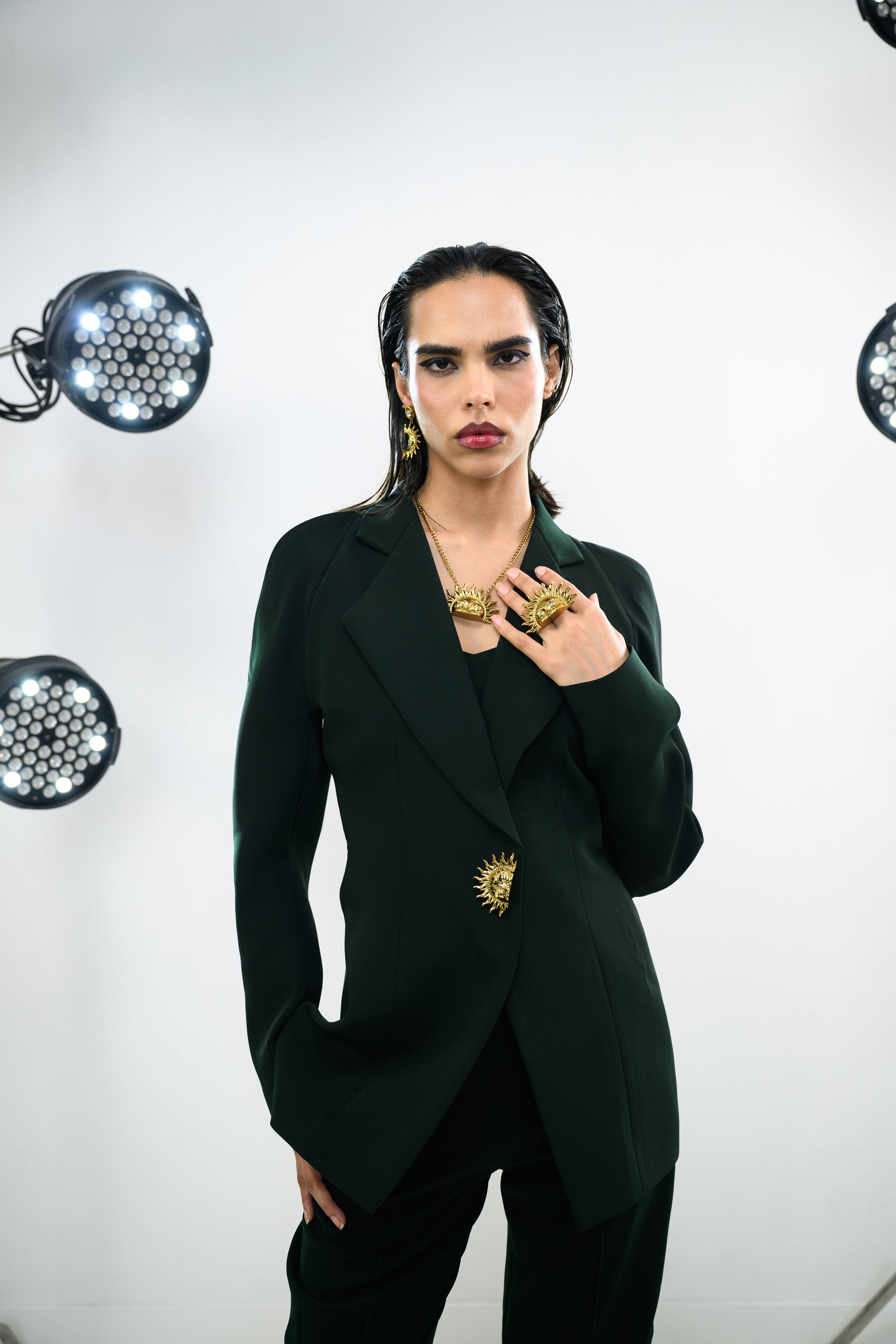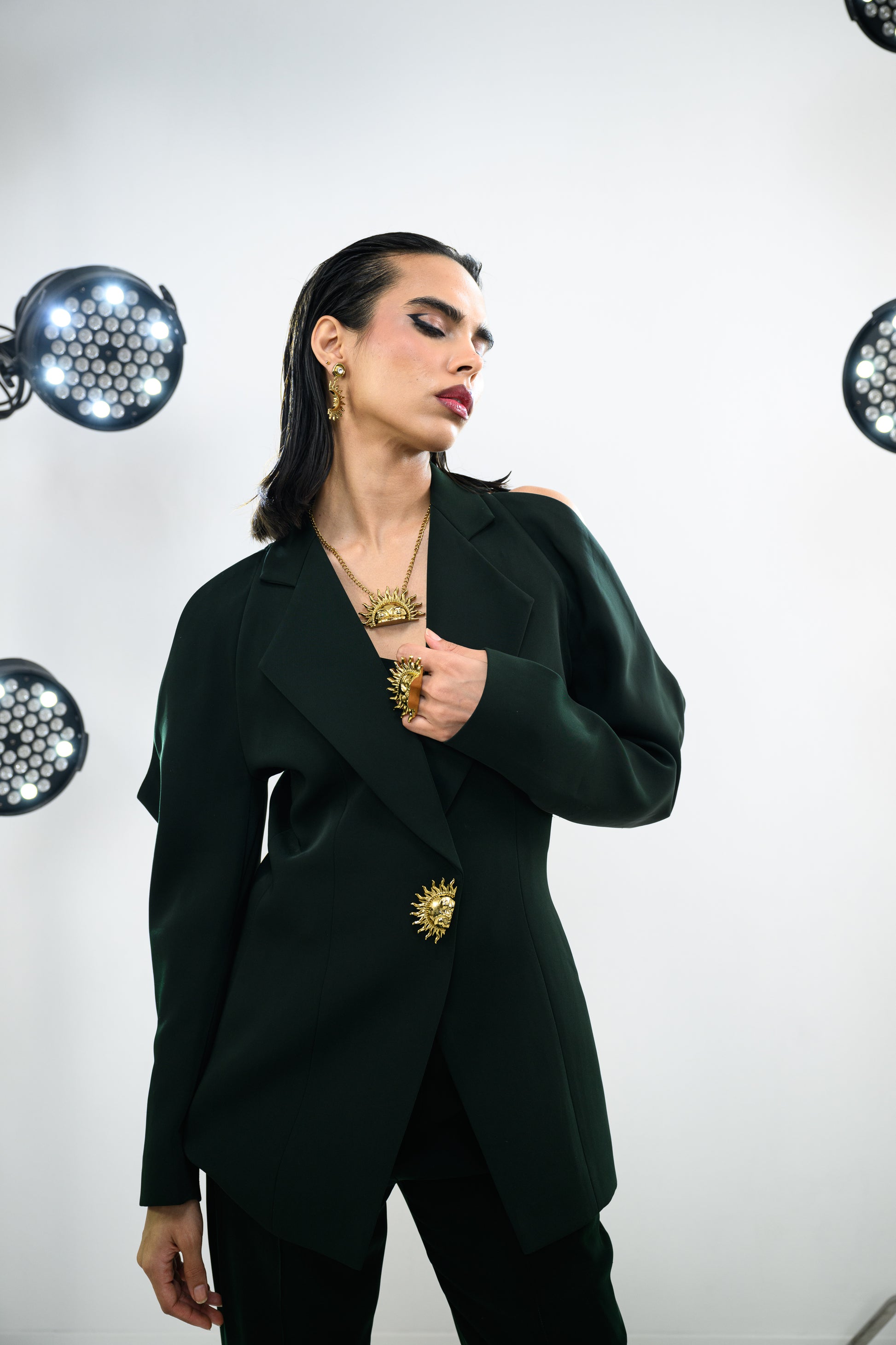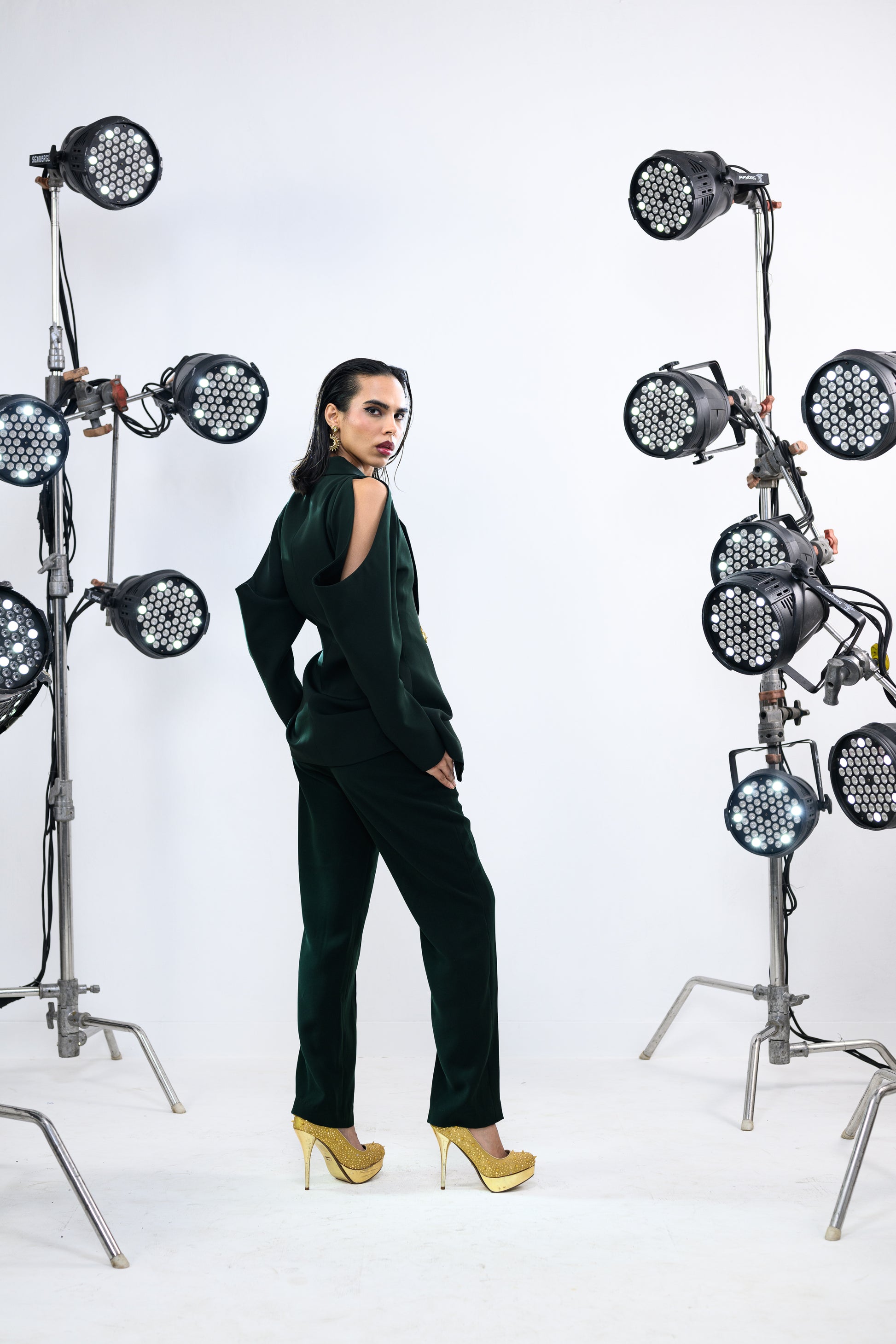 COLD SHOULDER EMERALD BLAZER PANT SET