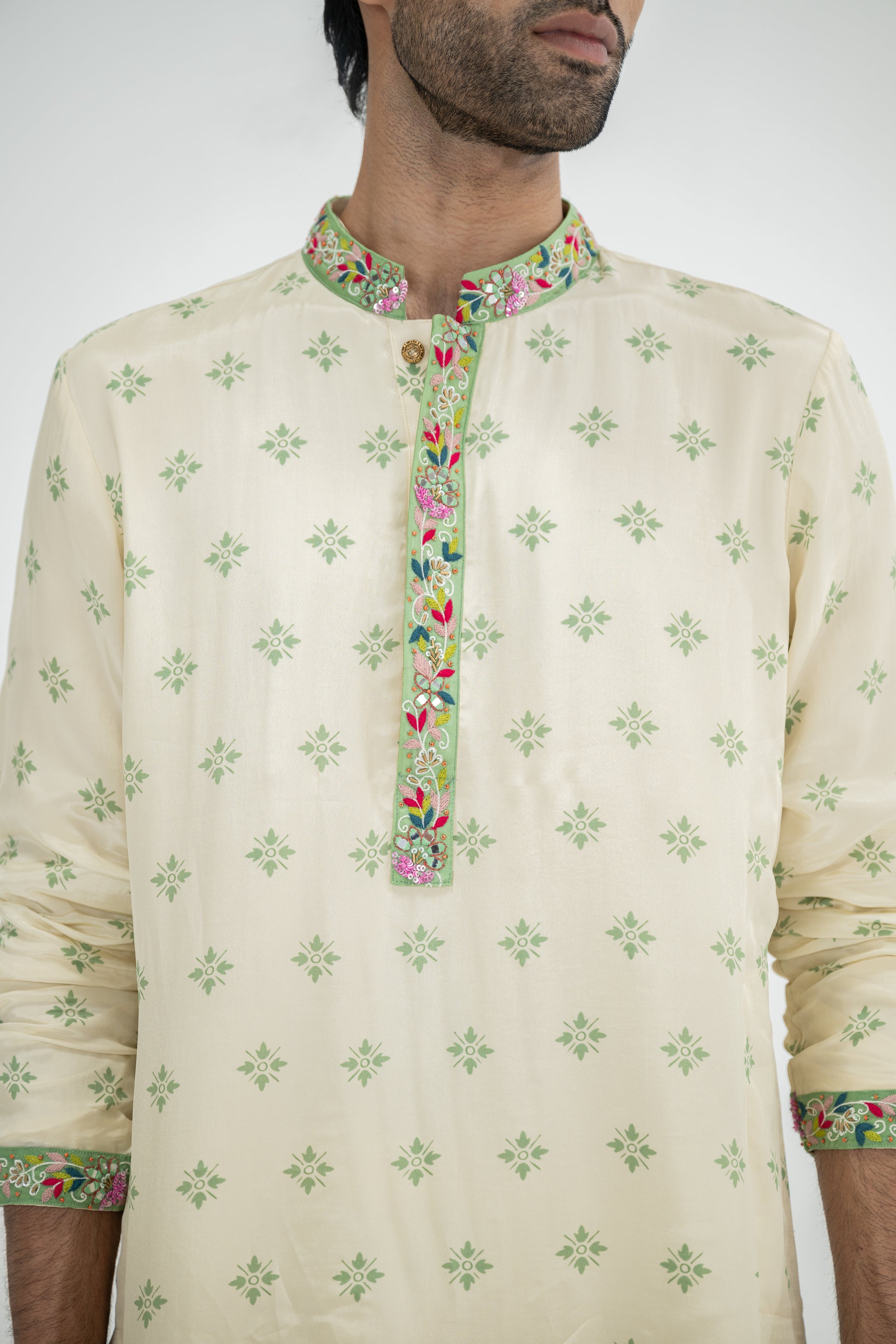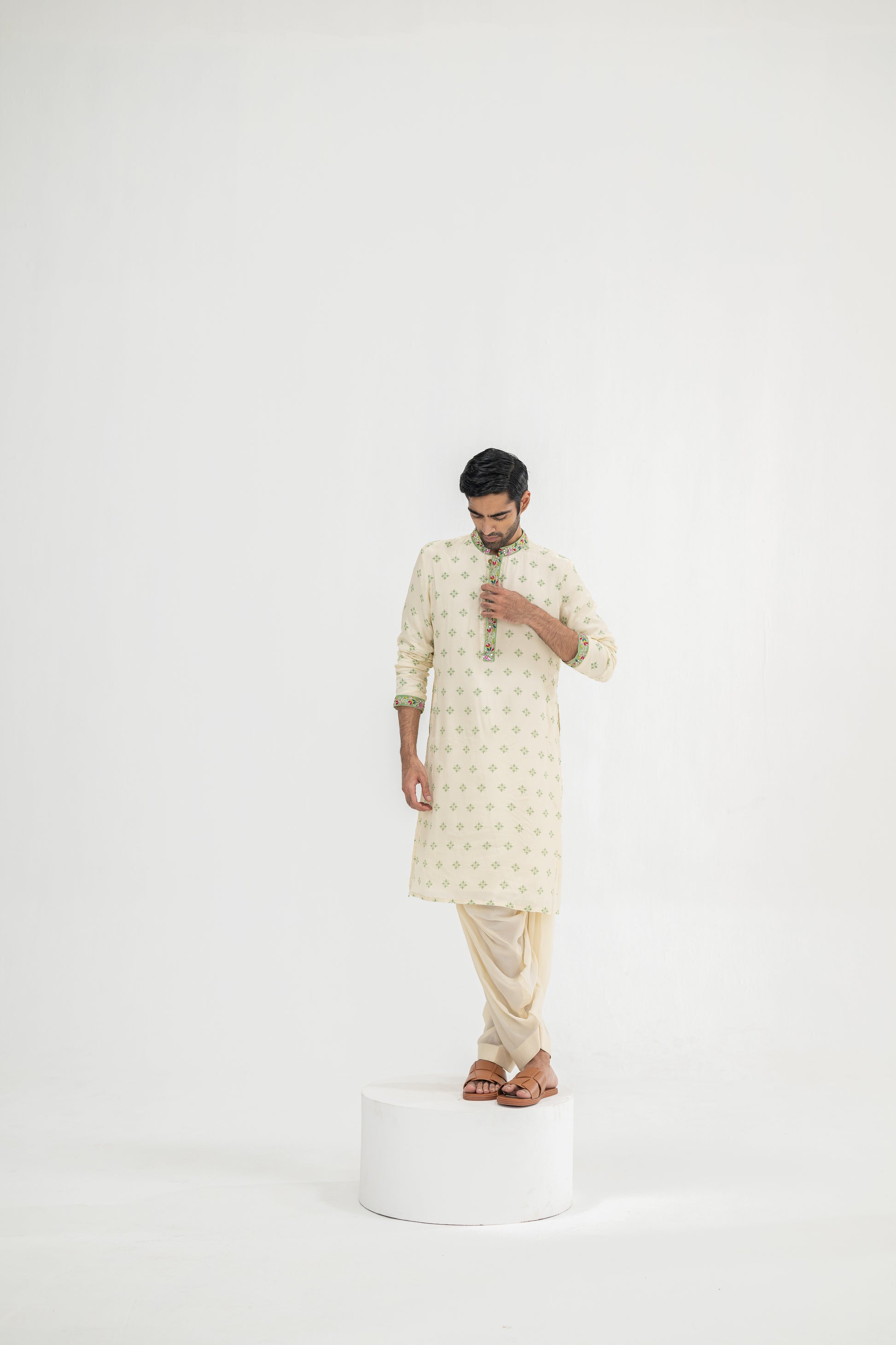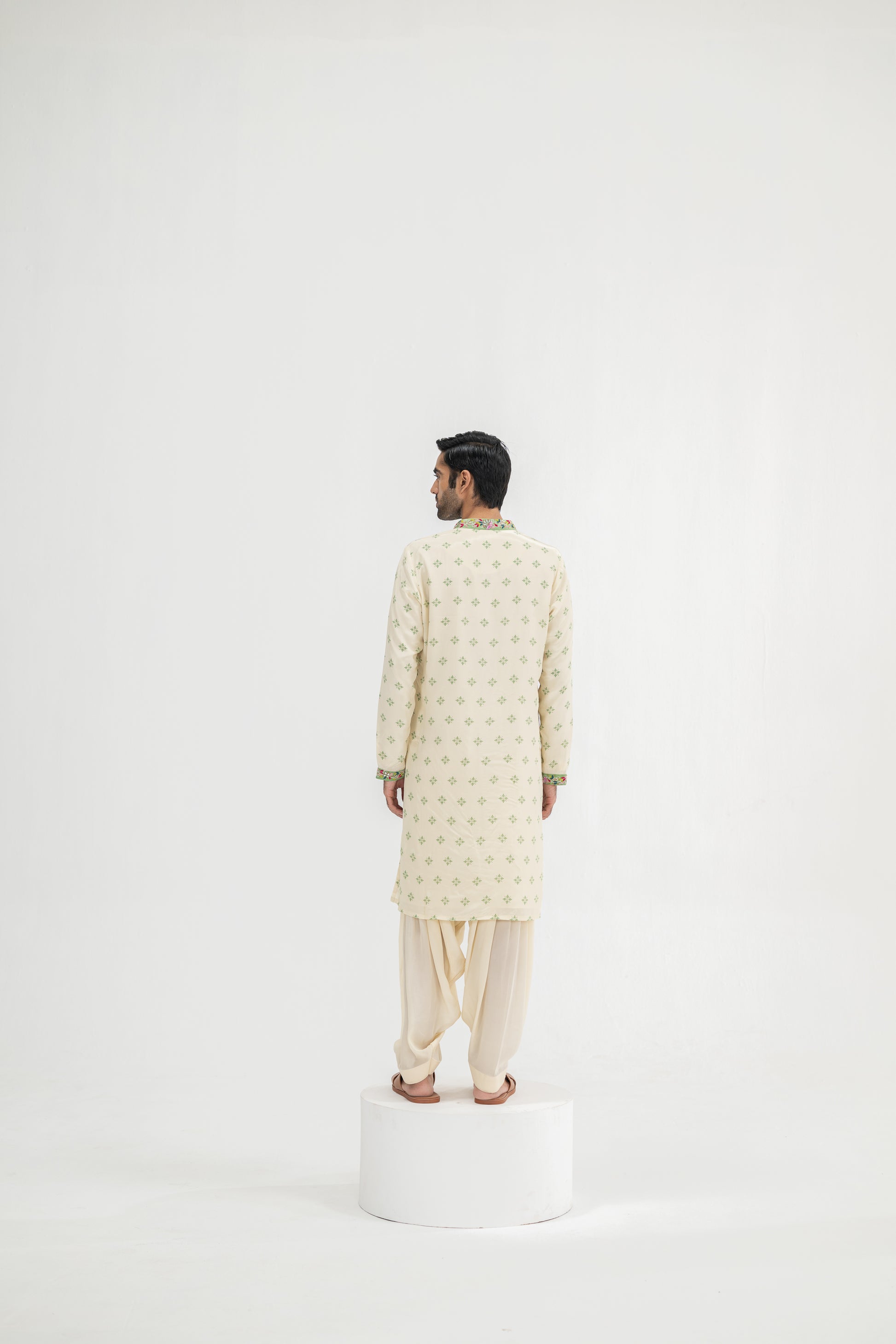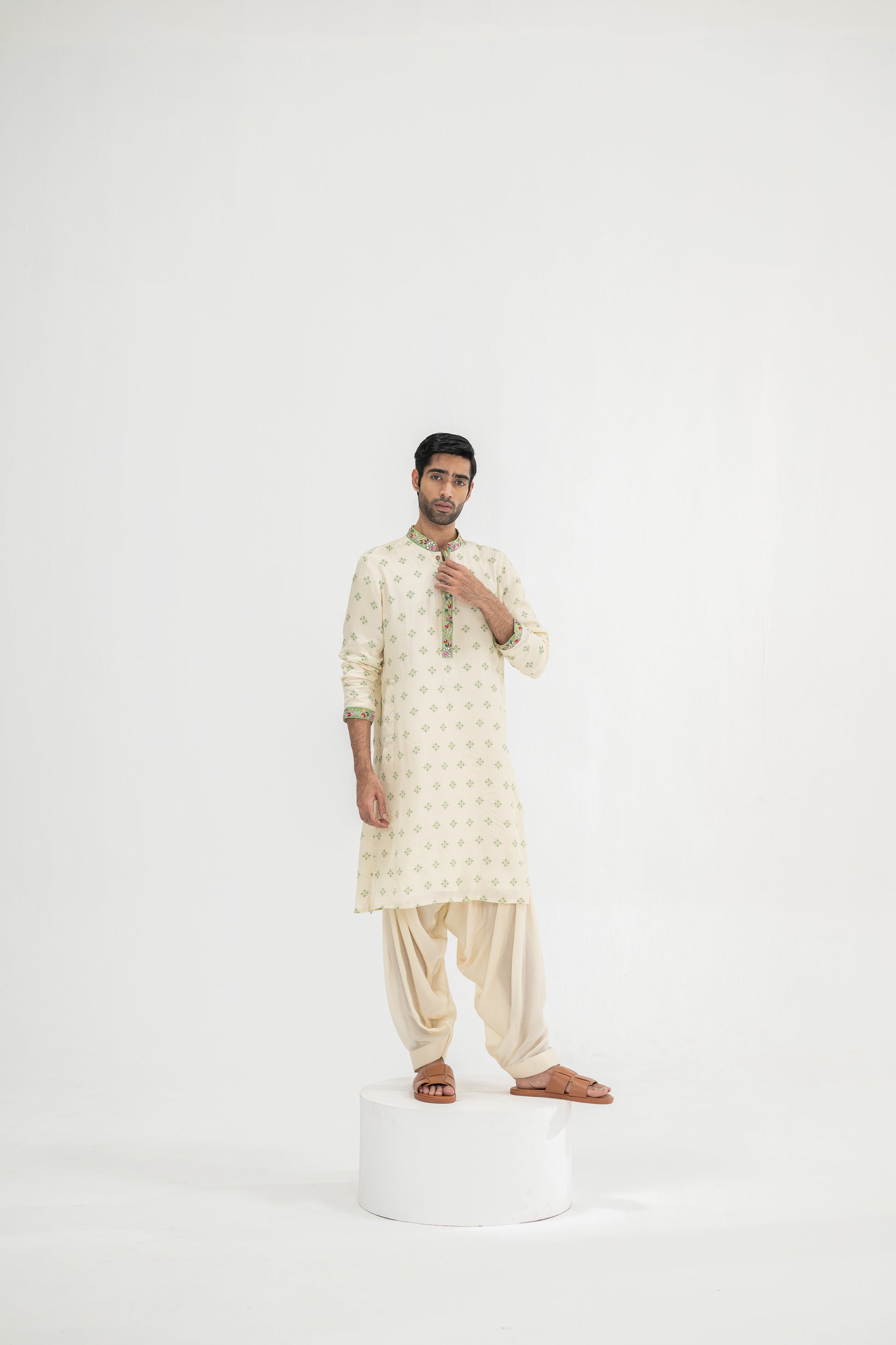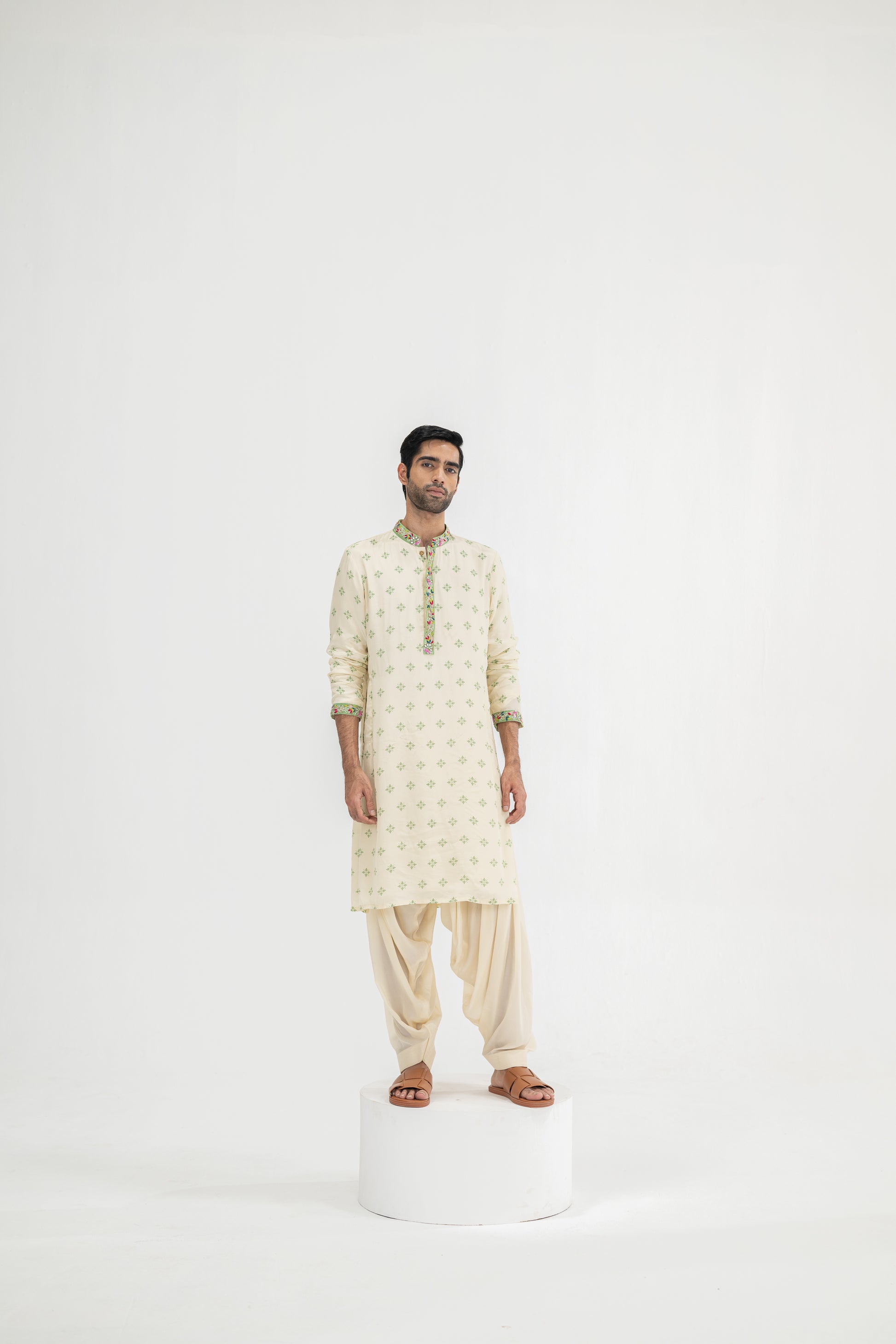 Cream Butta Kurta Paired With Cowl Pants(Kurta/full Set)