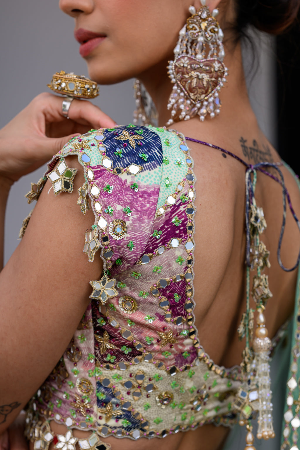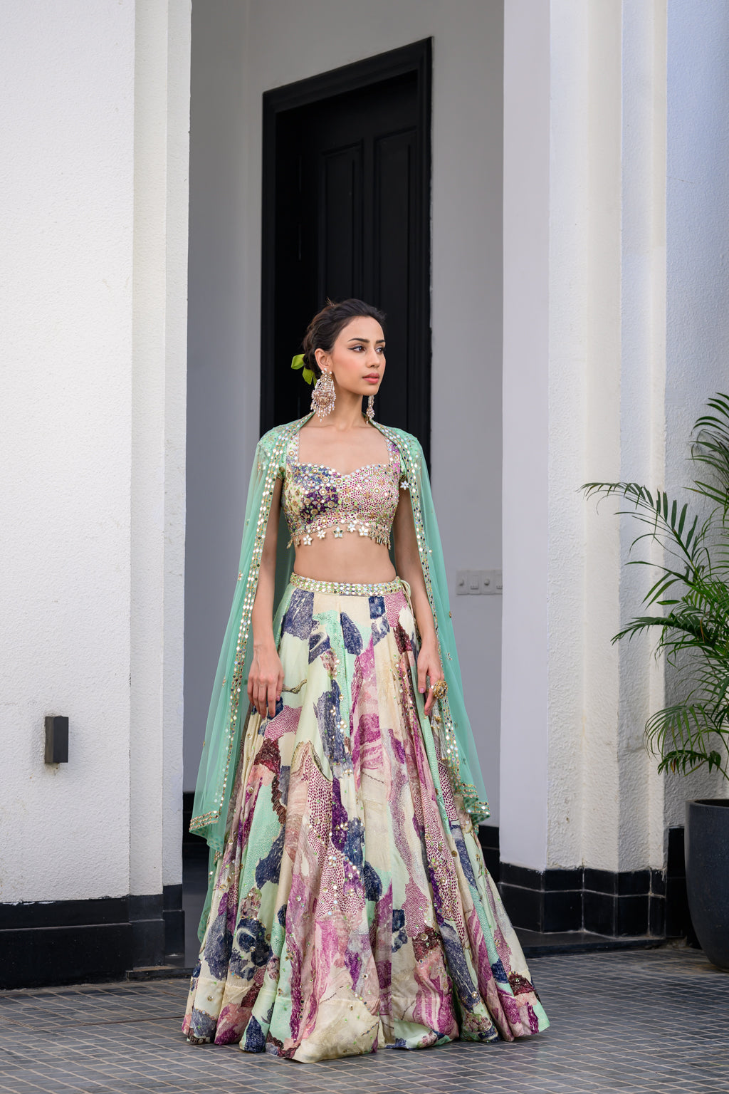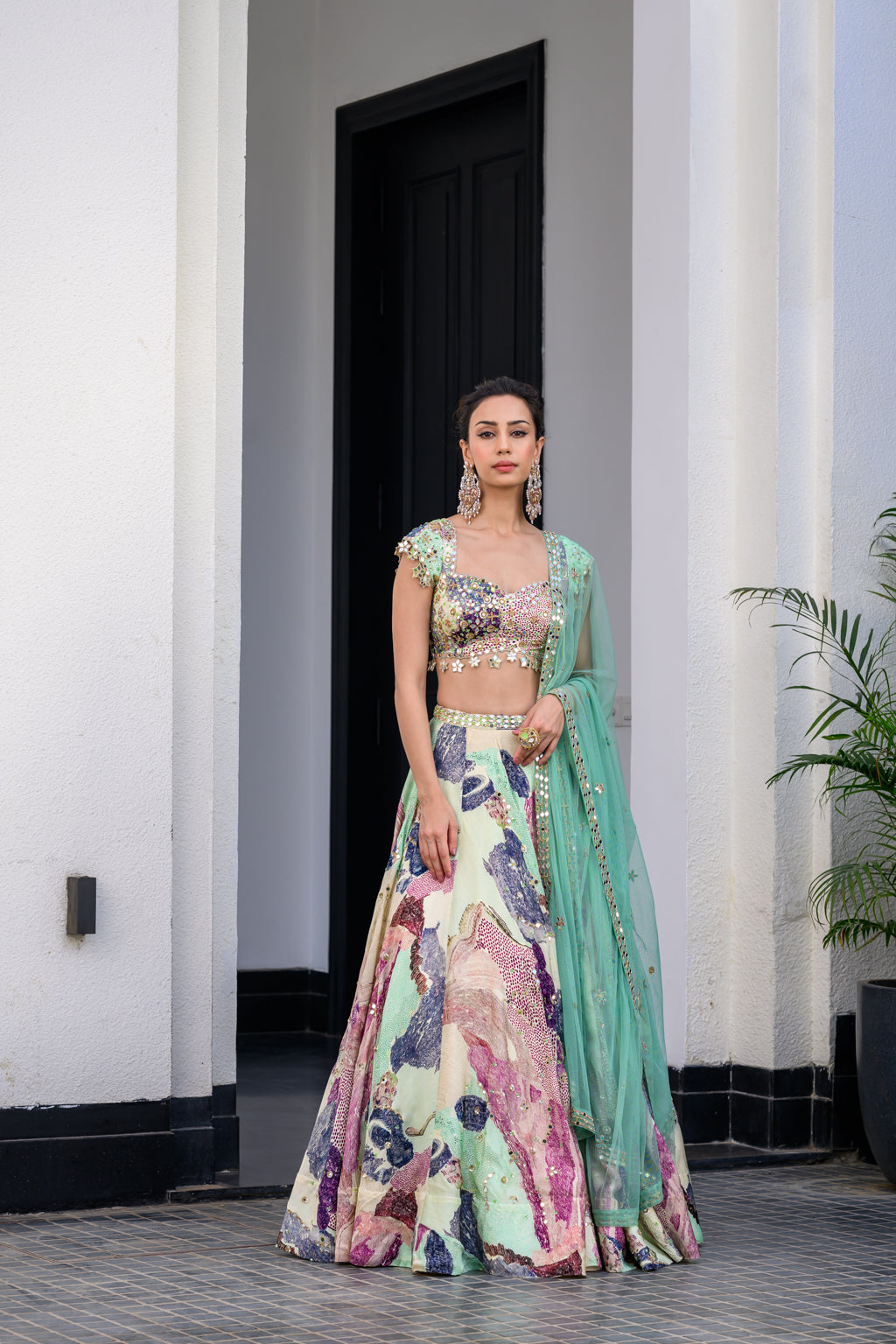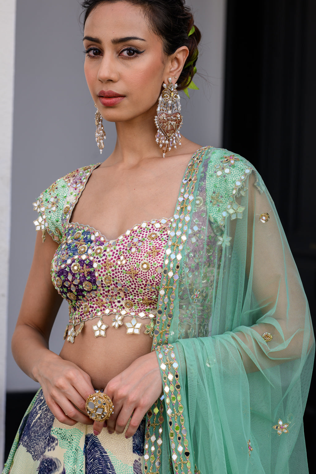 EDEN H LEHENGA PAIRED WITH H BLOUSE AND HAND EMB MIRROR DUPATTA