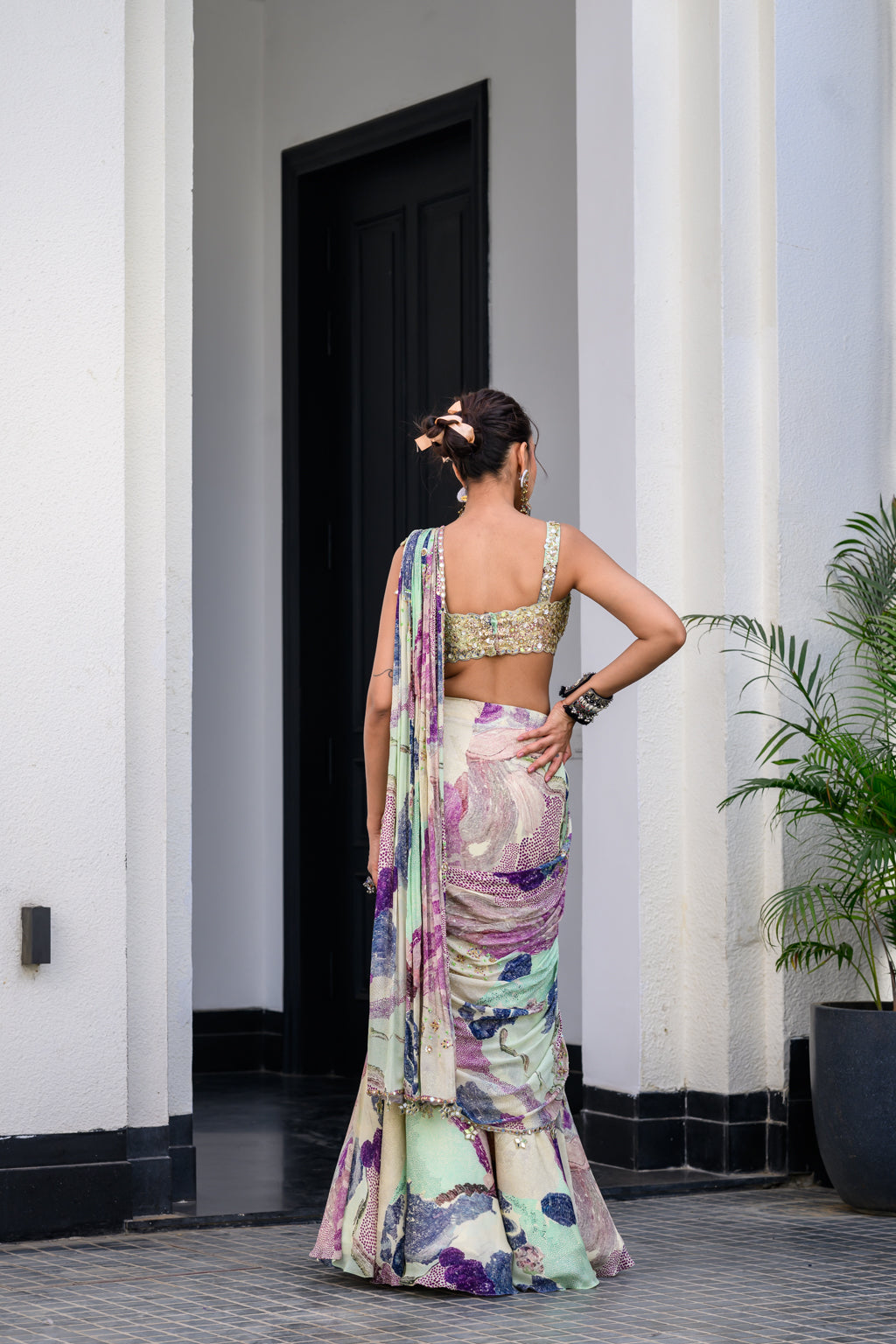 EDEN H SAREE PAIRED WITH HAND EMB BLOUSE