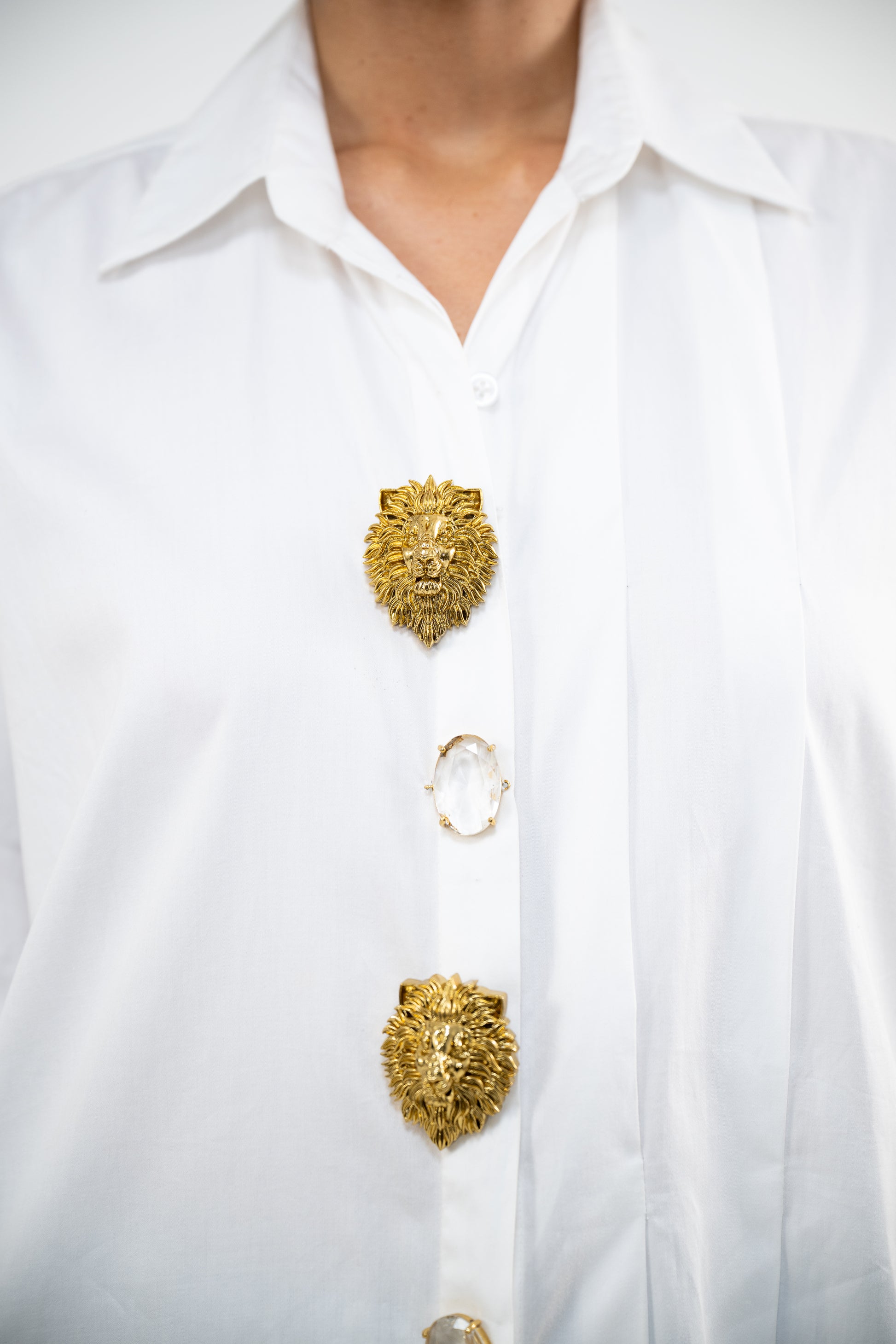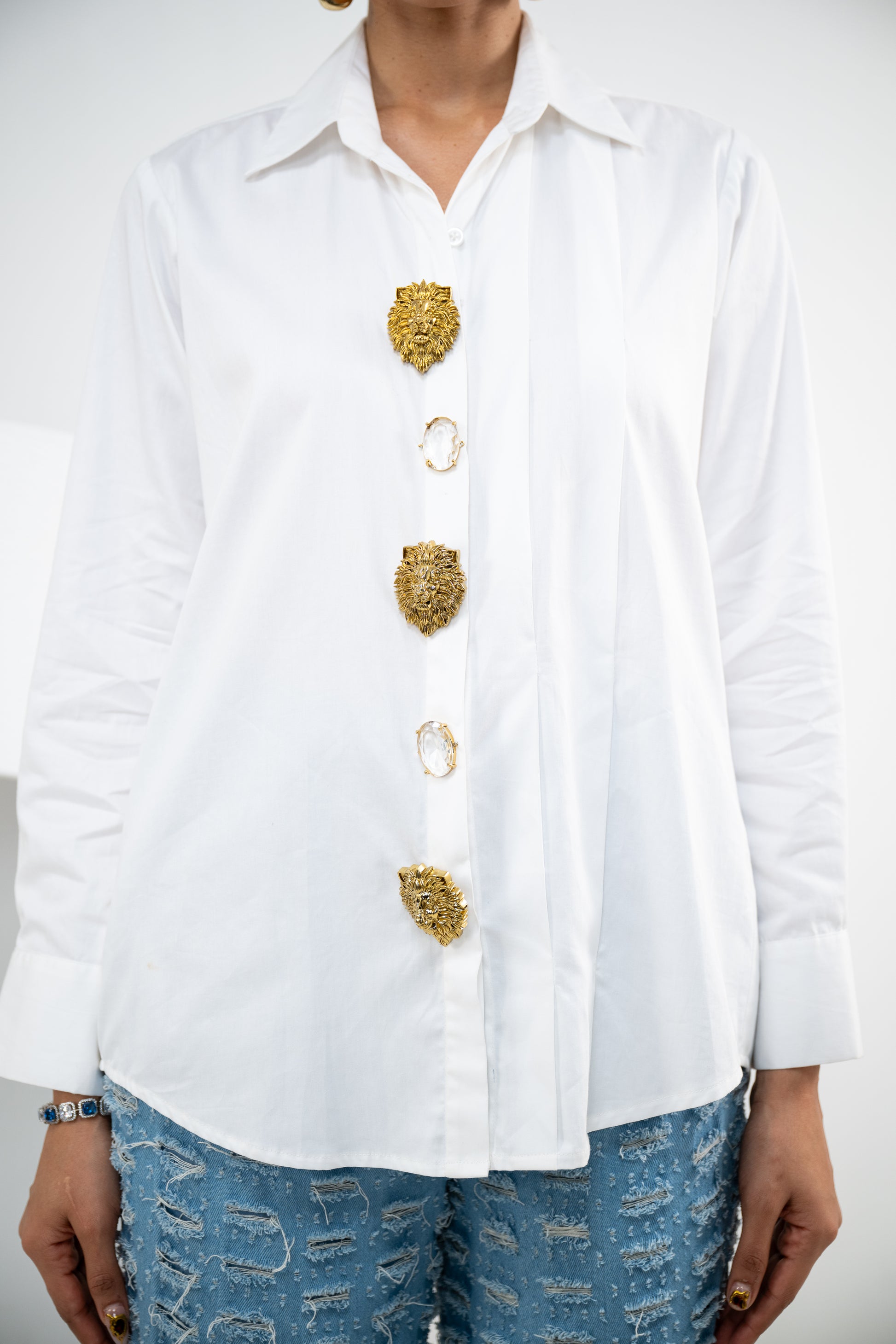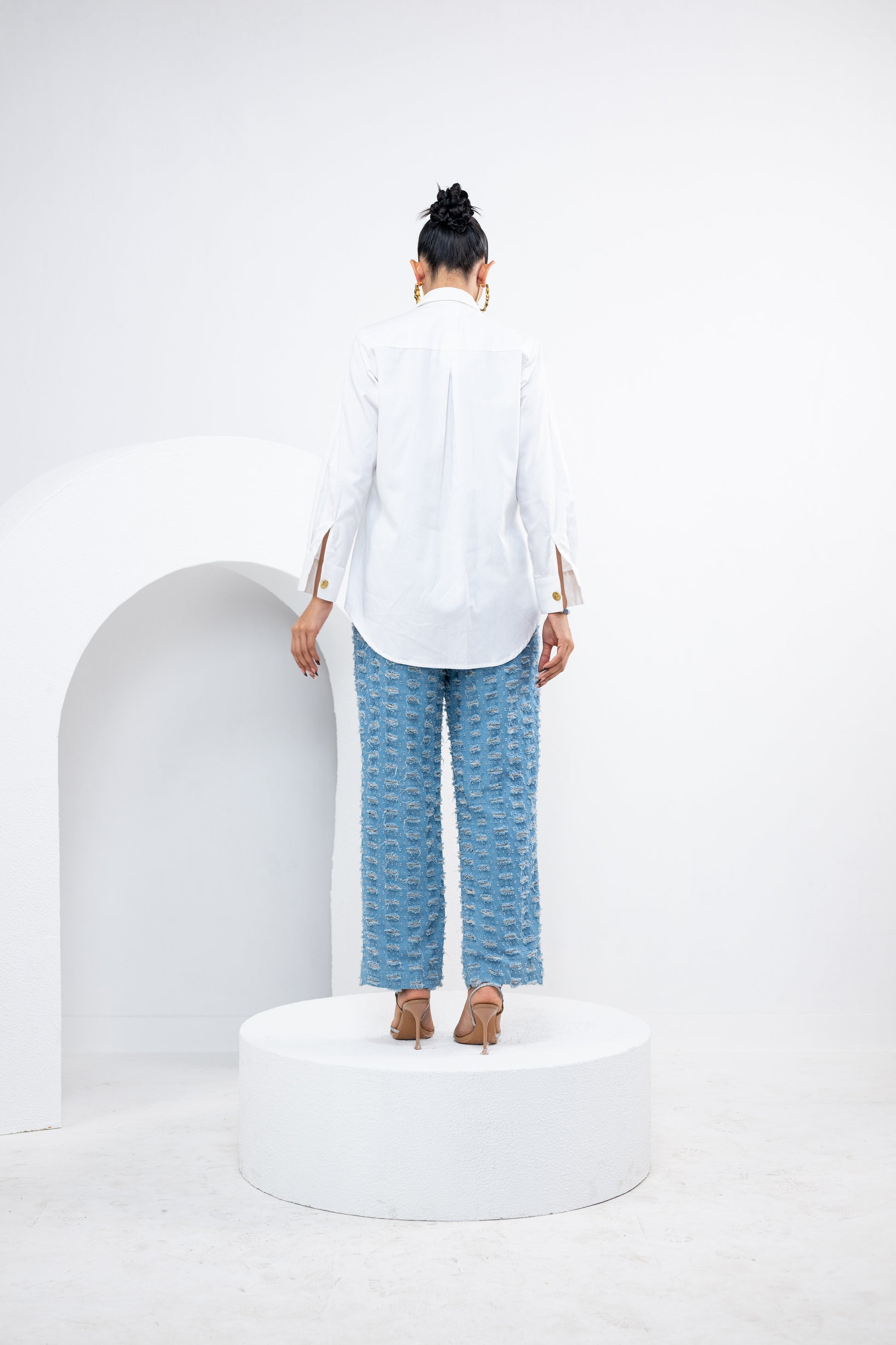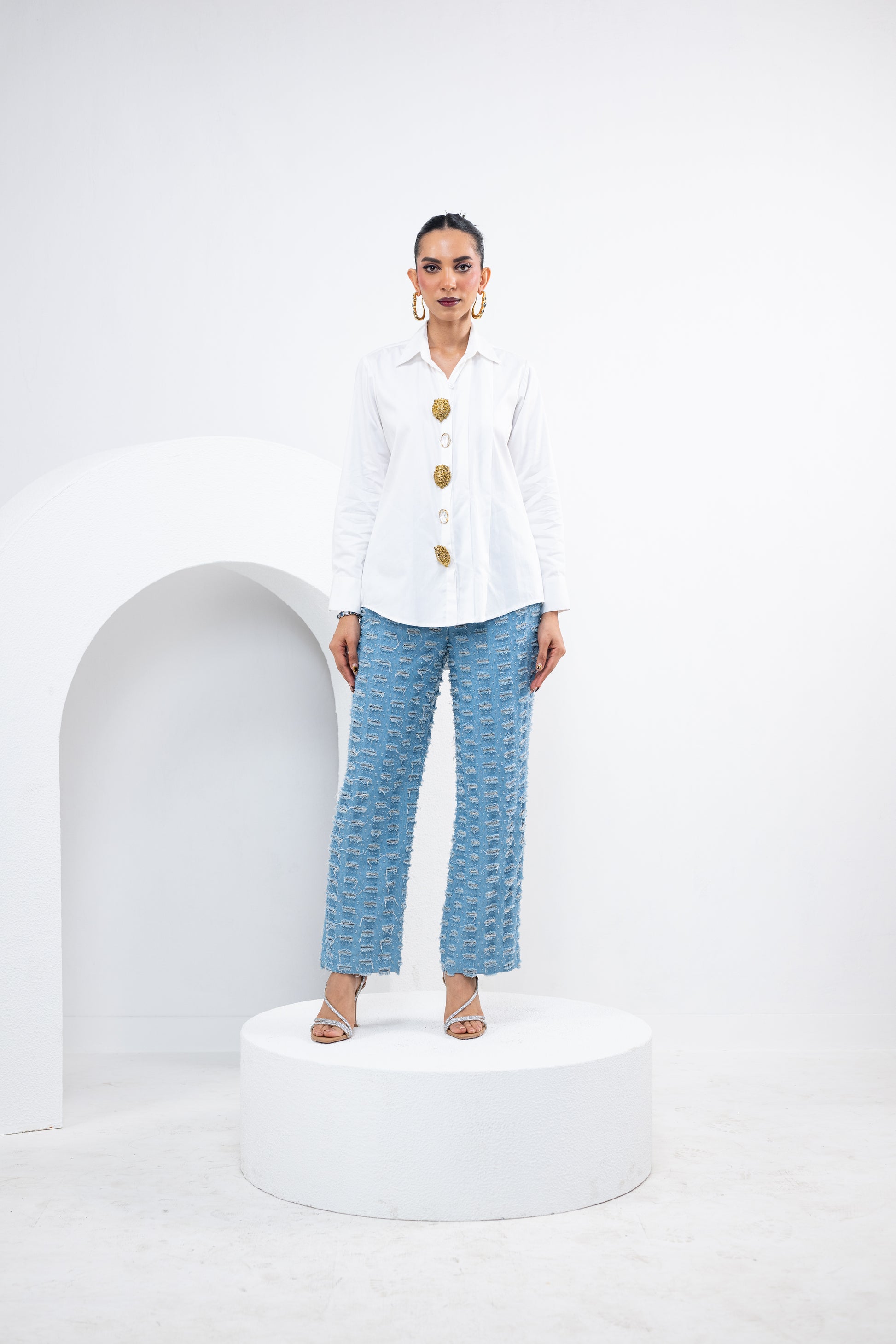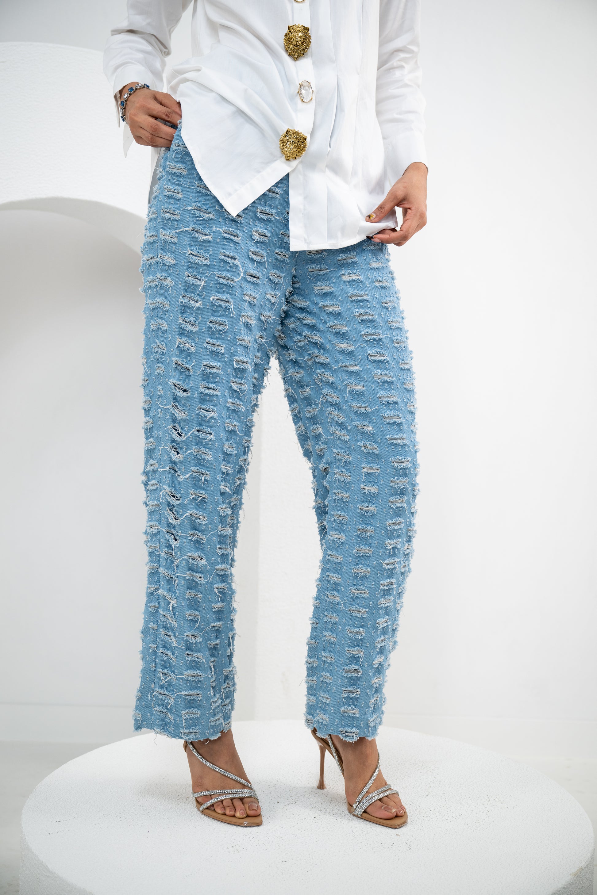 FRINGE DENIM PANT WITH LION CRYSTAL SHIRT