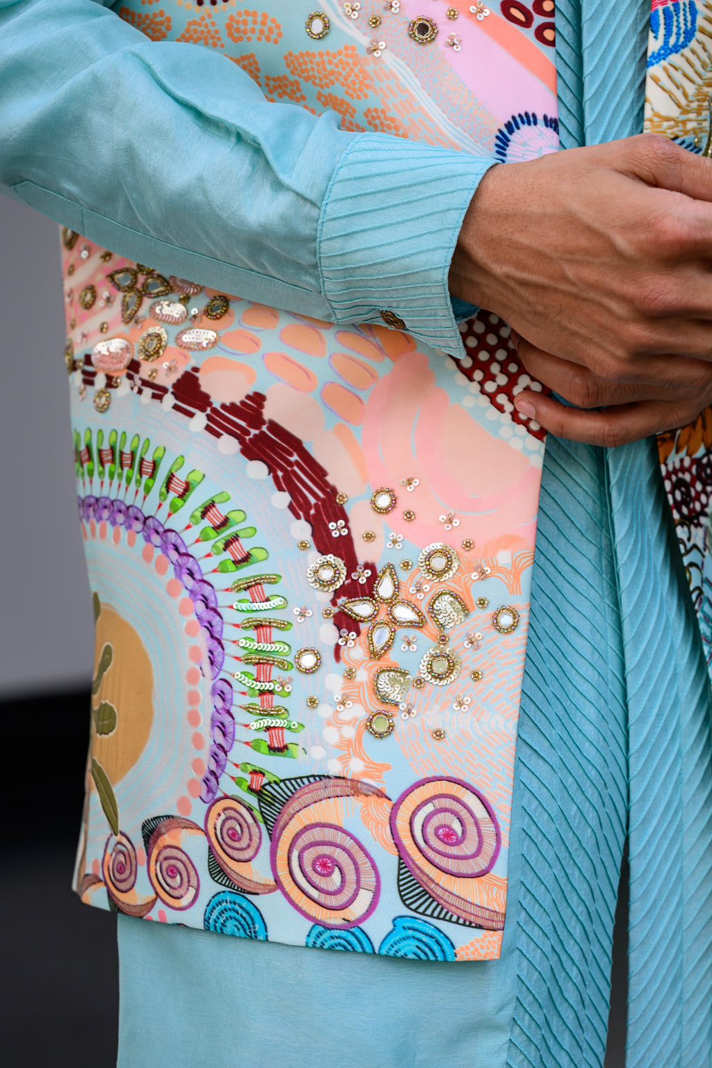 GARDENIA HIGHLIGHTED HALF JACKET WITH PANTS