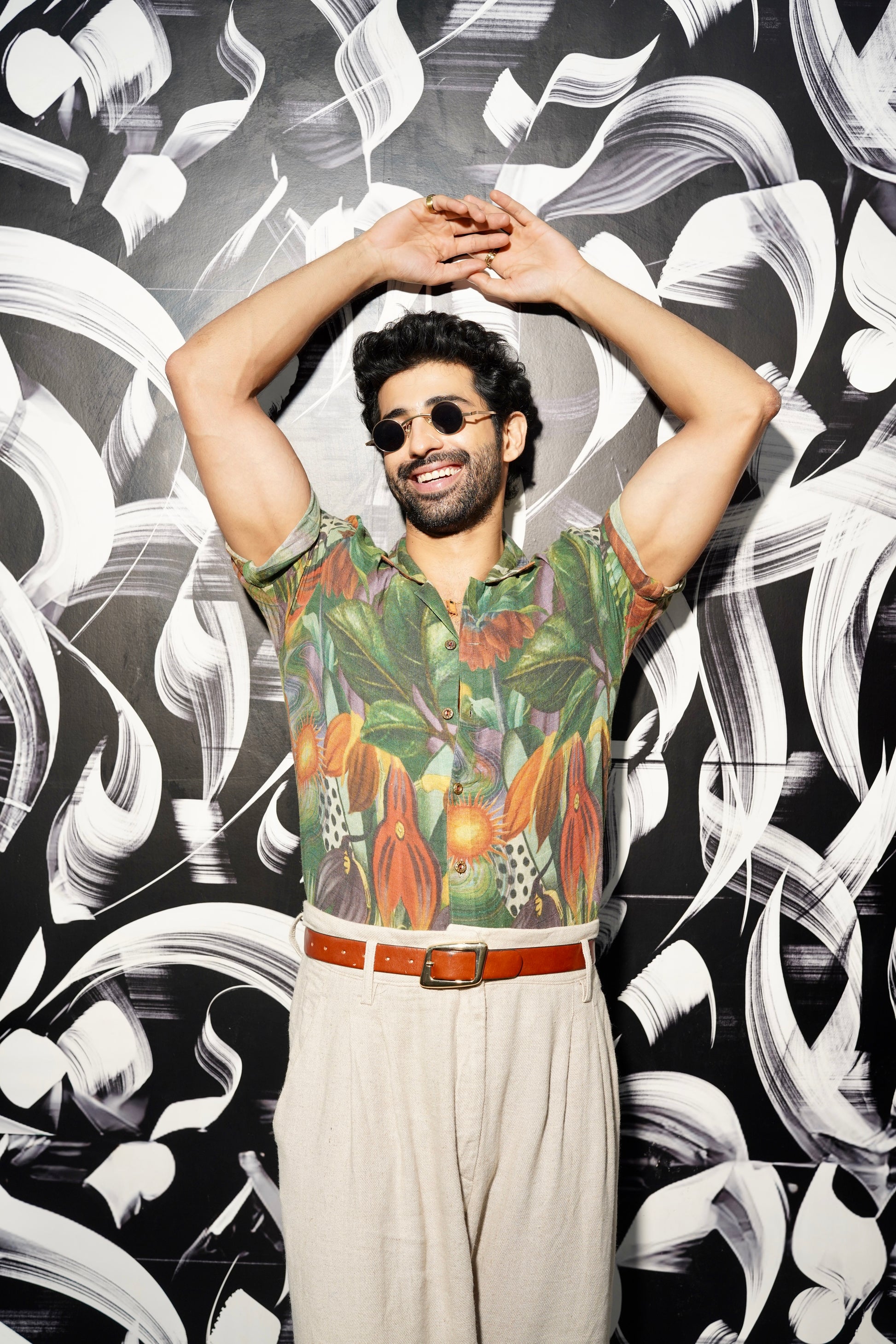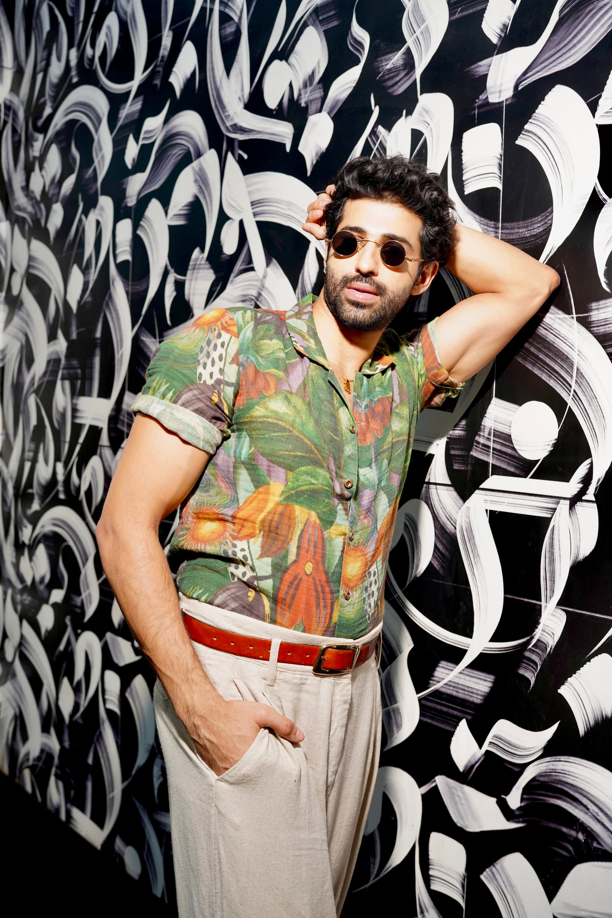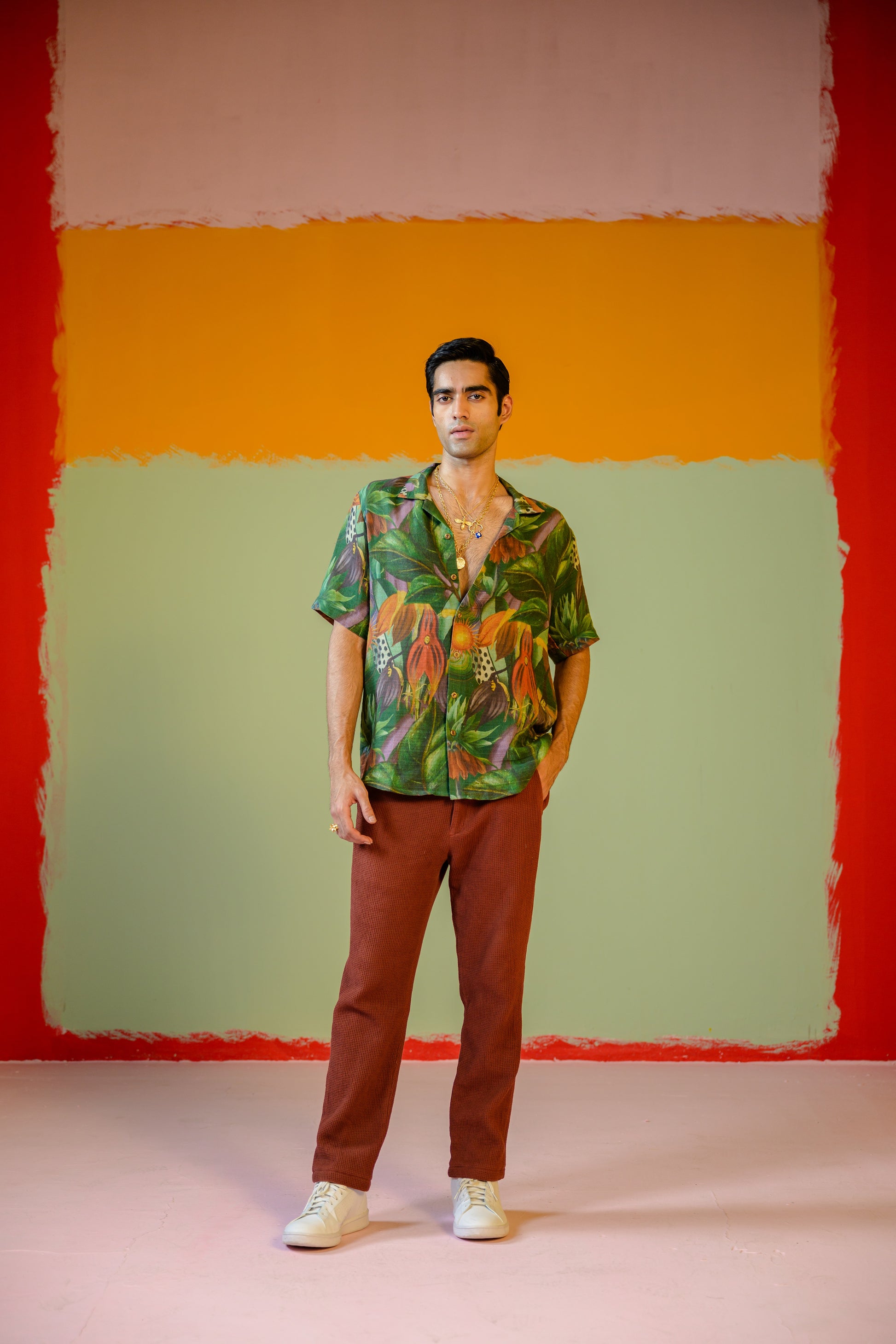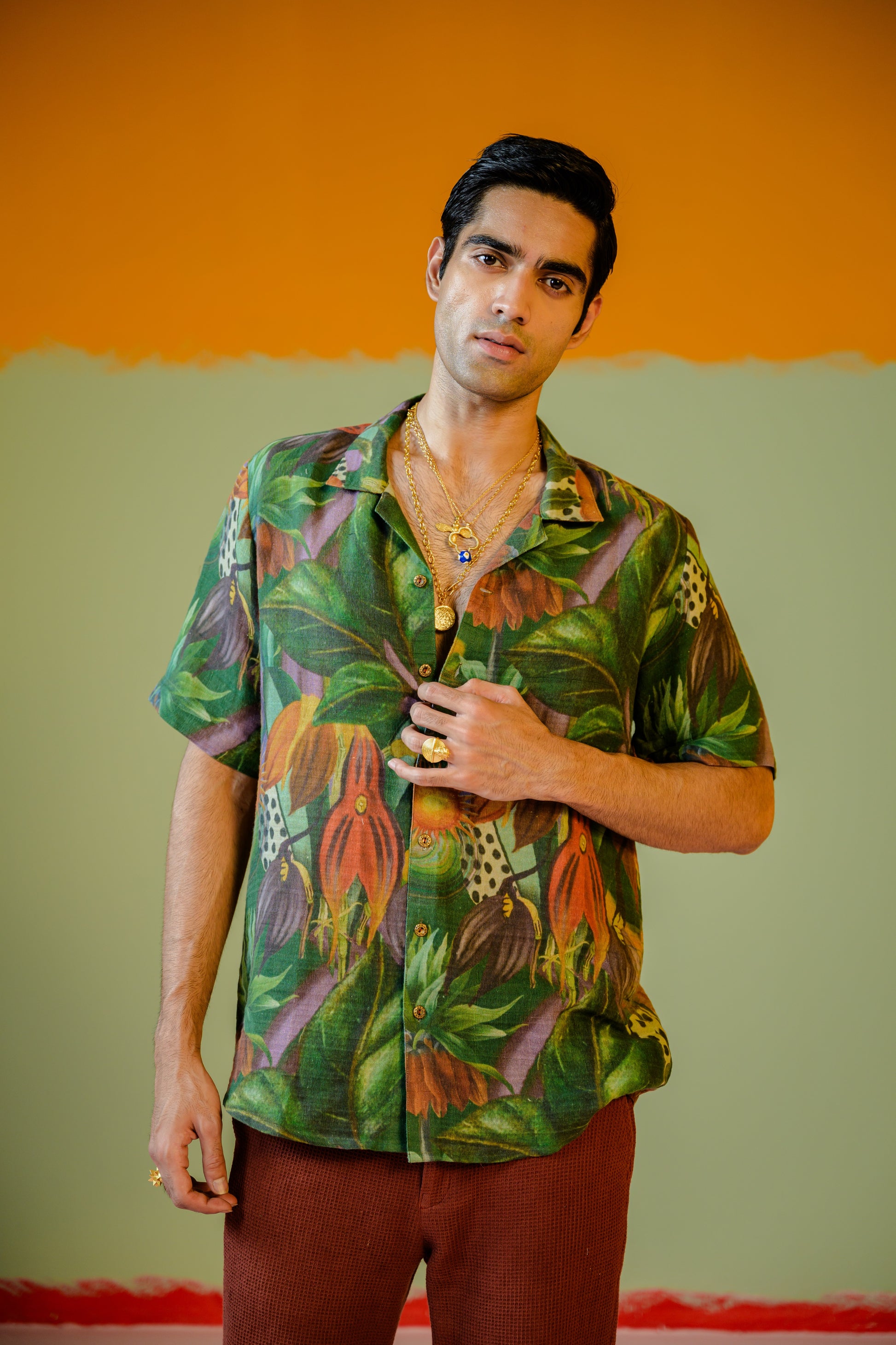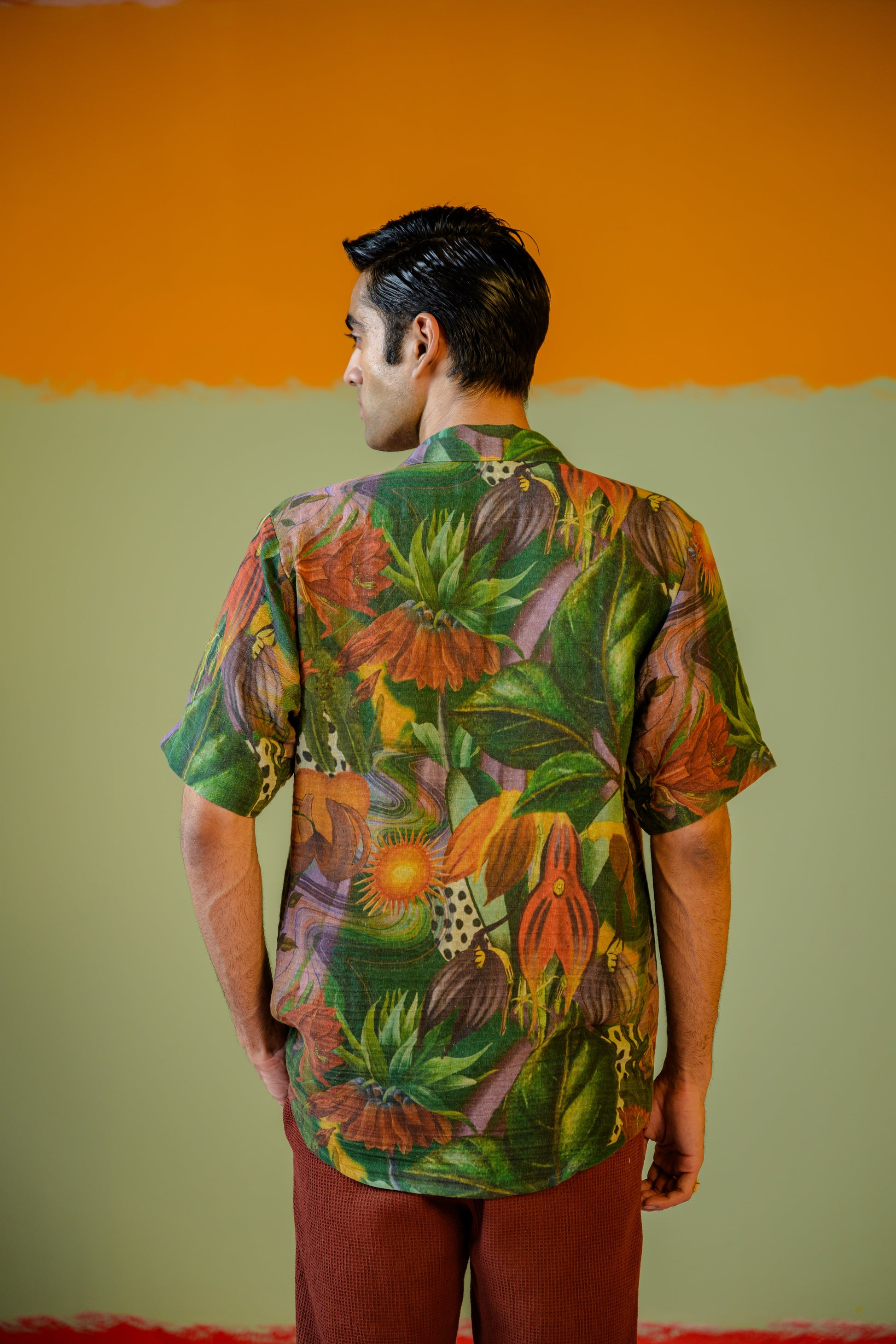 Jungle Half Sleeve Shirt Paired With Brown Pant Set