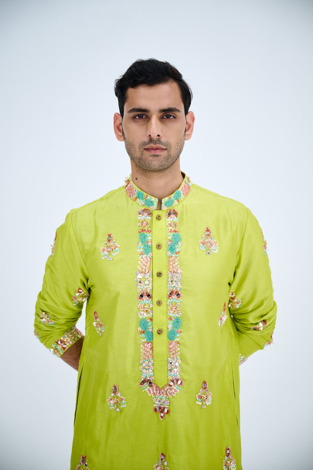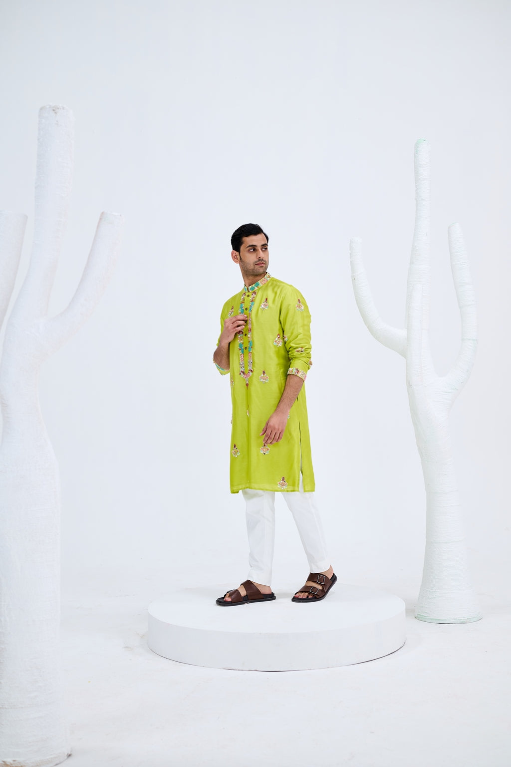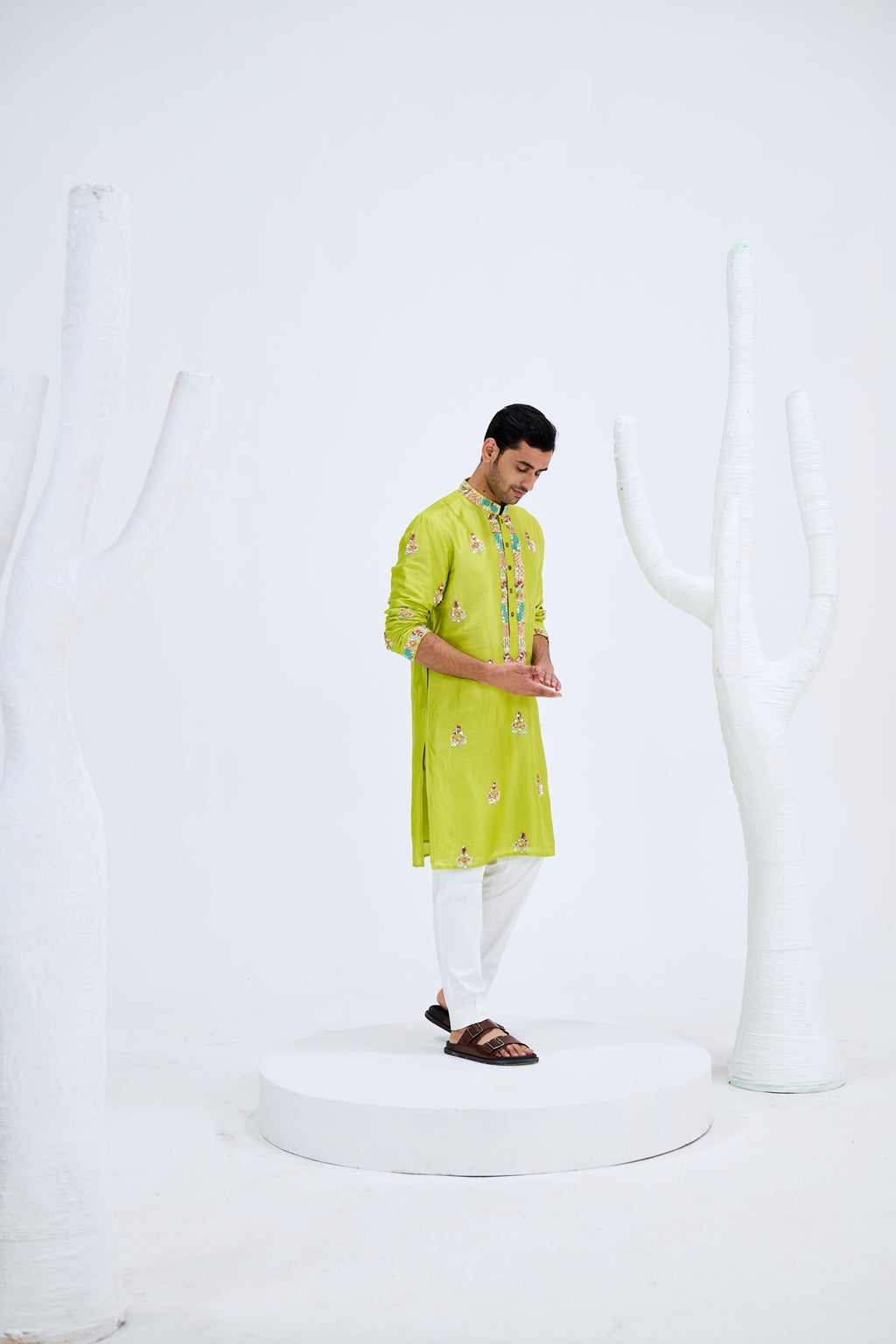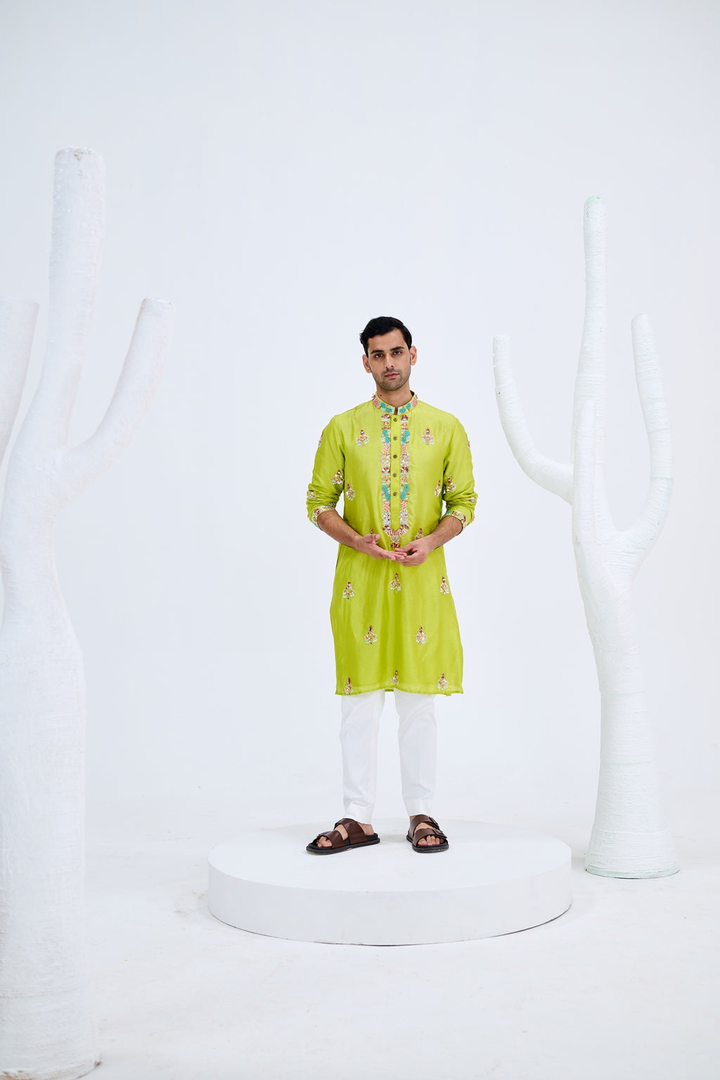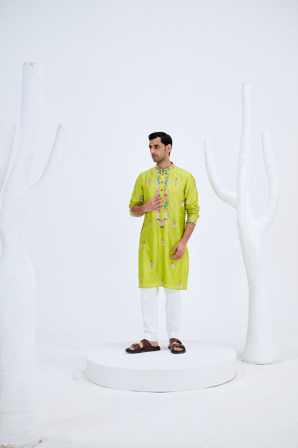 LIGHT GREEN BOOTA KURTA SET PAIRED WITH WHITE PANTS