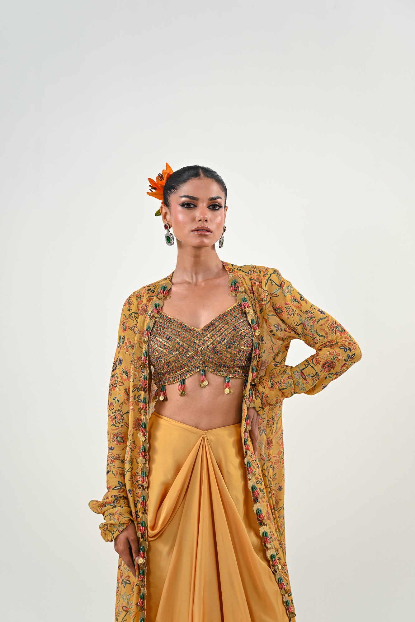 M YELLOW DHOTI WITH EMBROIDERED JACKET