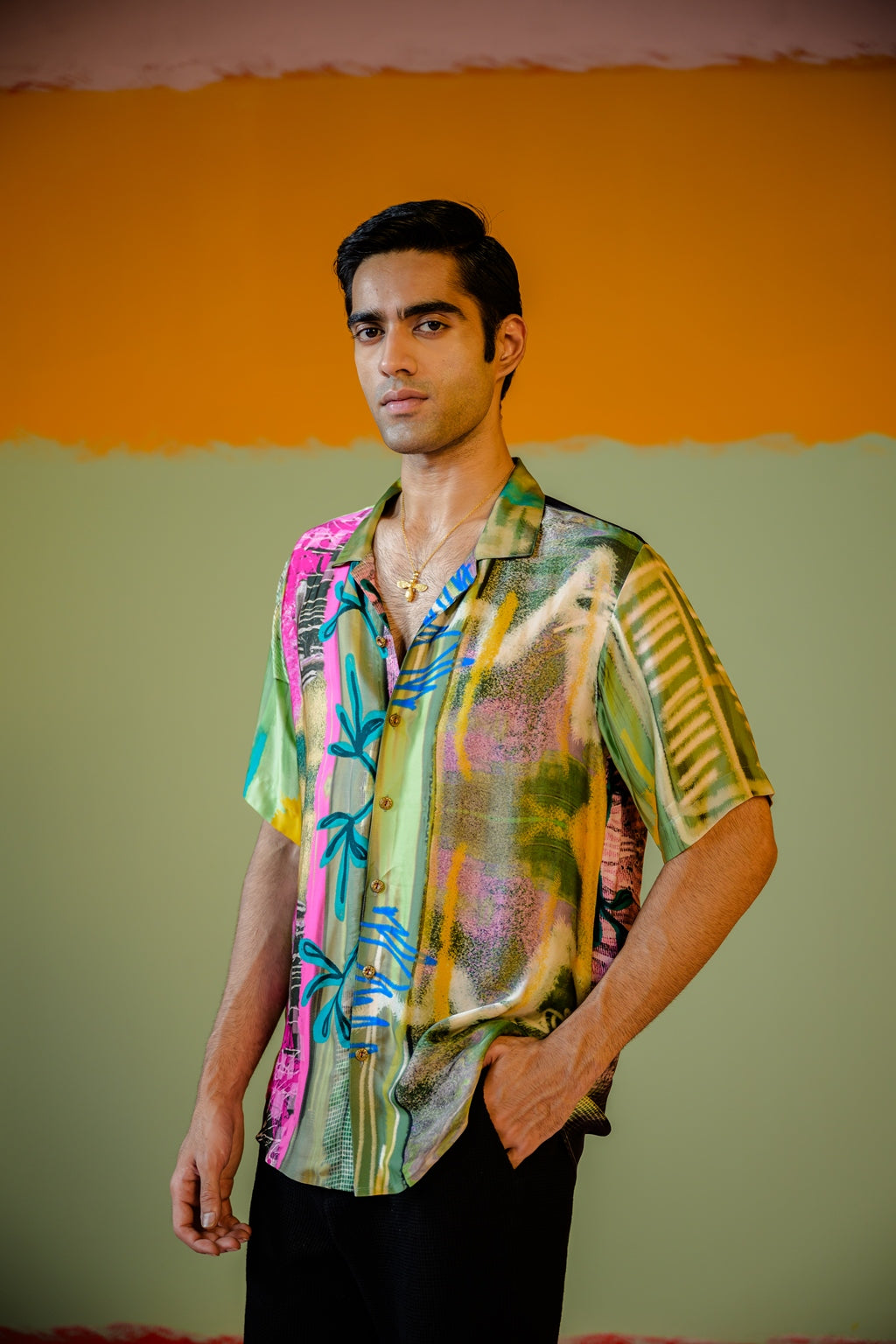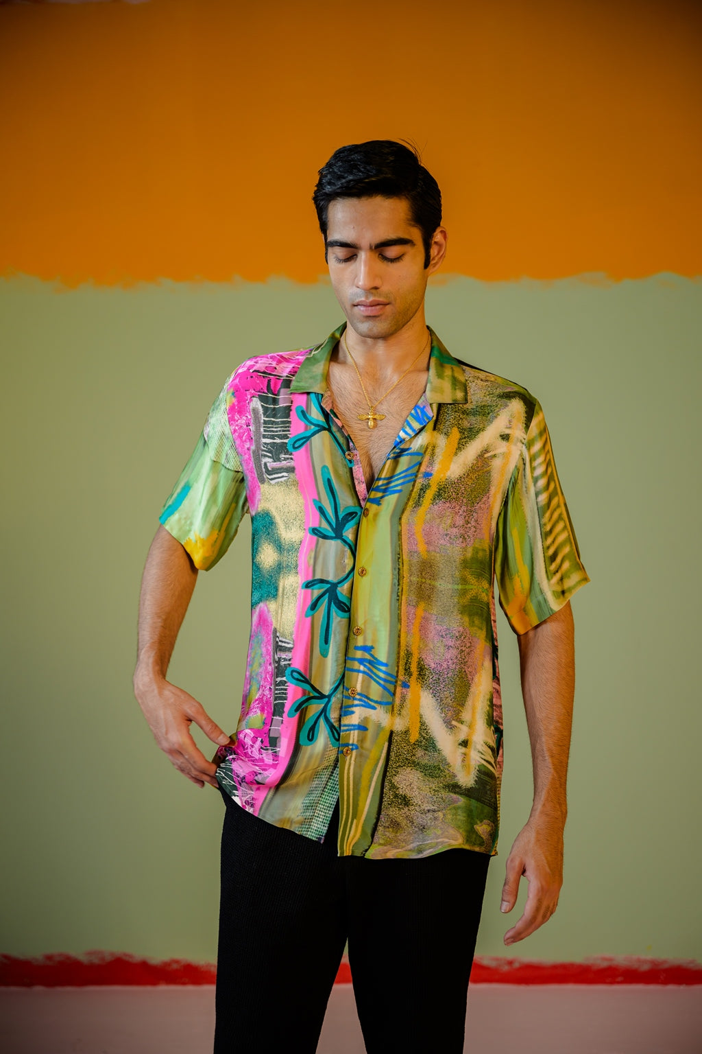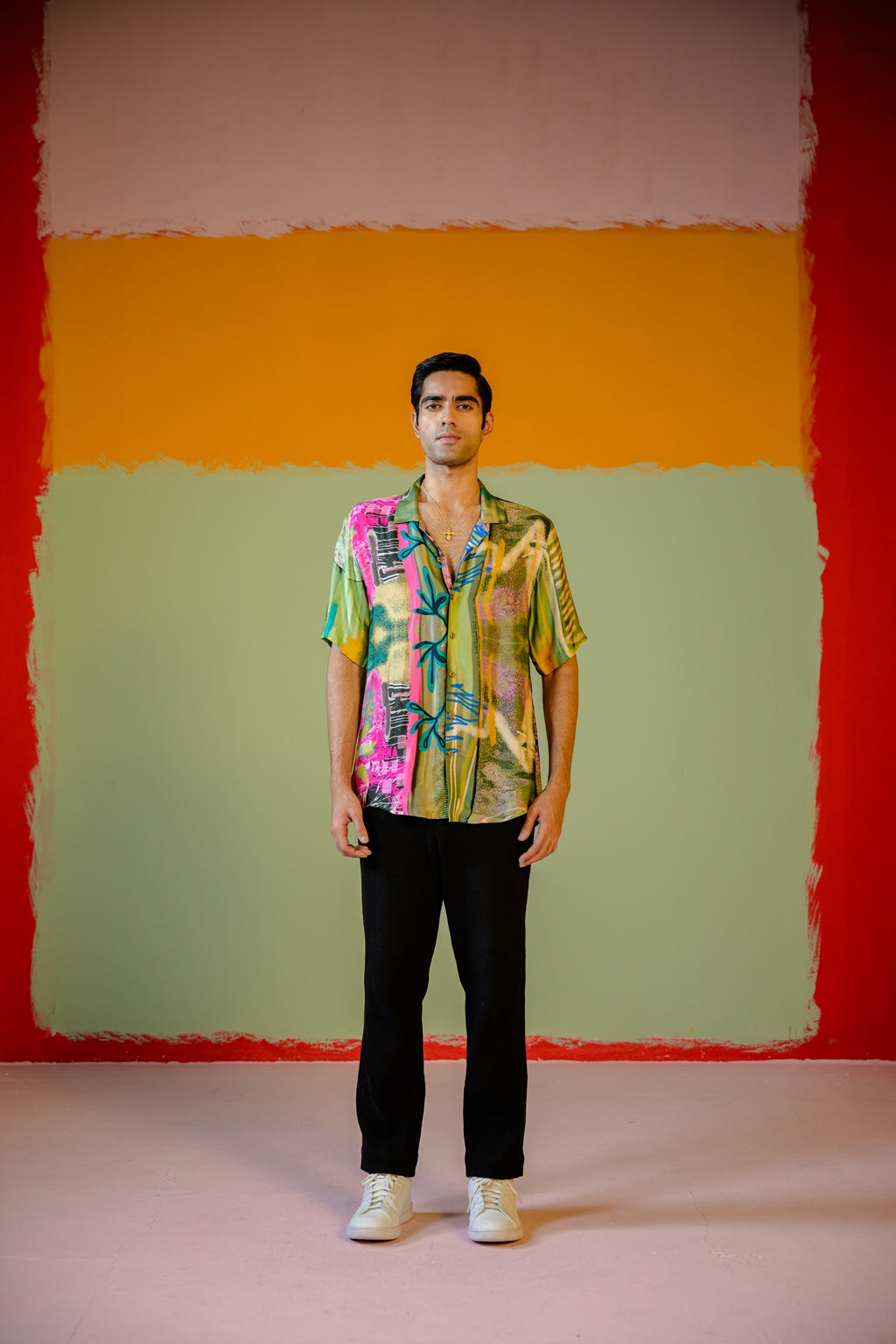 Mint Forest Half Sleeve Shirt Paired With Pant Set