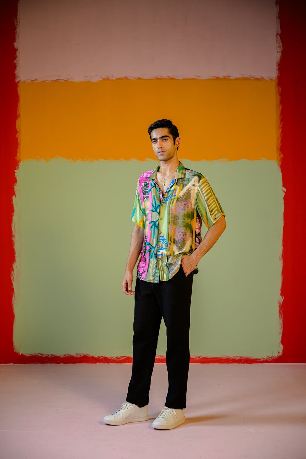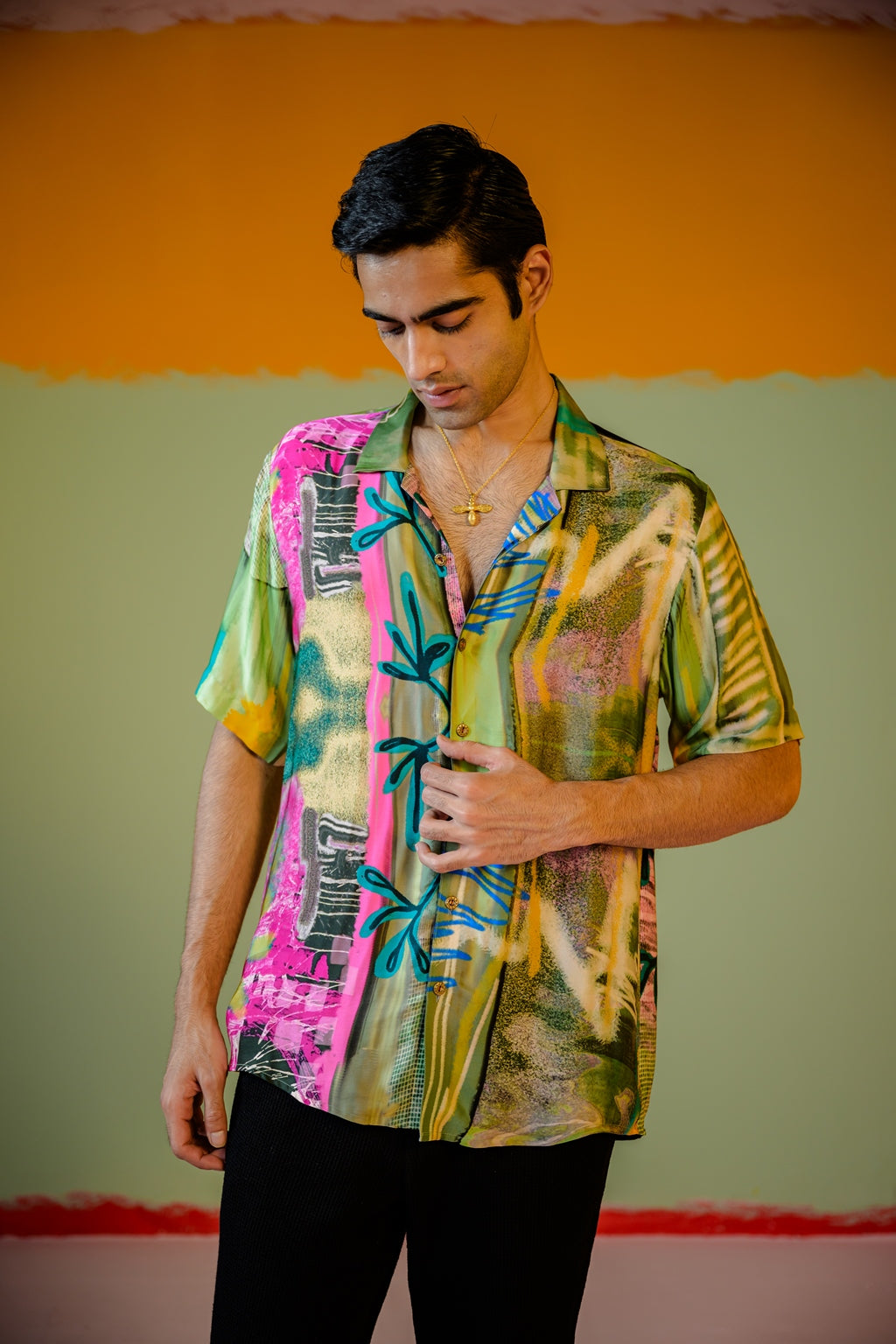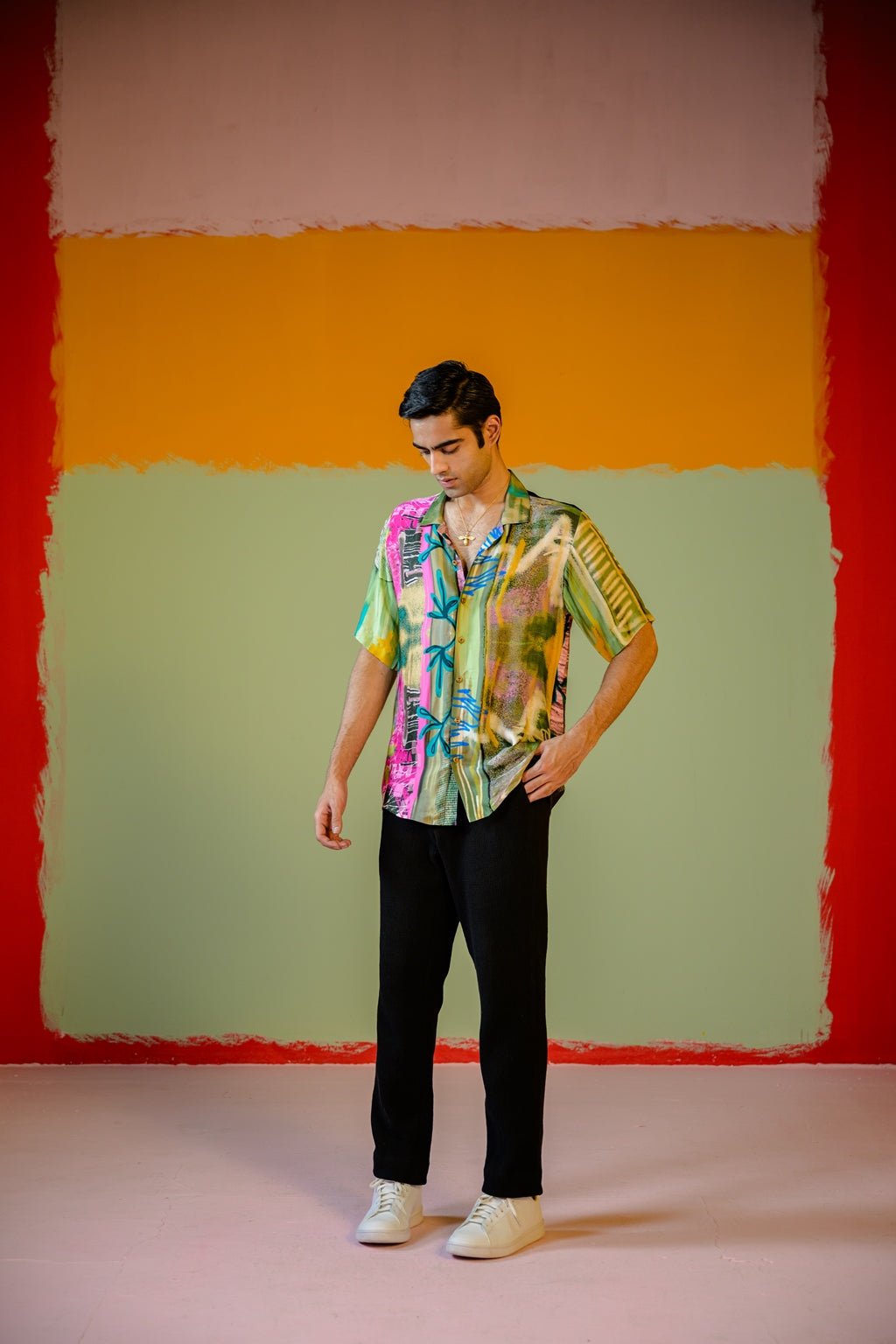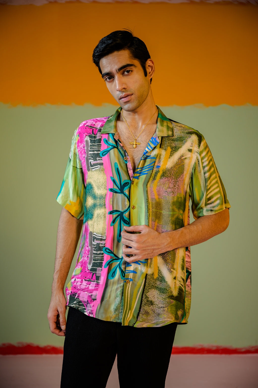 Mint Forest Half Sleeve Shirt Paired With Pant Set