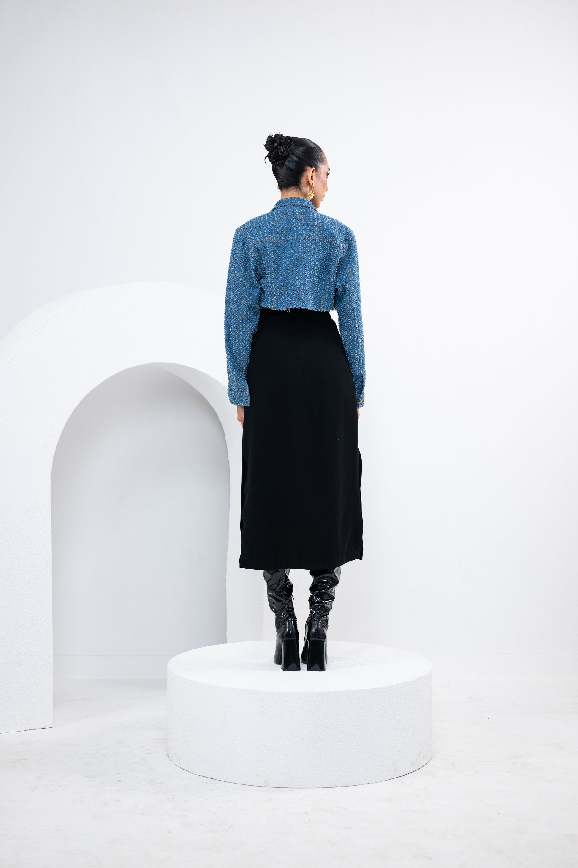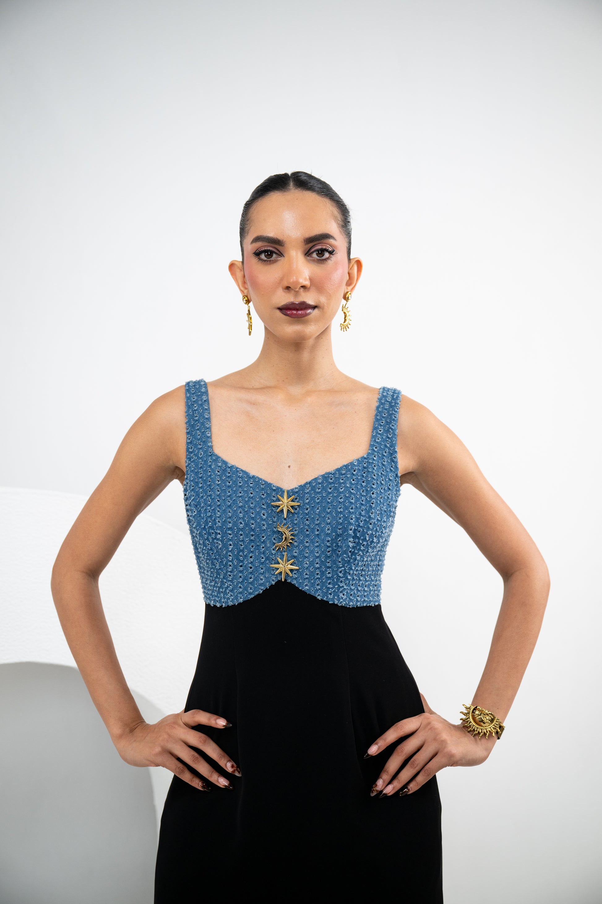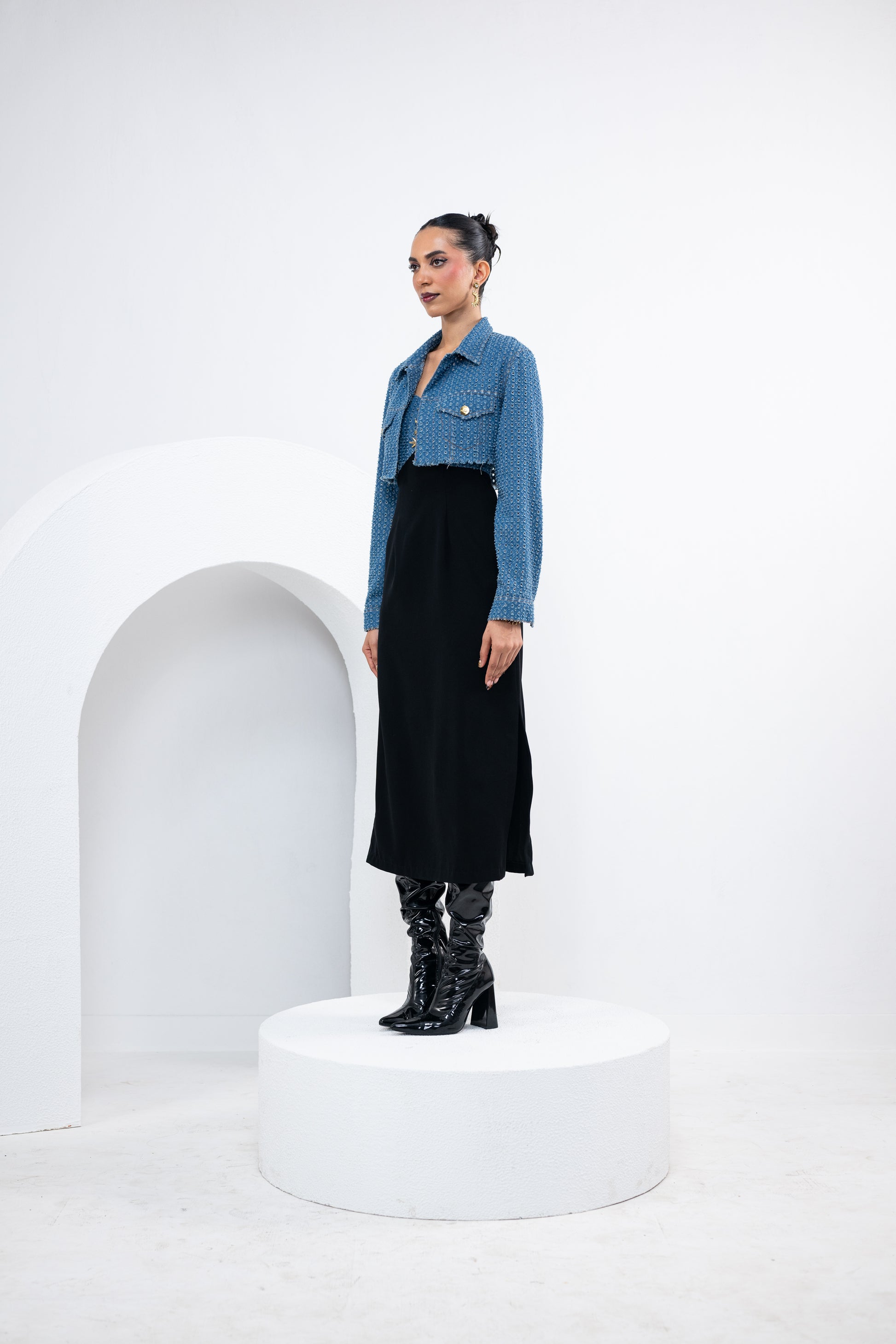 MOON STAR DOTTED DENIM DRESS PAIRED WITH DOTTED JACKET SET