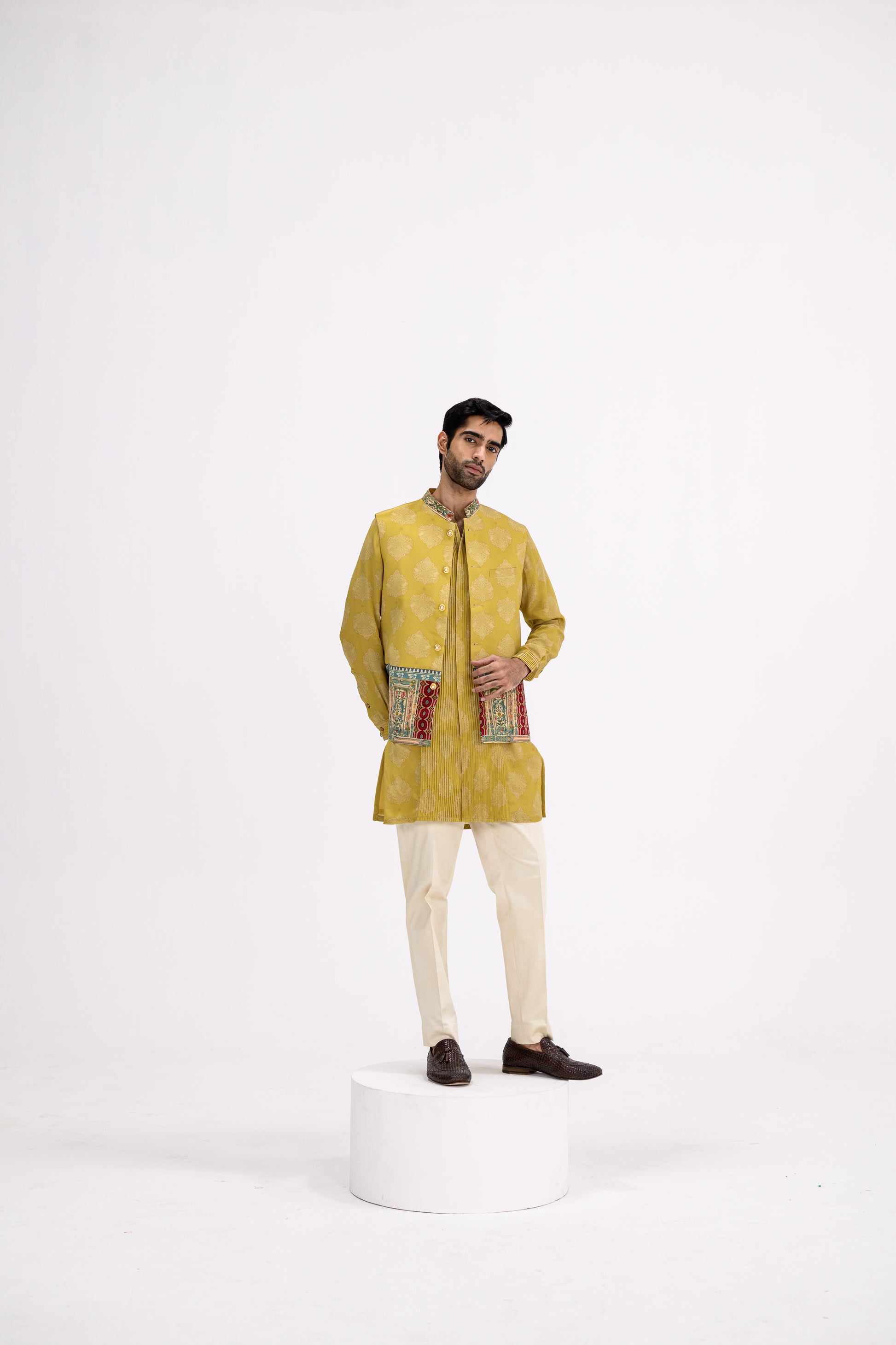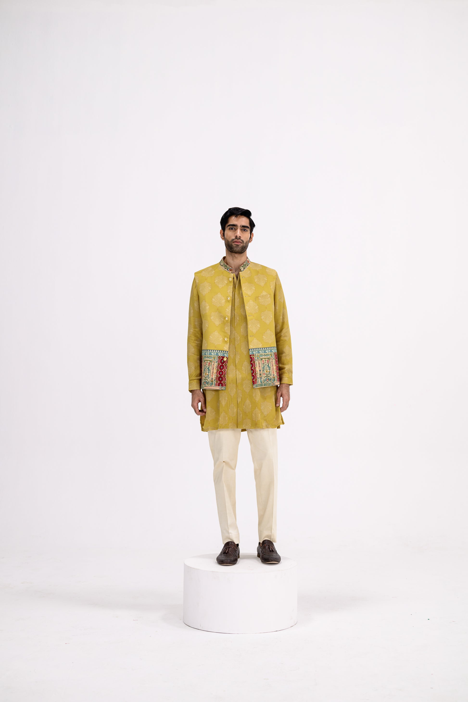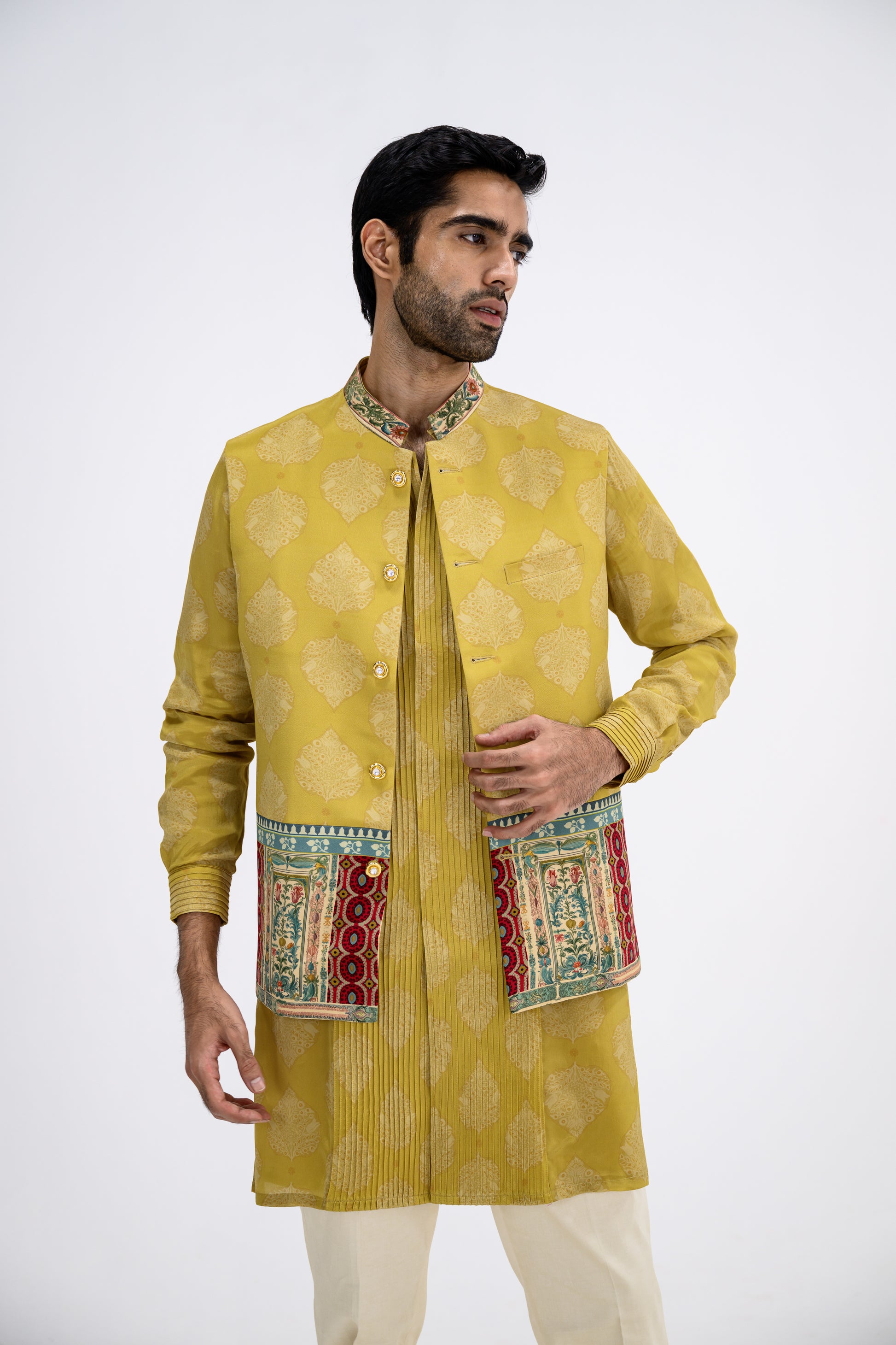 Mustard Pintuck Kurta Bundi Set/bundi