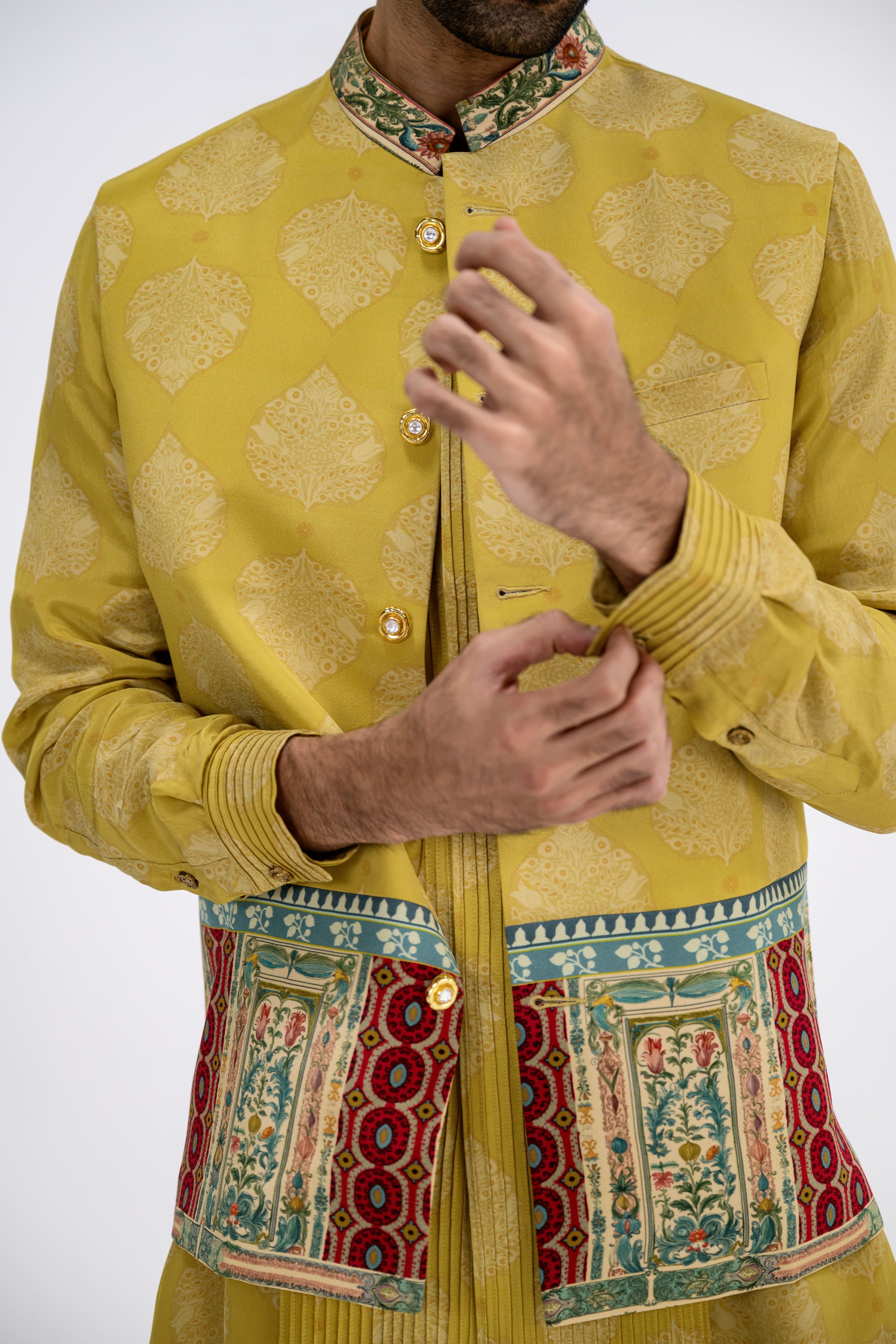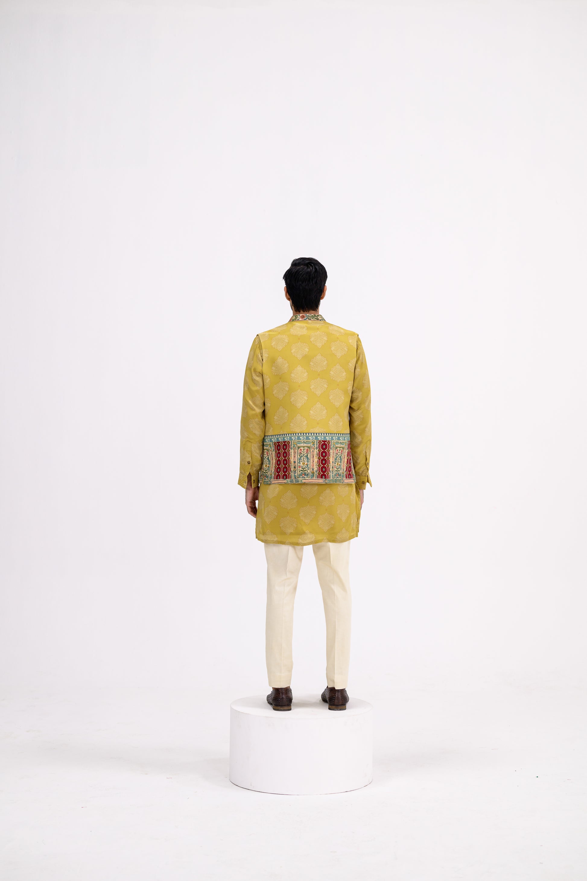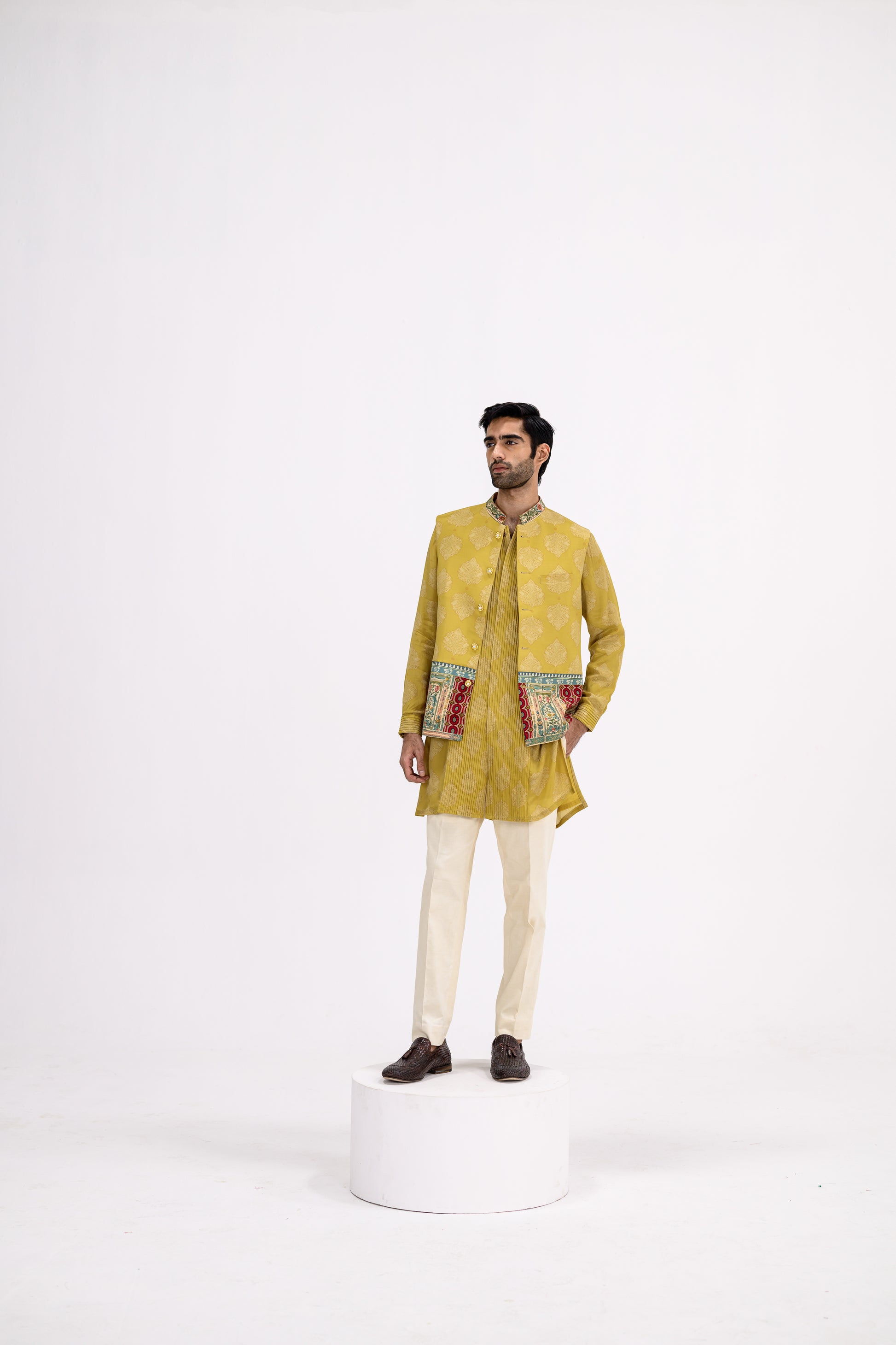 Mustard Pintuck Kurta Bundi Set/bundi
