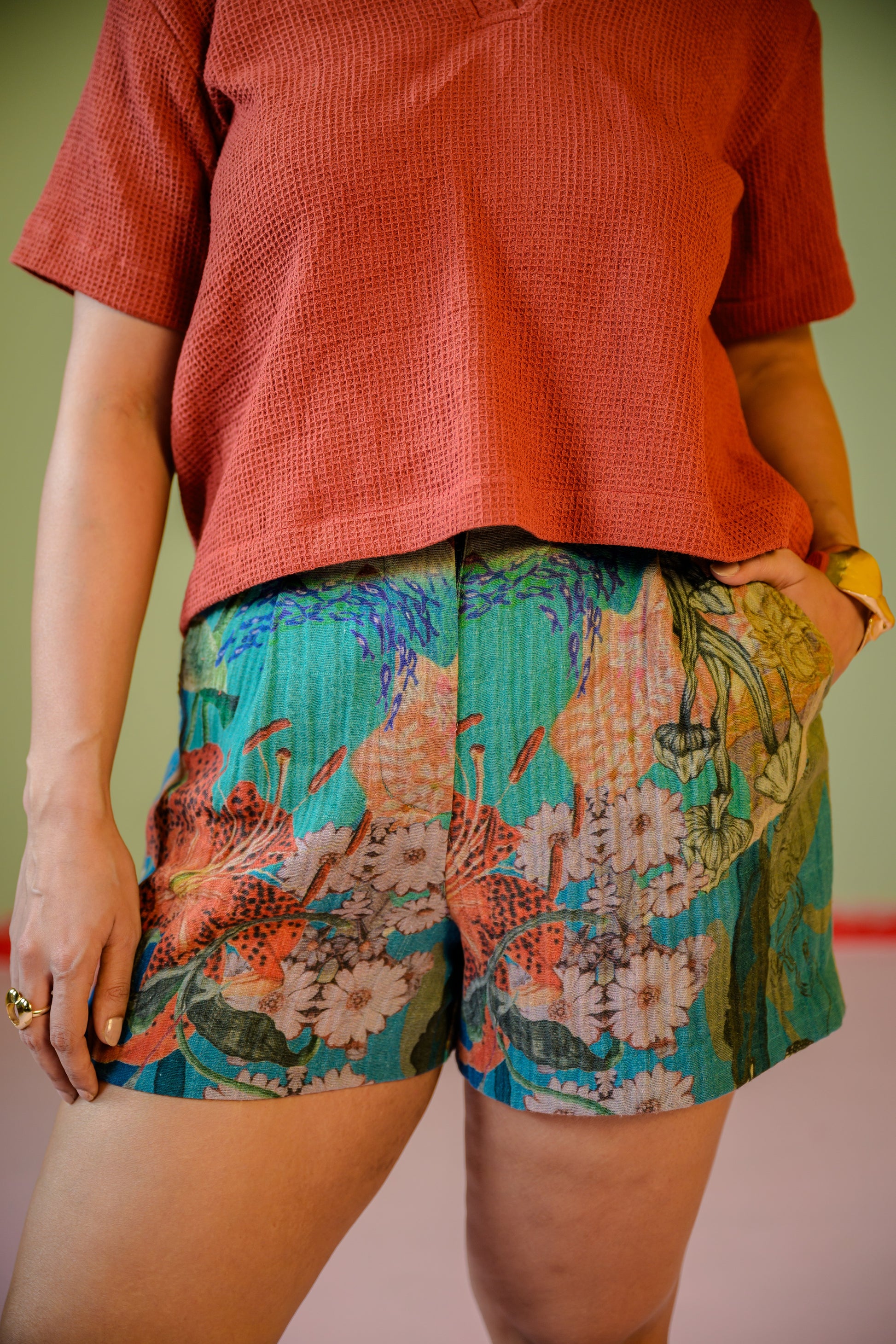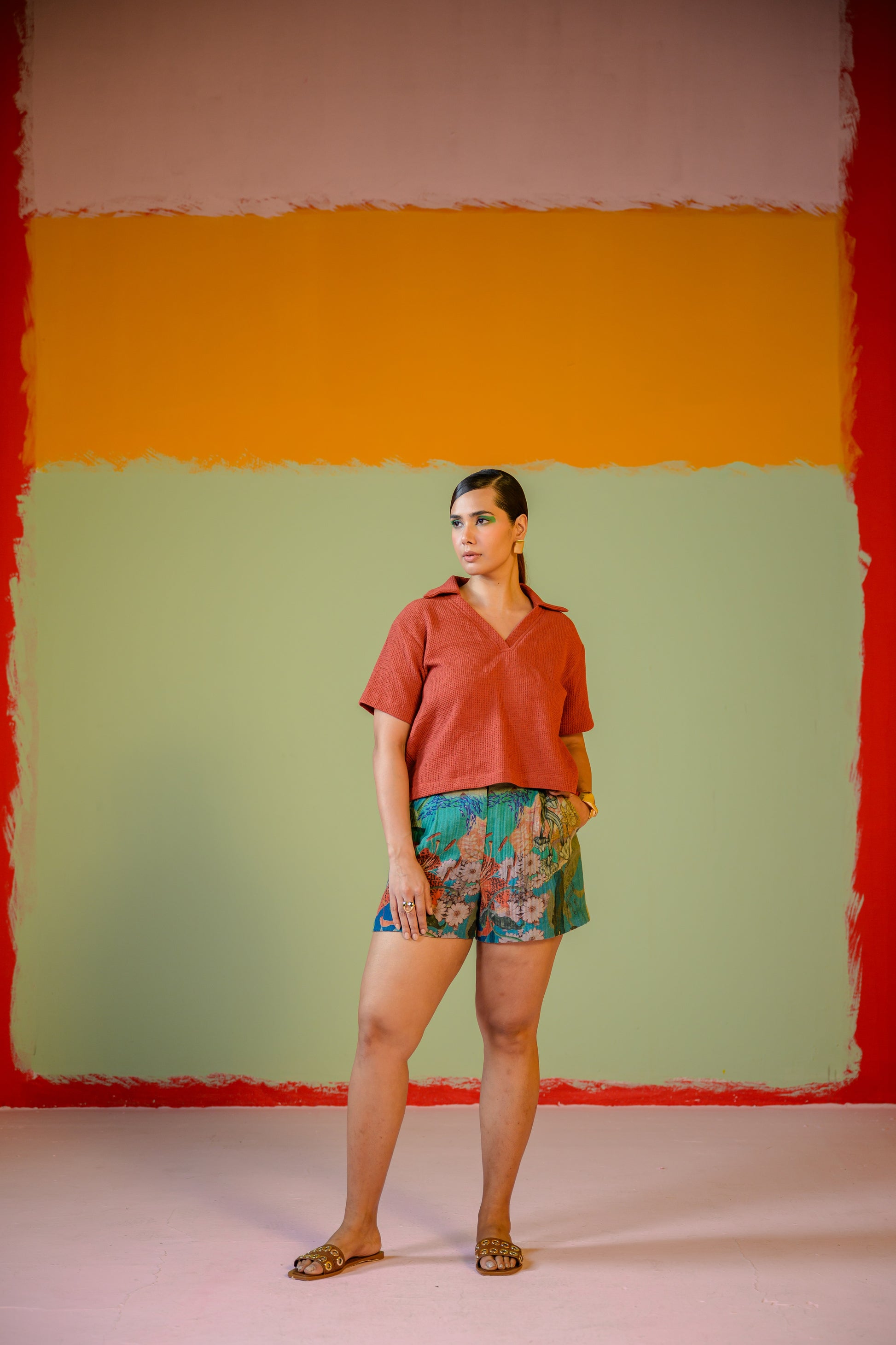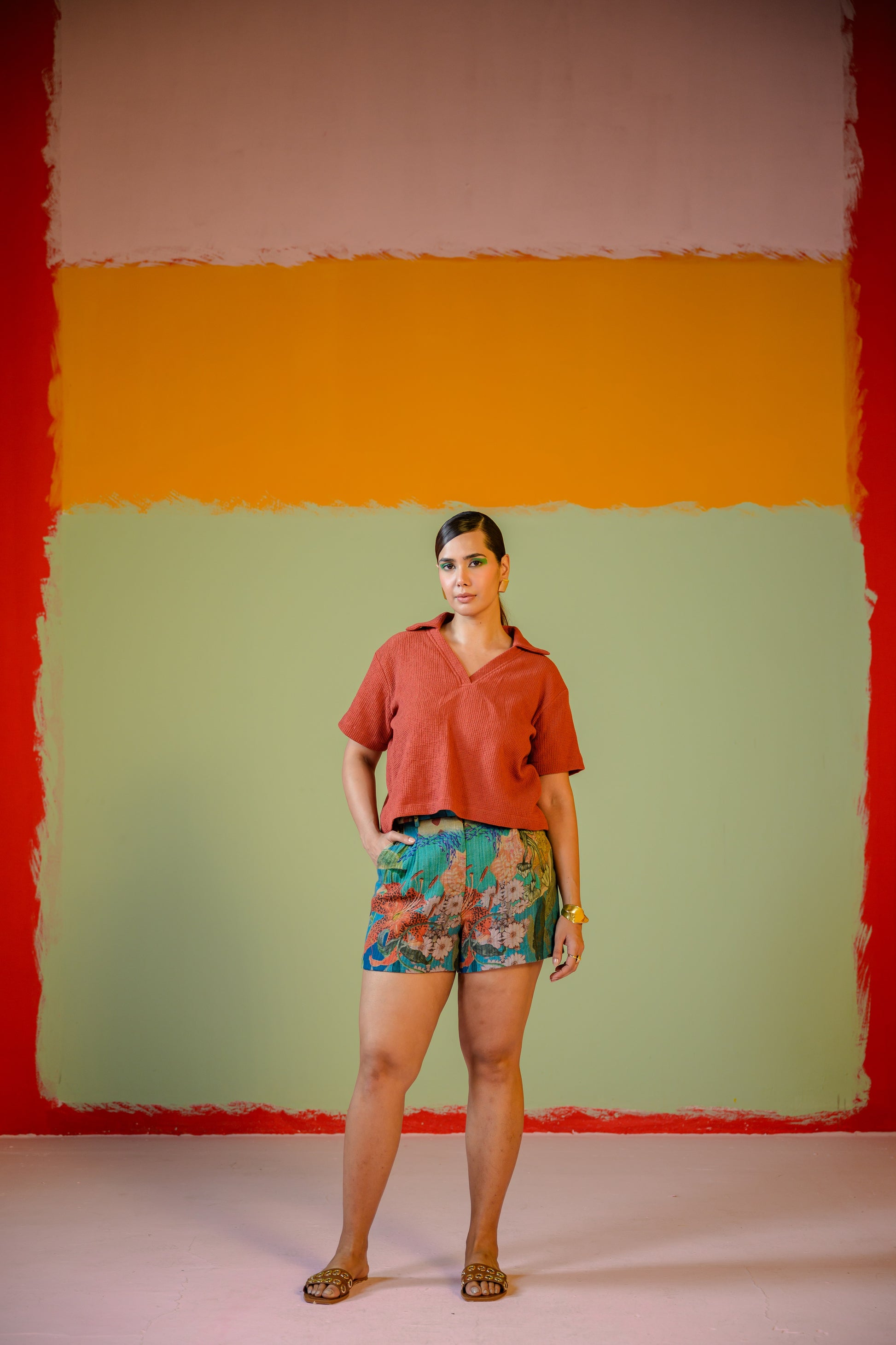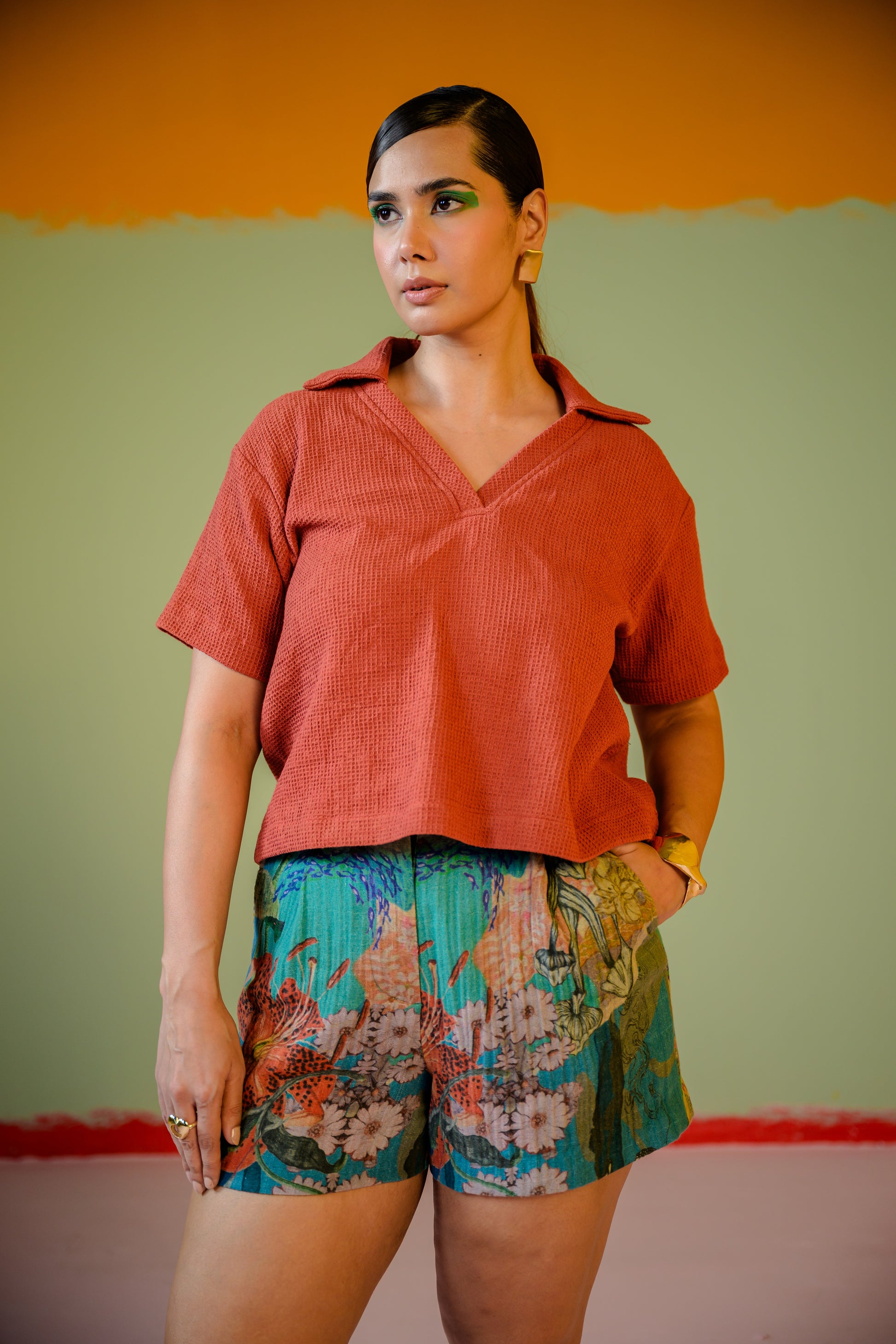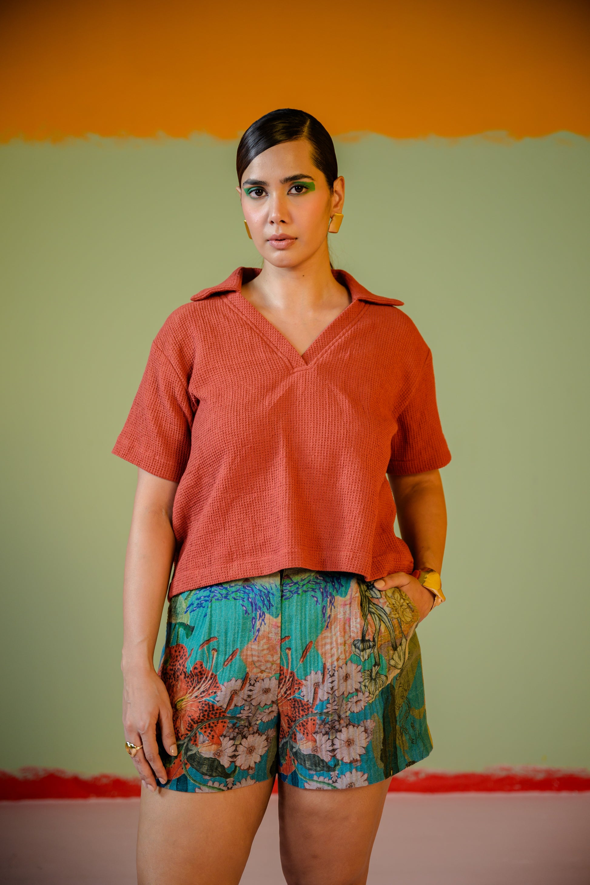 Orange Crop Tshirt Paired With Mavi Shorts Set