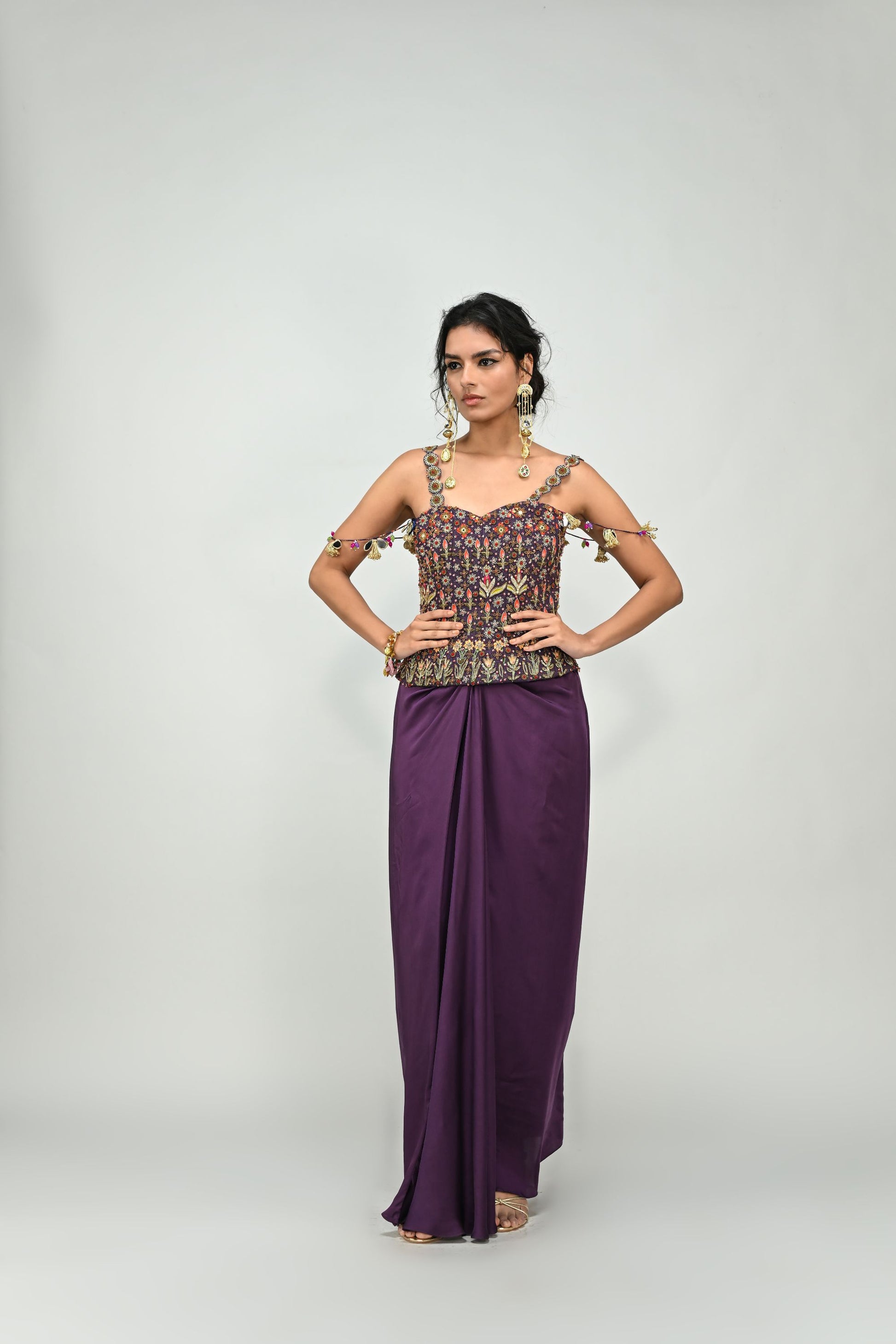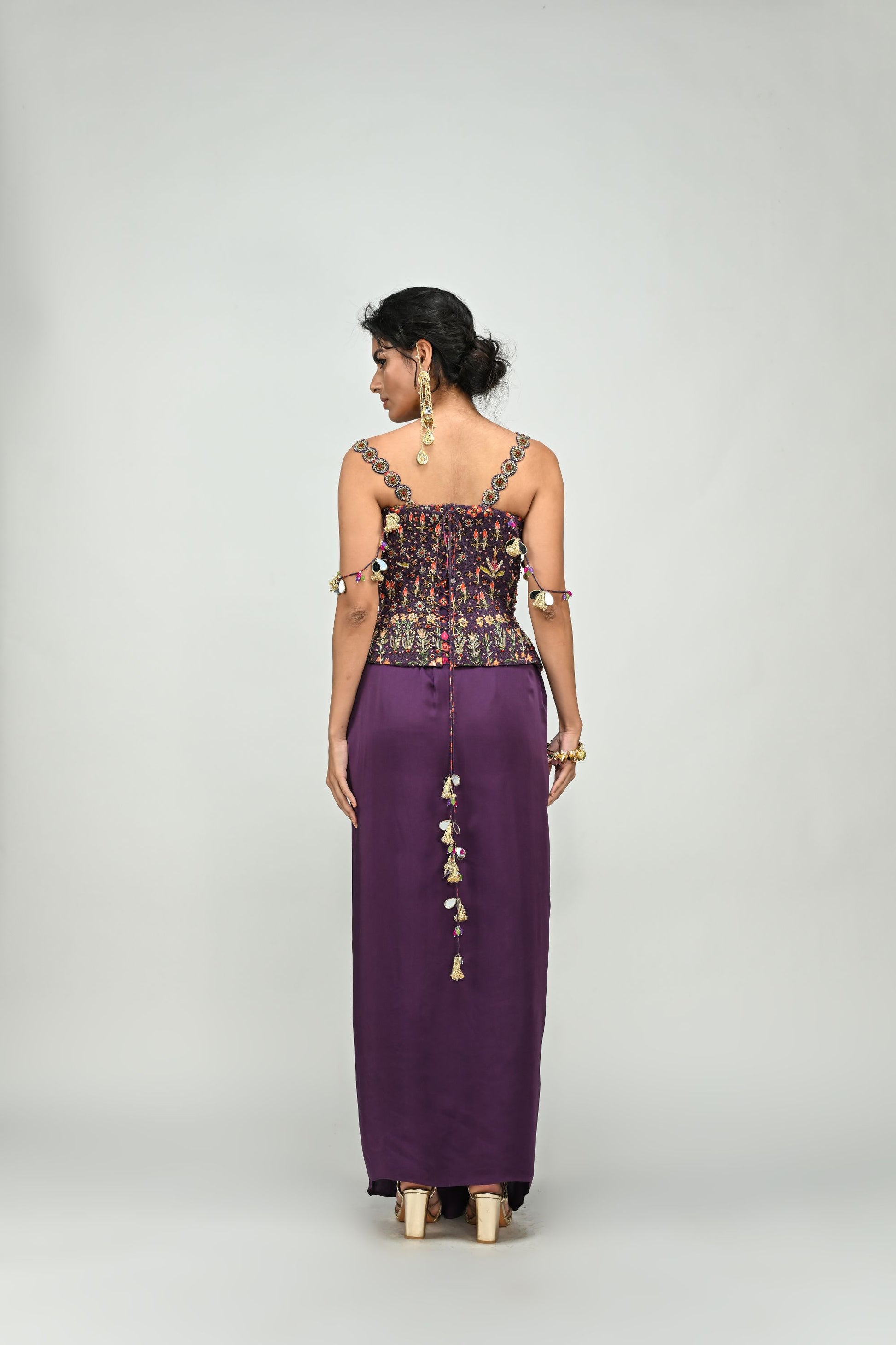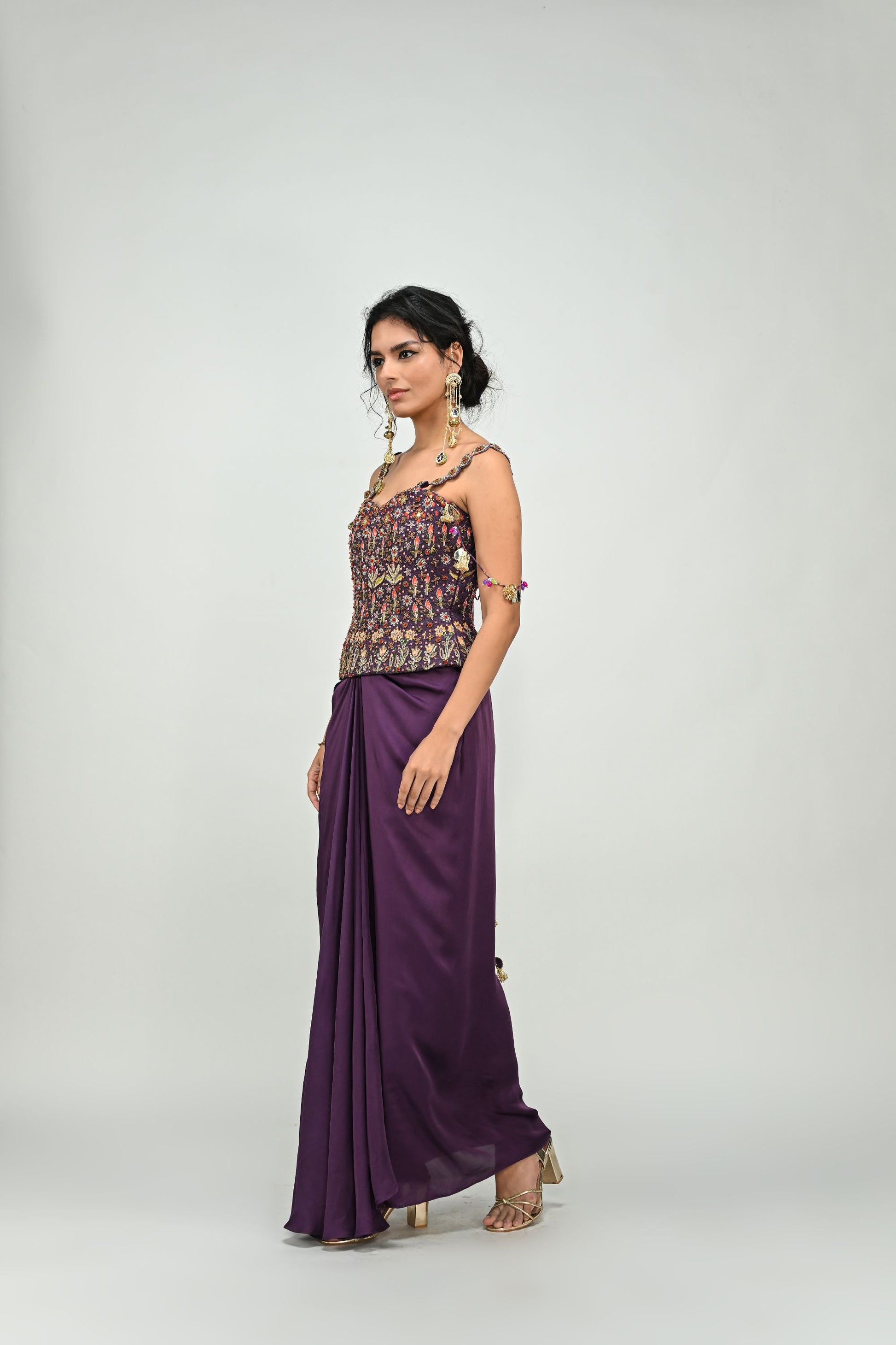 PLUM HIGHLIGHTED BBADLA CORSET SKIRT DHOTI SET