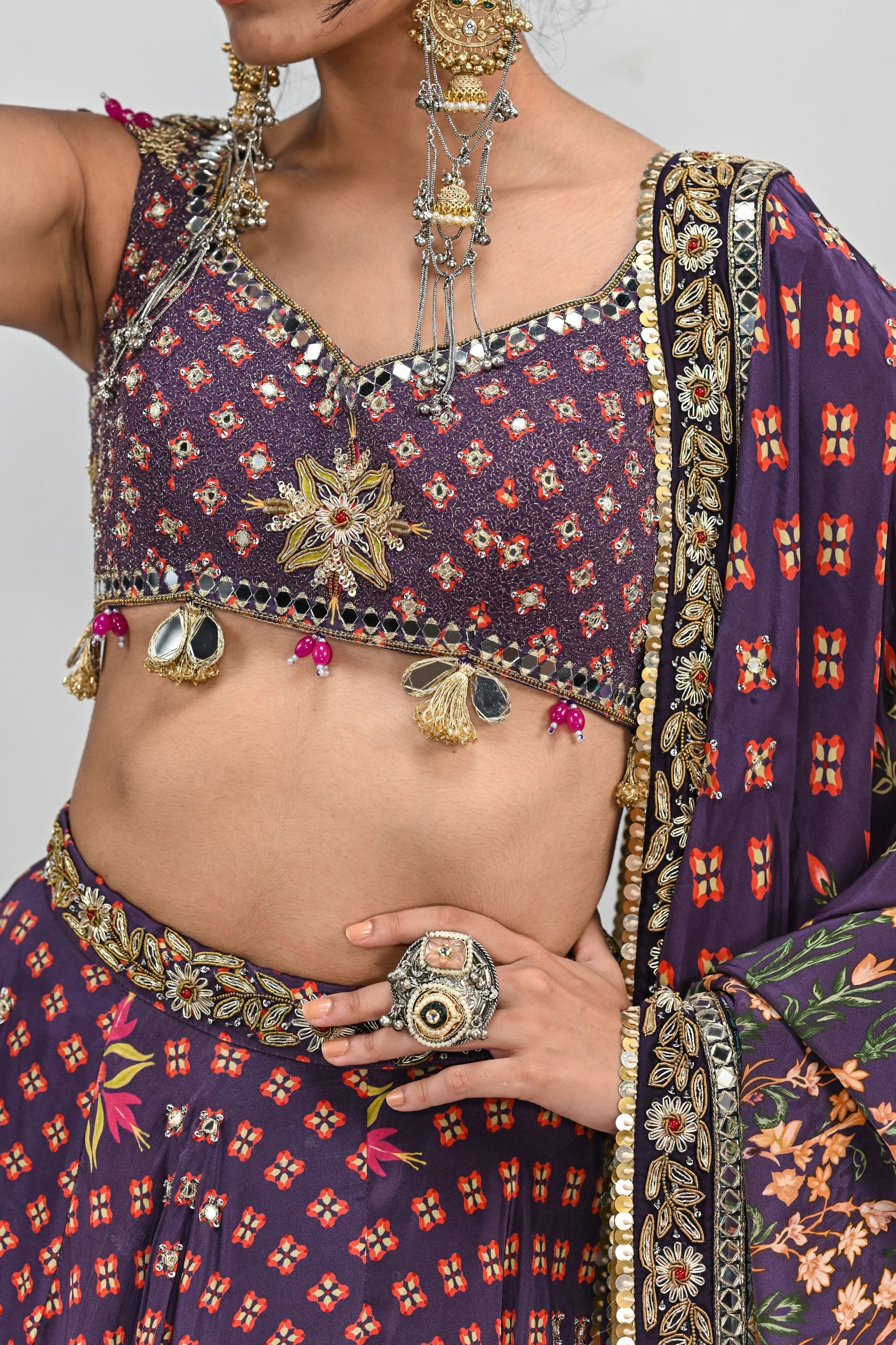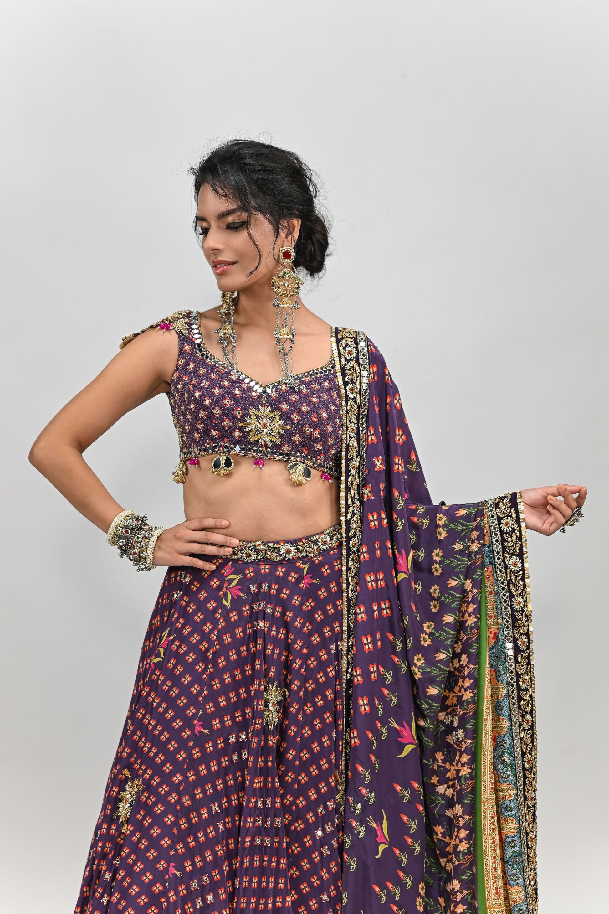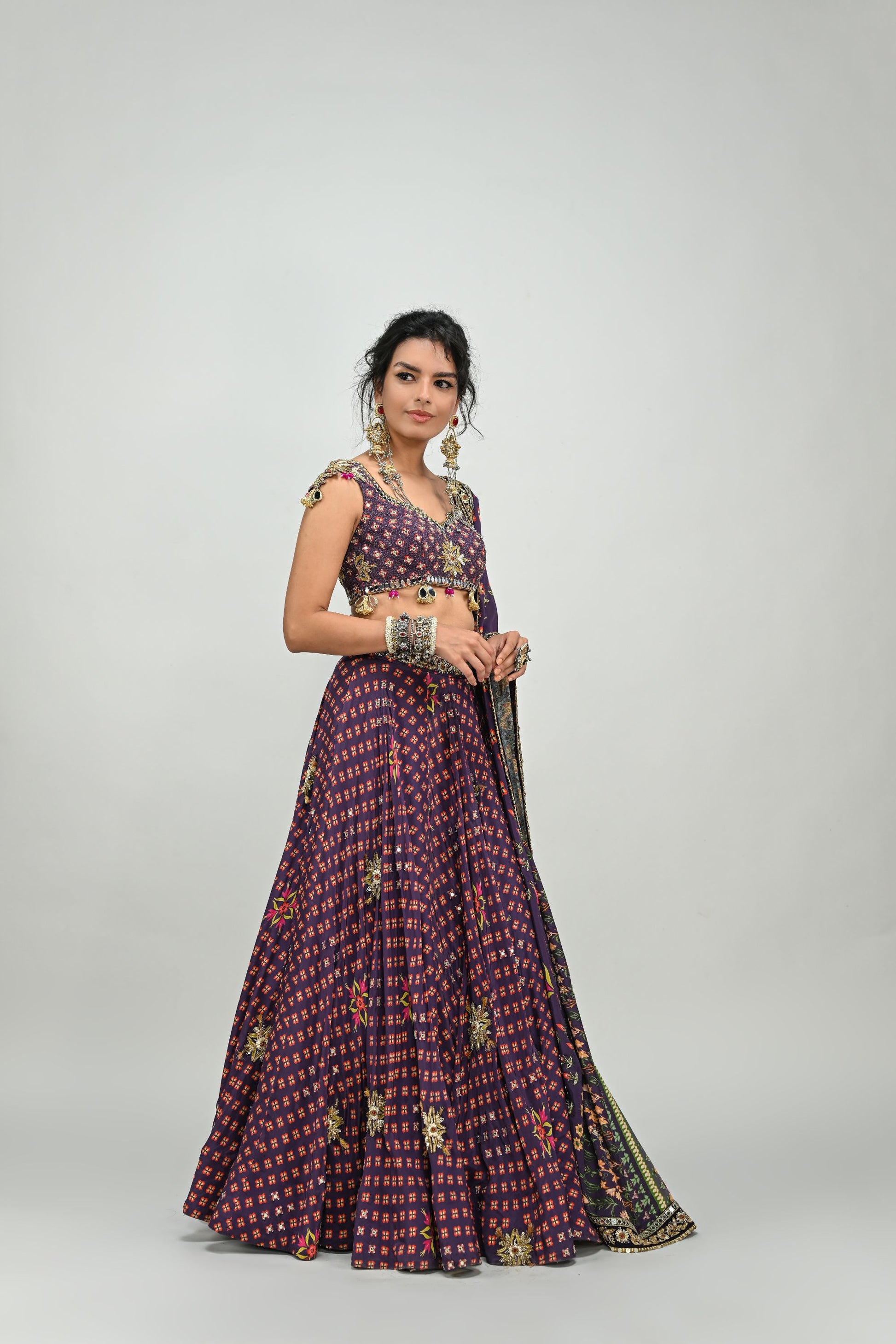 PLUM HIGHLIGHTED LEHENGA PAIRED WITH PLUM BADLA BLOUSE AND HIGHLIGHTED DUPATTA