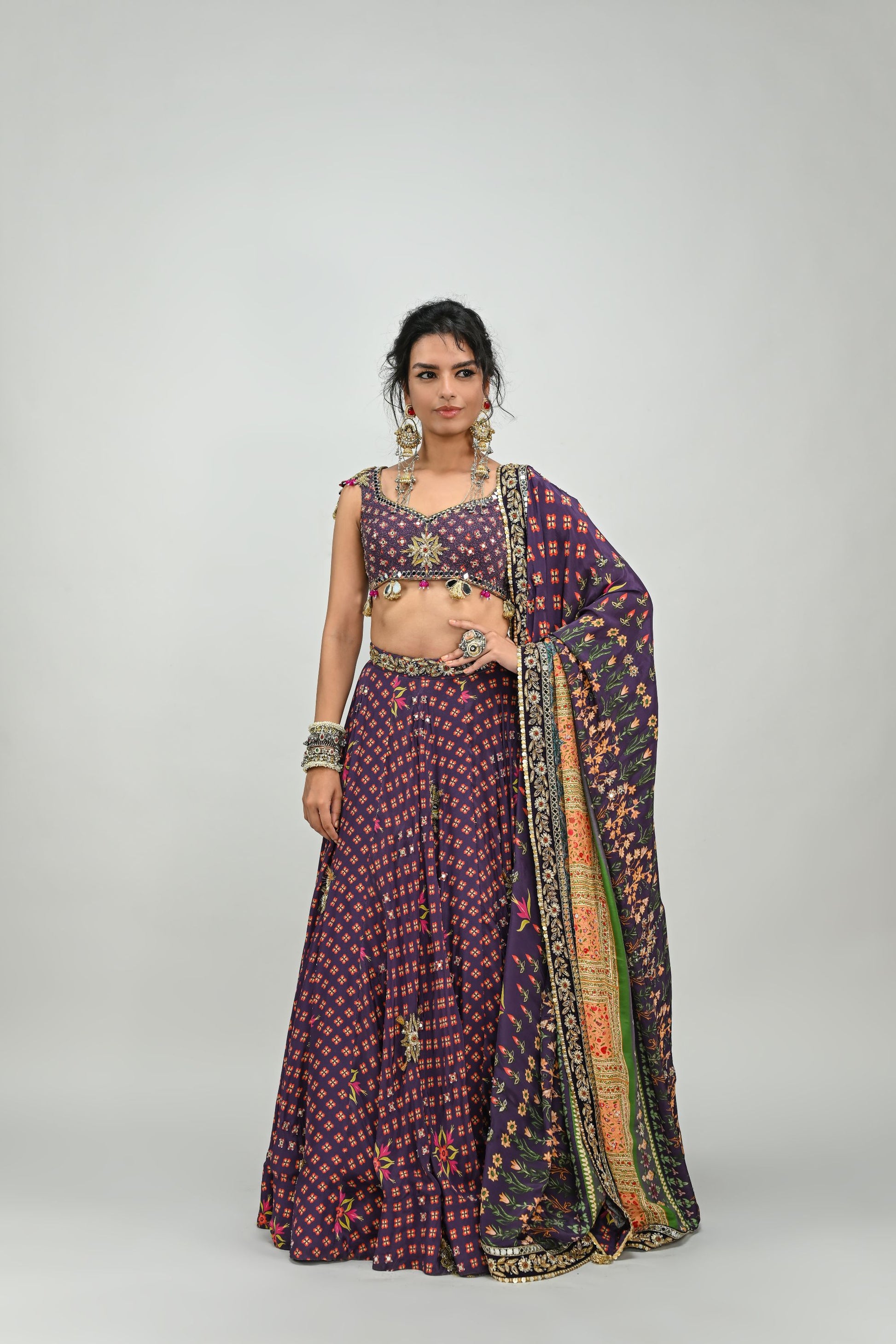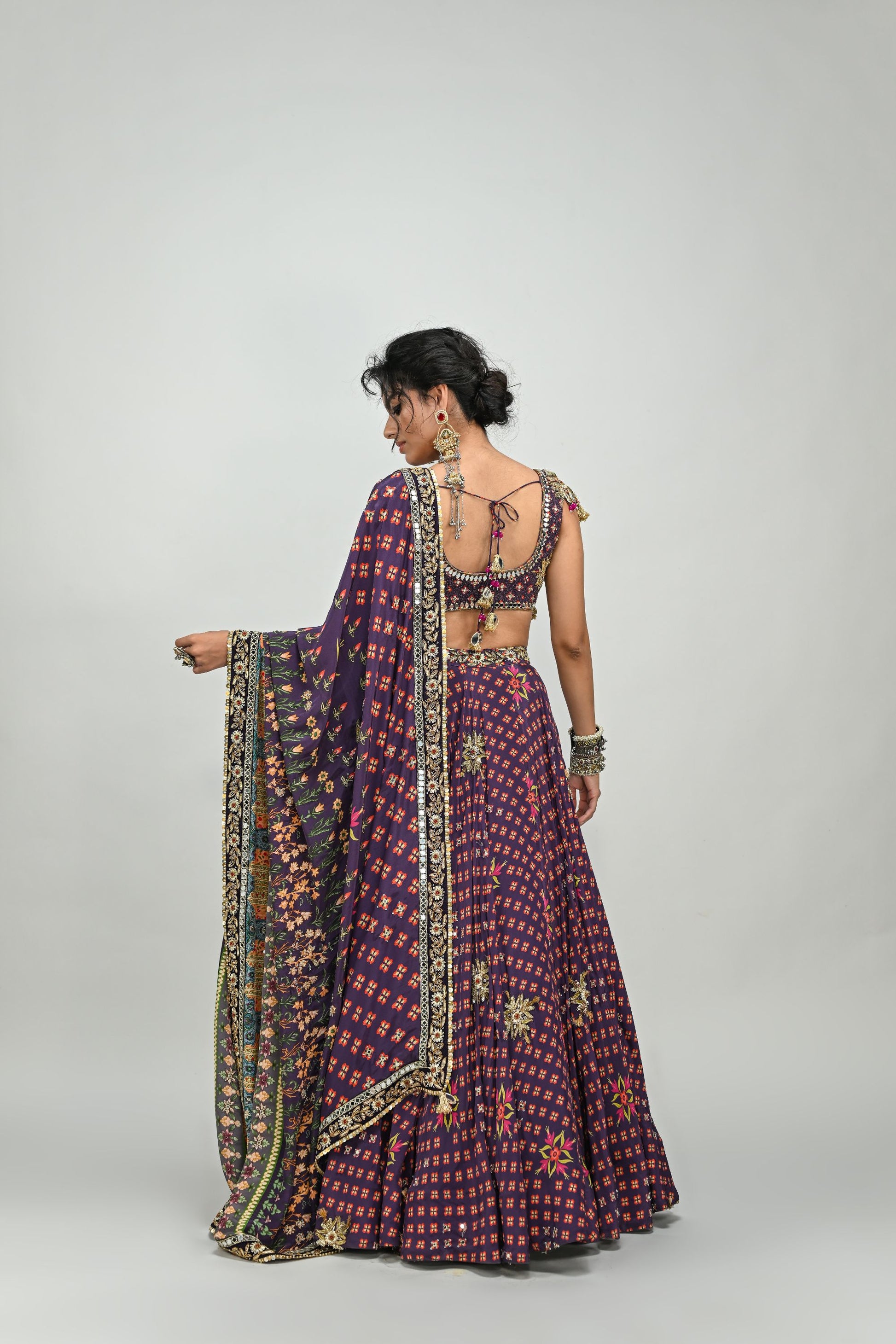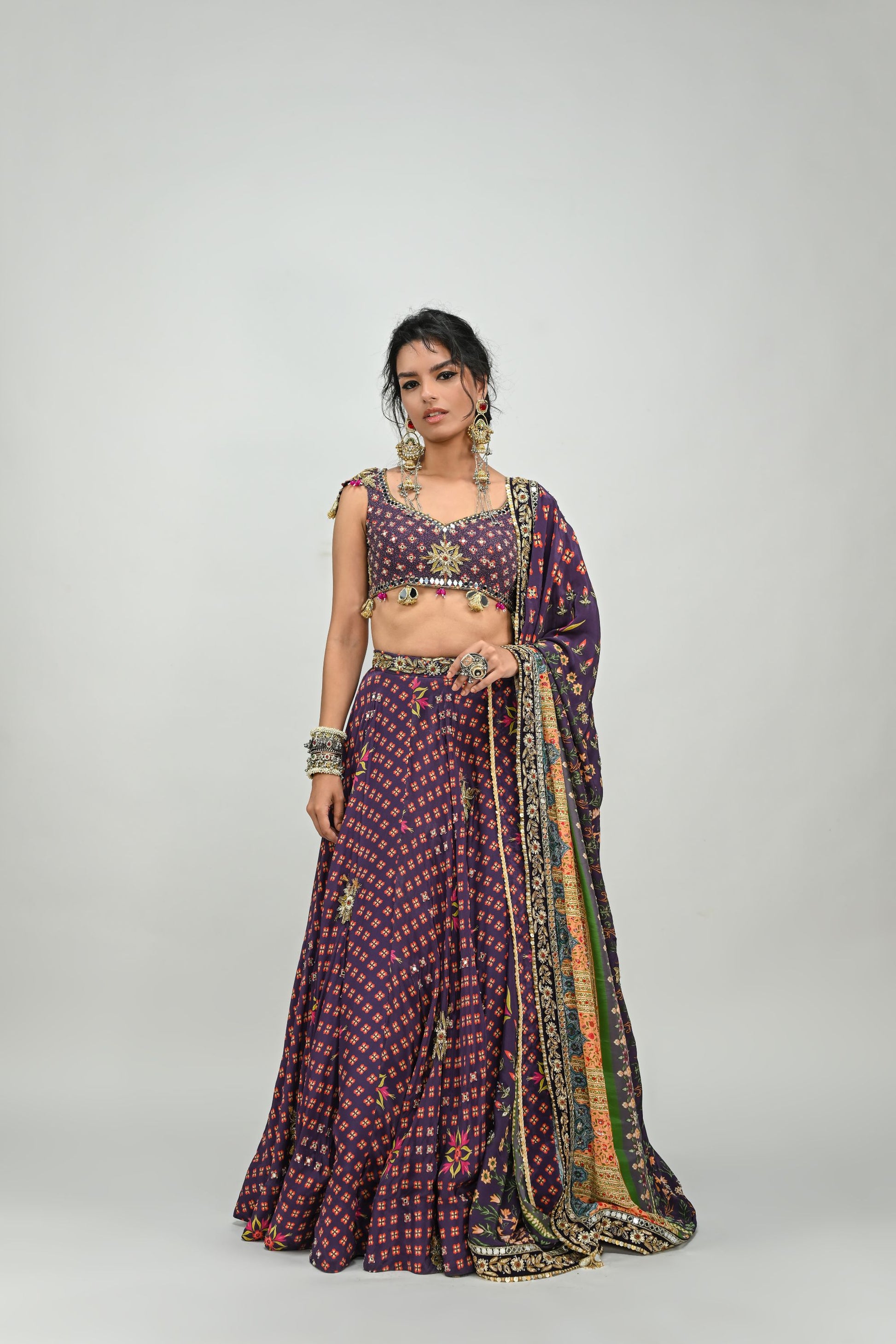 PLUM HIGHLIGHTED LEHENGA PAIRED WITH PLUM BADLA BLOUSE AND HIGHLIGHTED DUPATTA