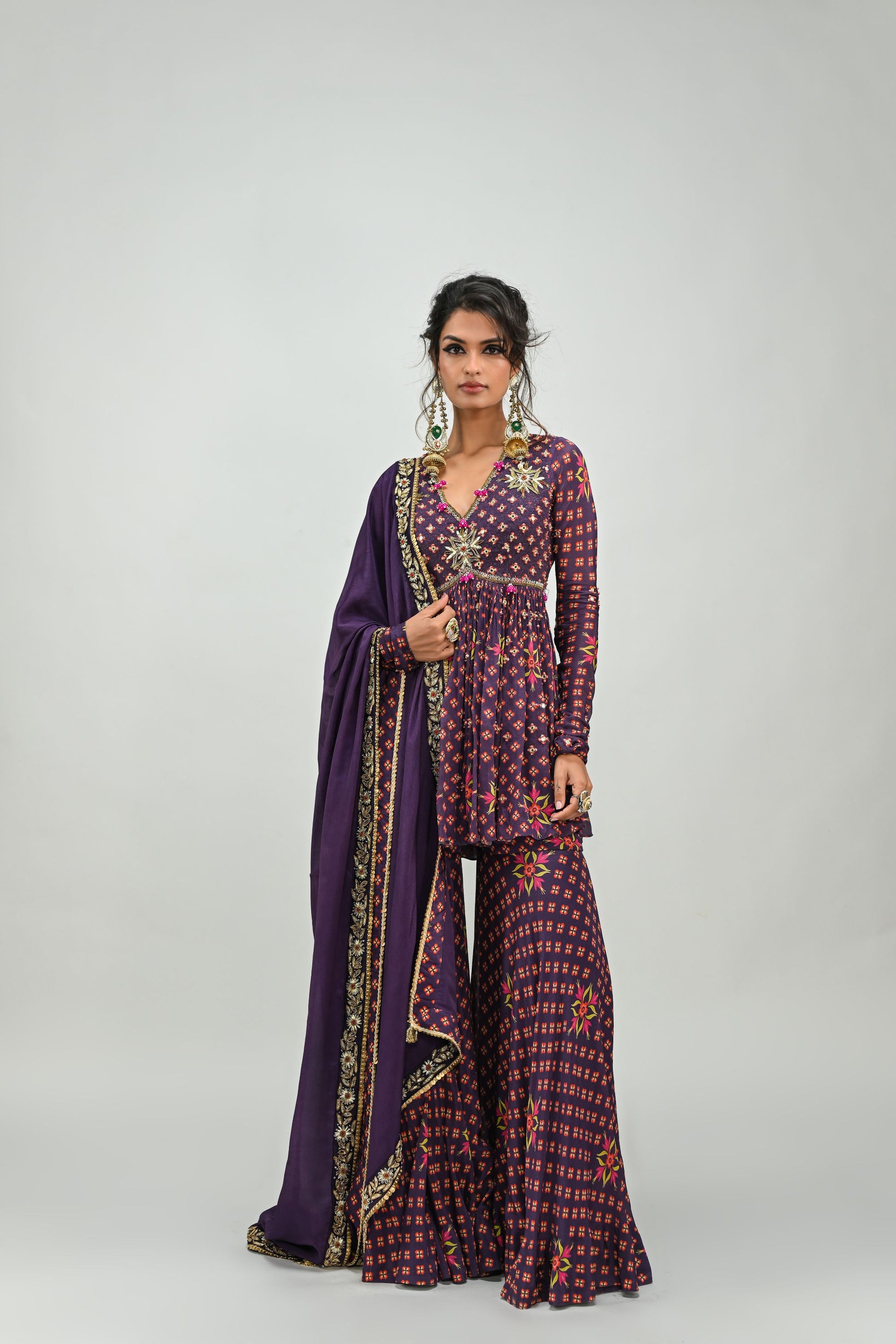 PLUM HIGHLIGHTED SHARARA SET WITH DUPATTA