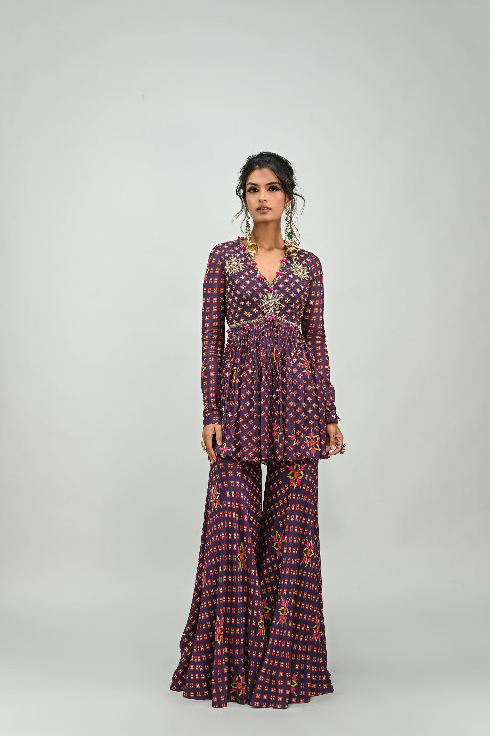 PLUM HIGHLIGHTED SHARARA TOP SET