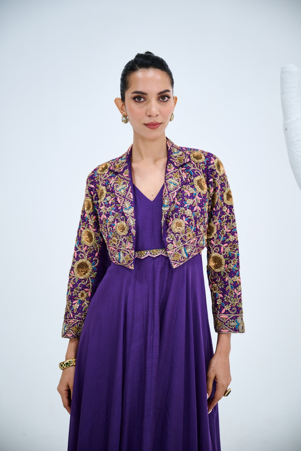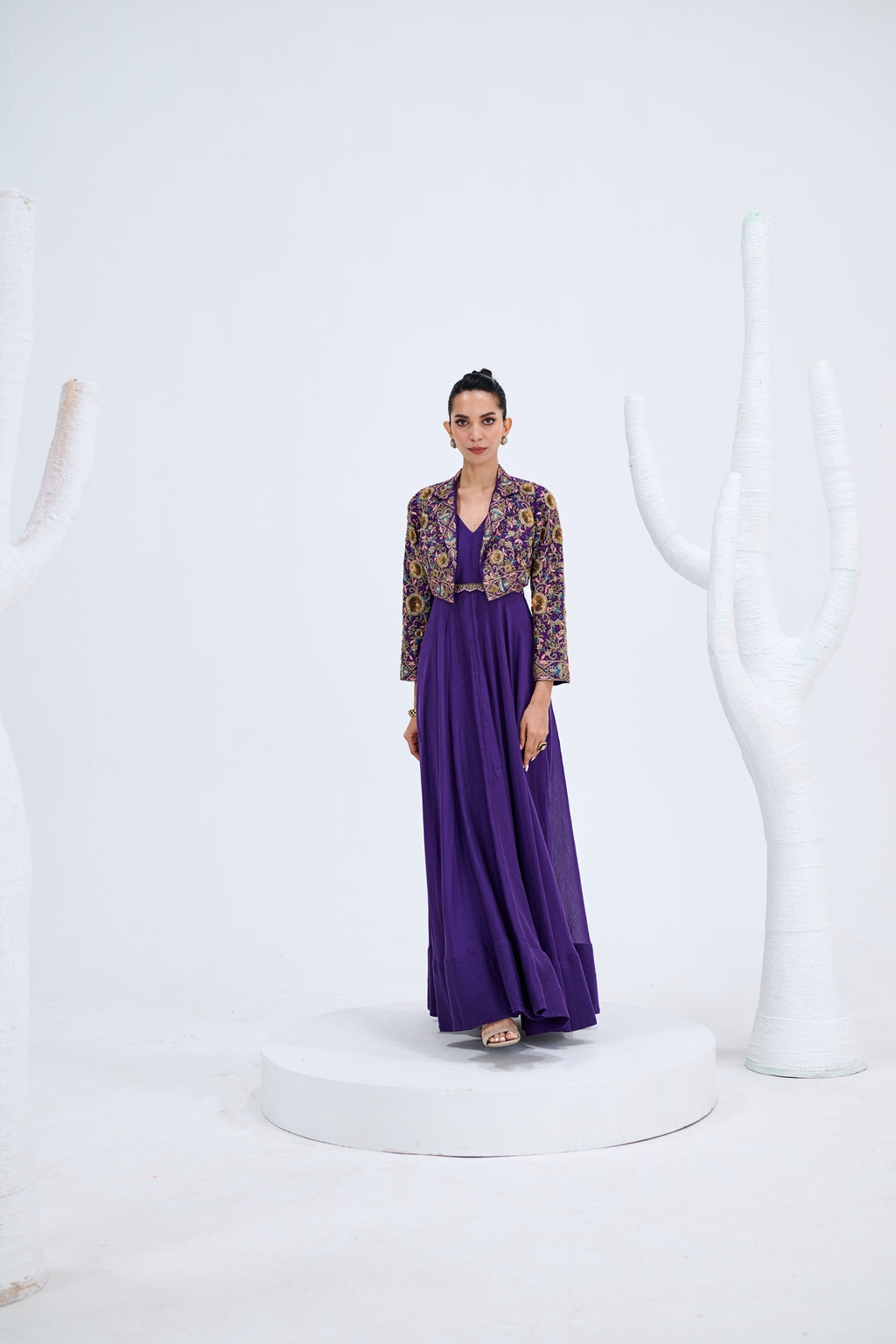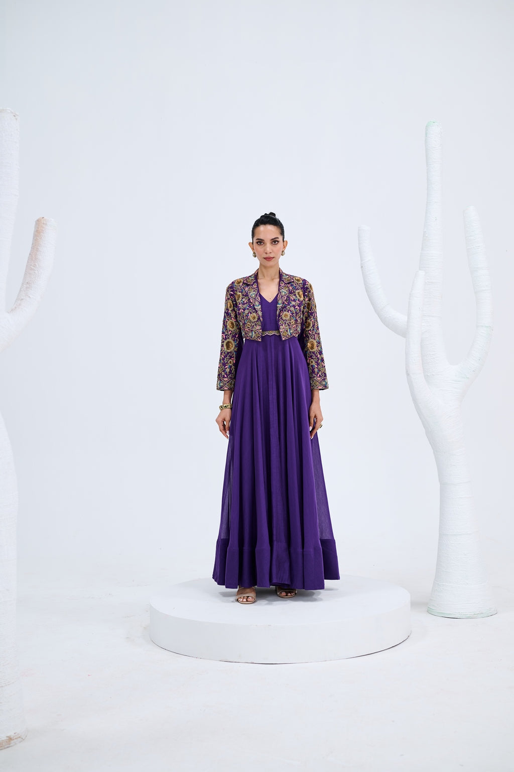 PURPLE GOWN WITH EMBROIDERED JACKET SET