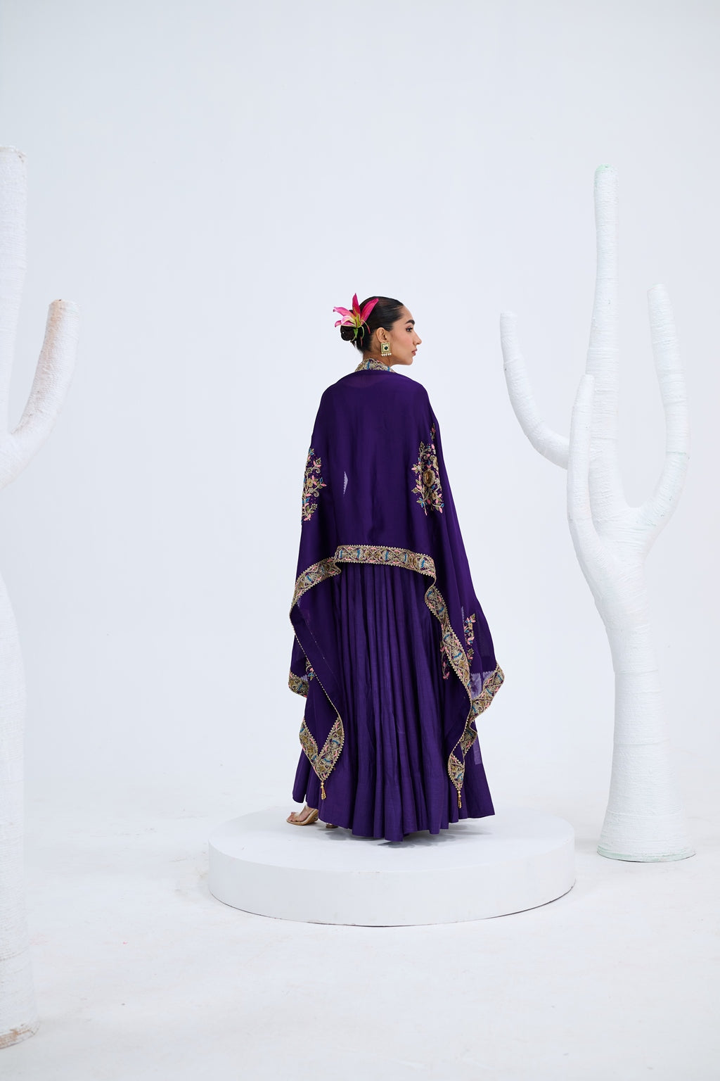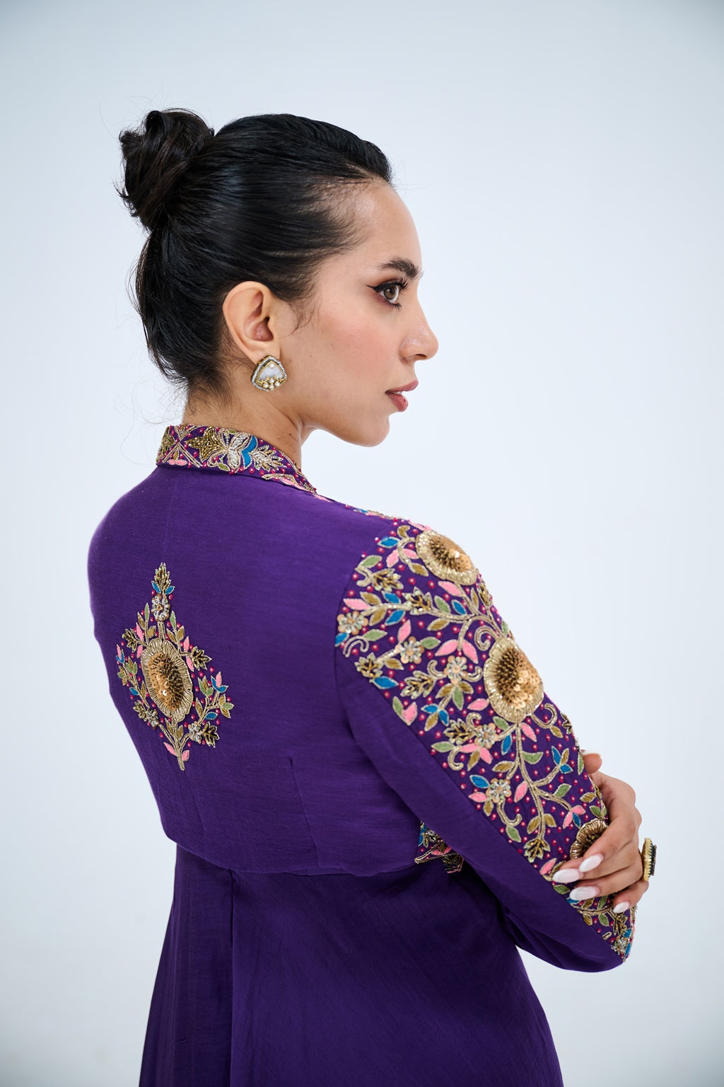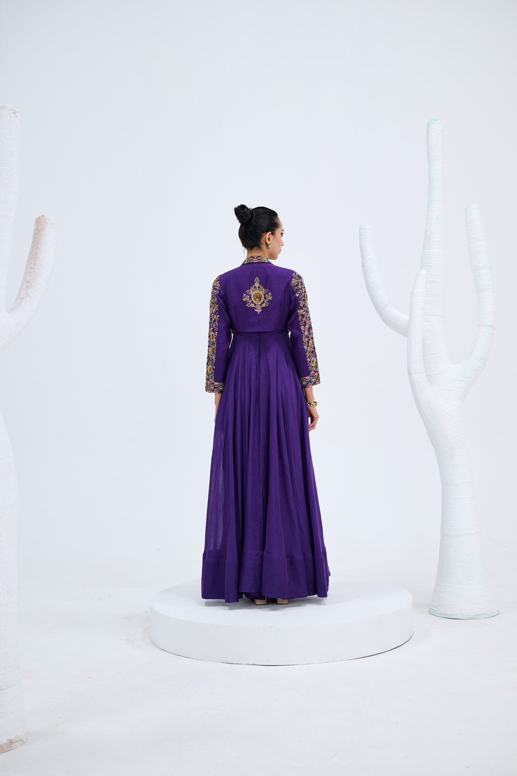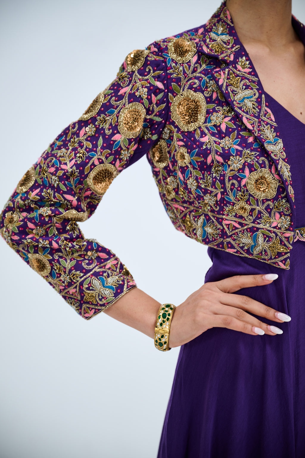 PURPLE GOWN WITH EMBROIDERED JACKET SET
