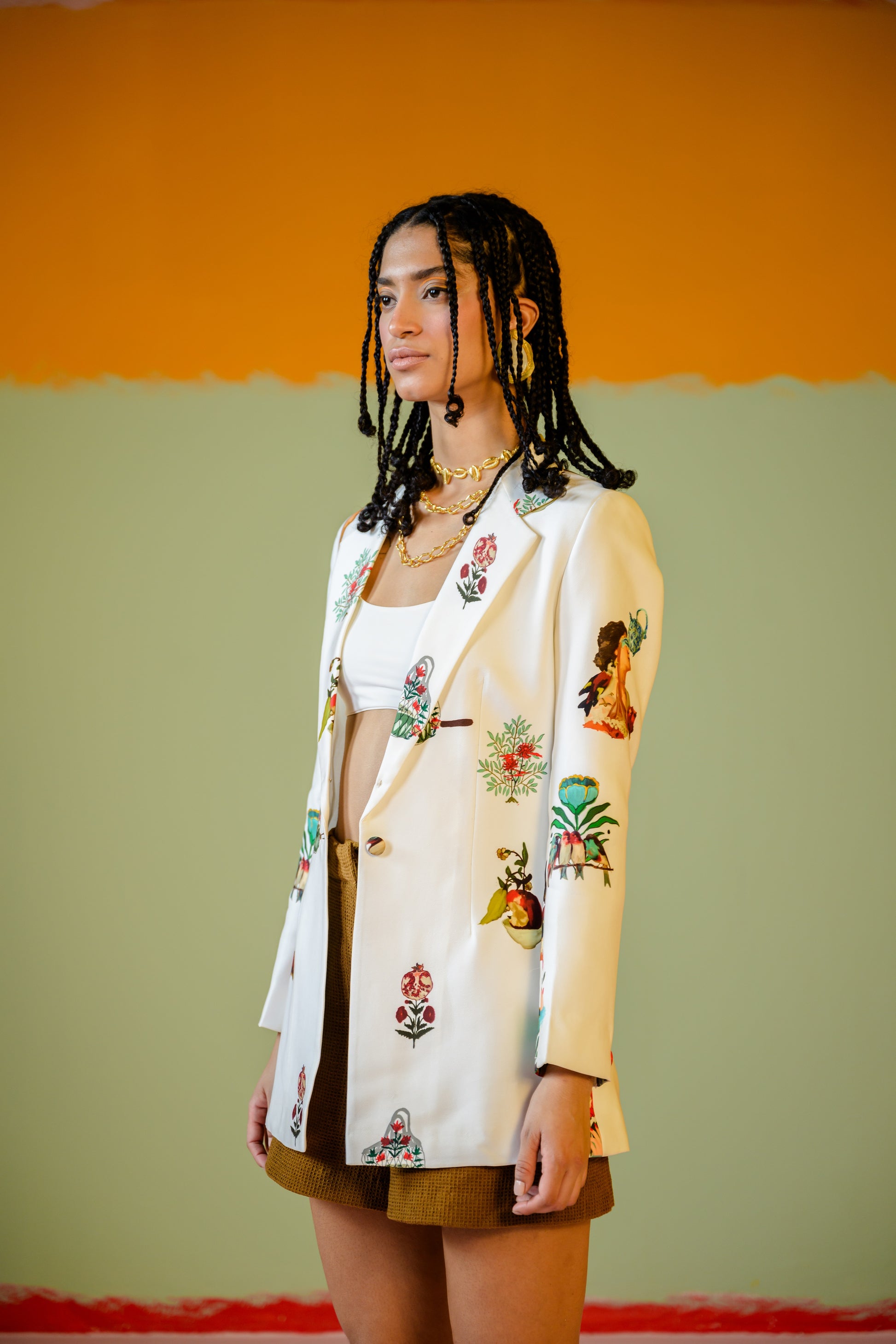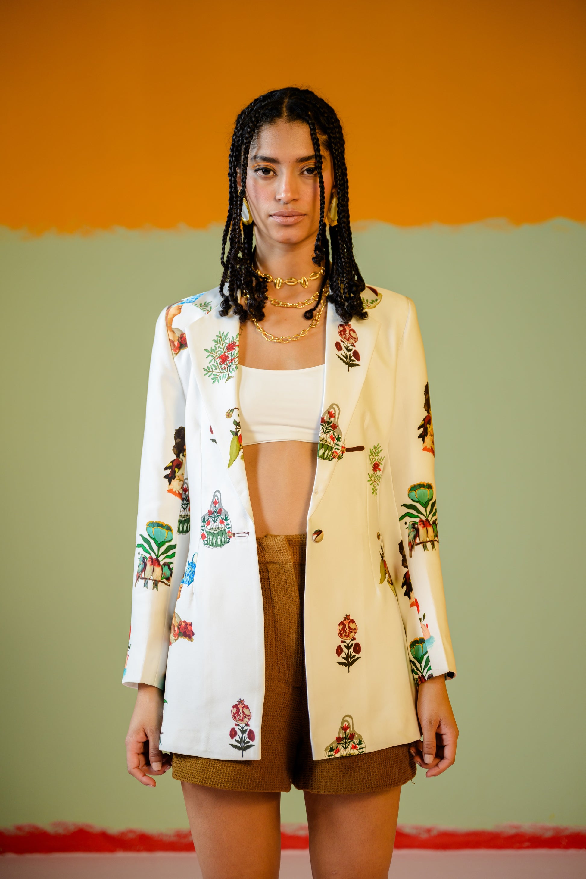 Rani Blazer Bralette And Brown Shorts Set