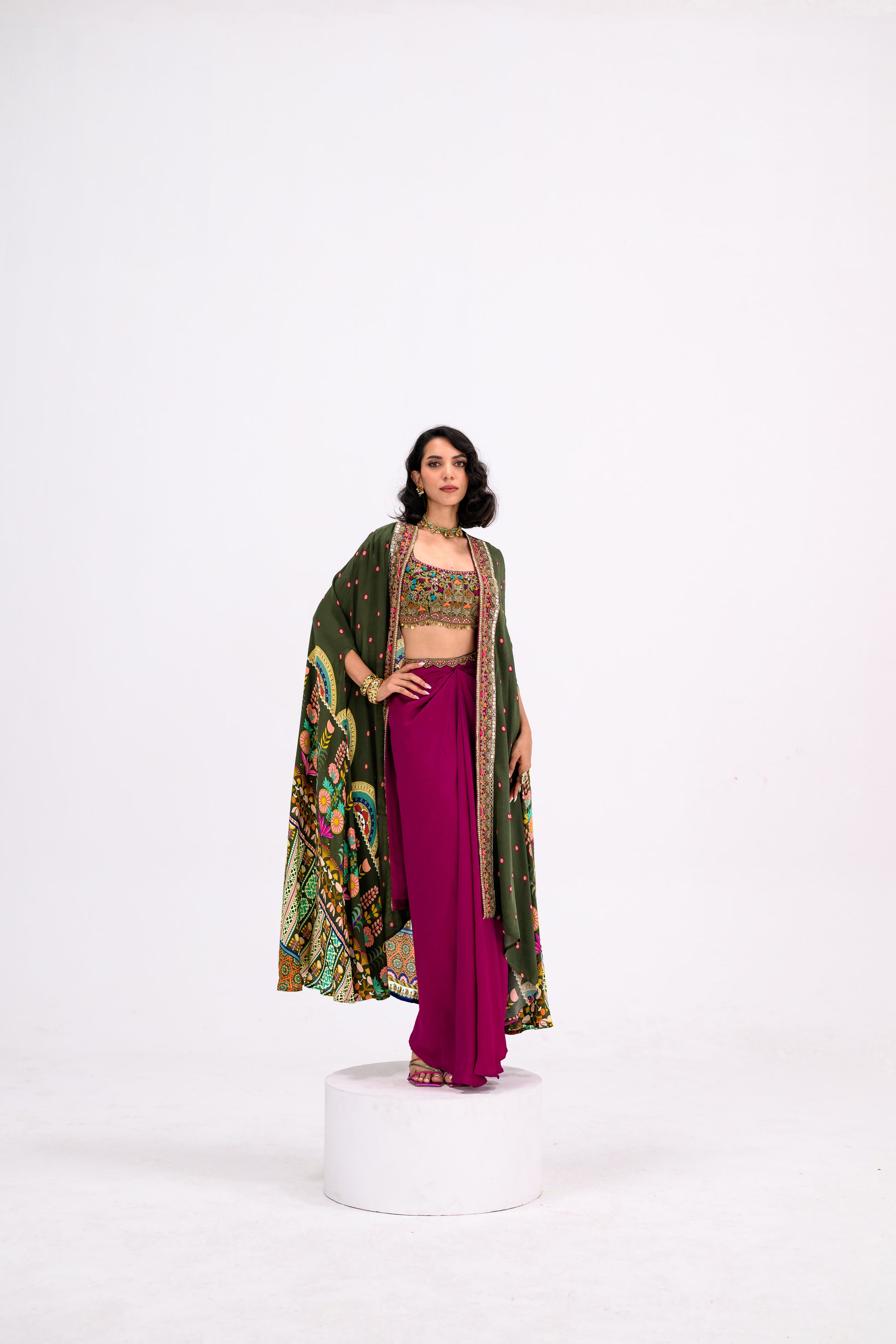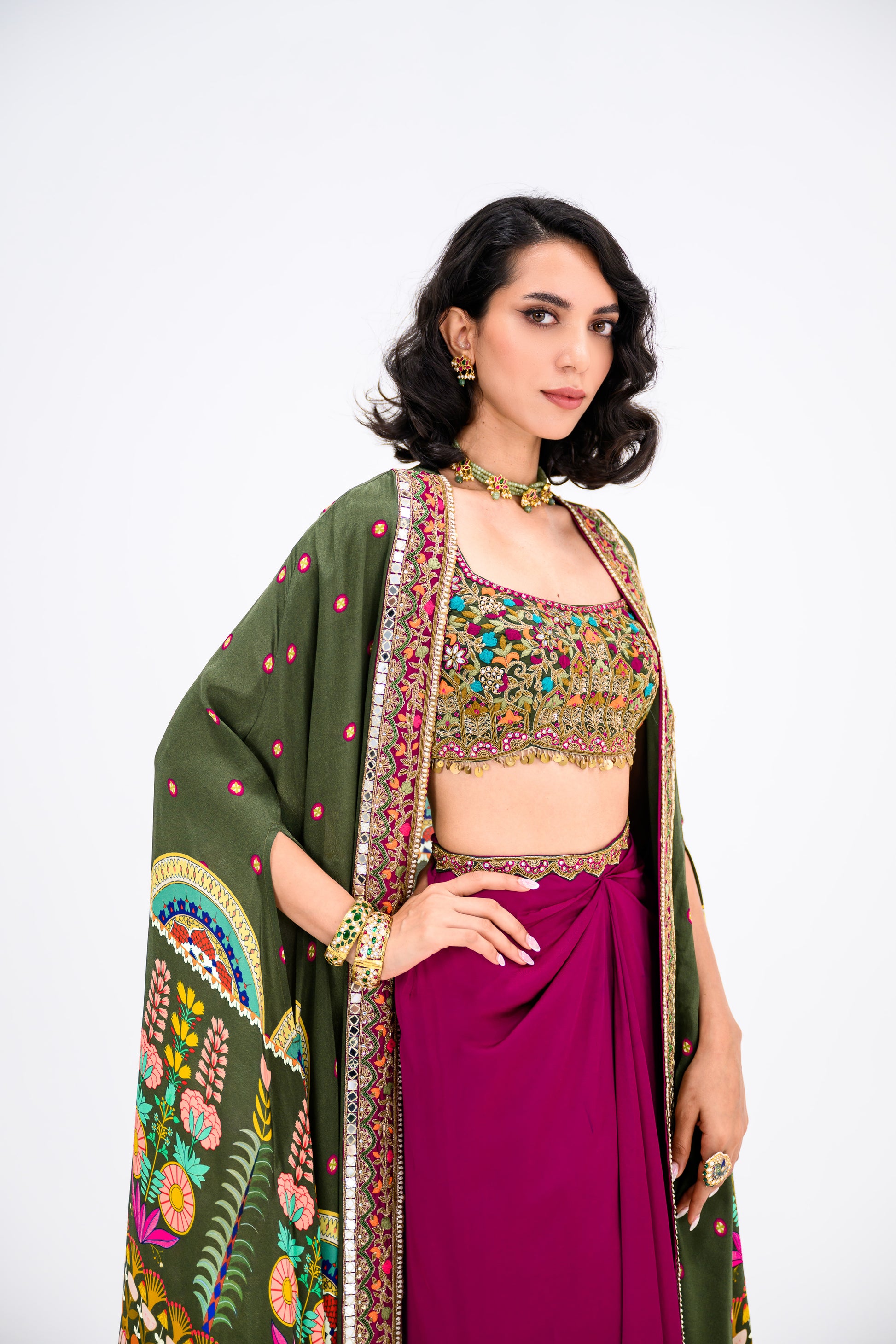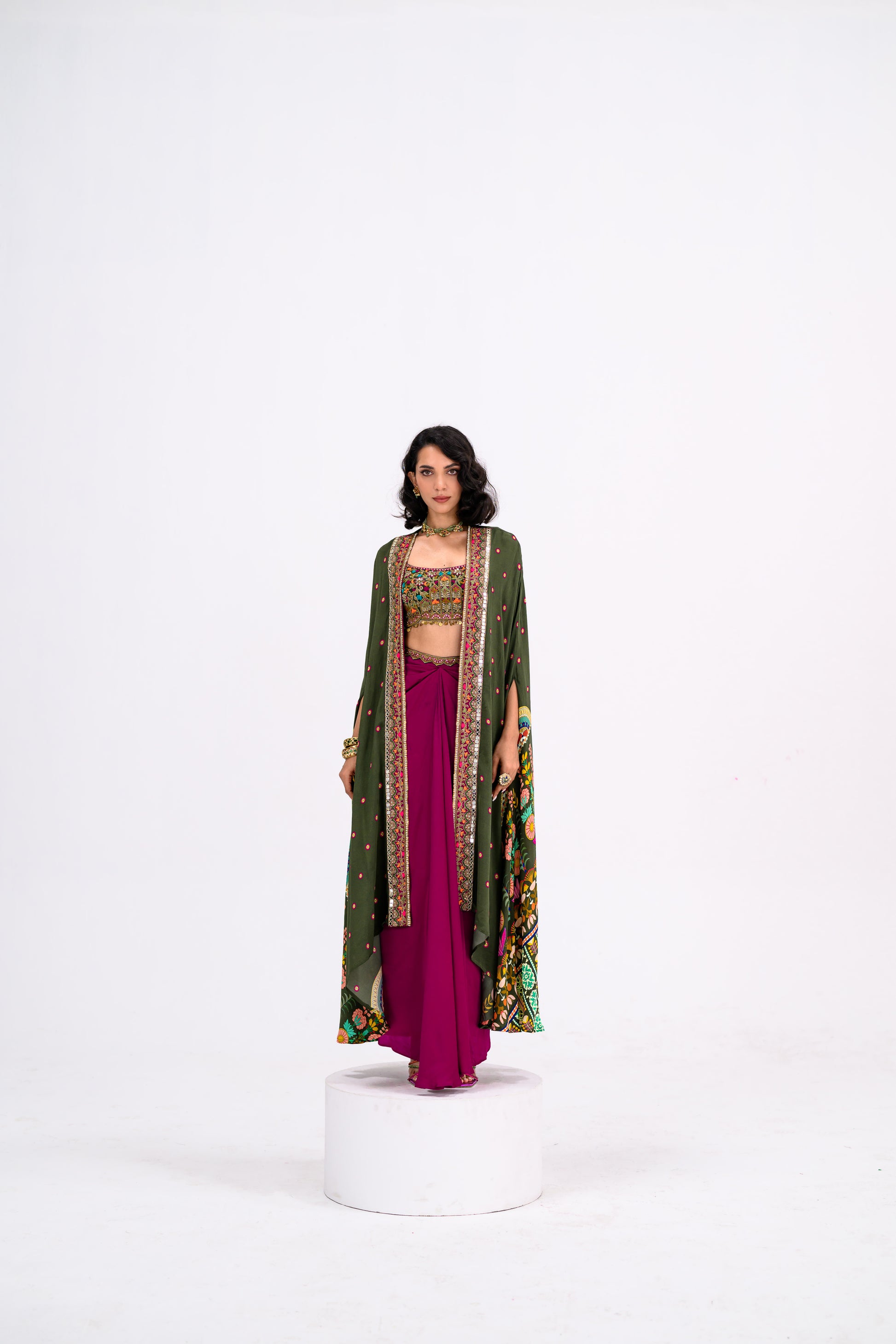 Rani Dhoti Set Paired Embroidered Barlette And Cape