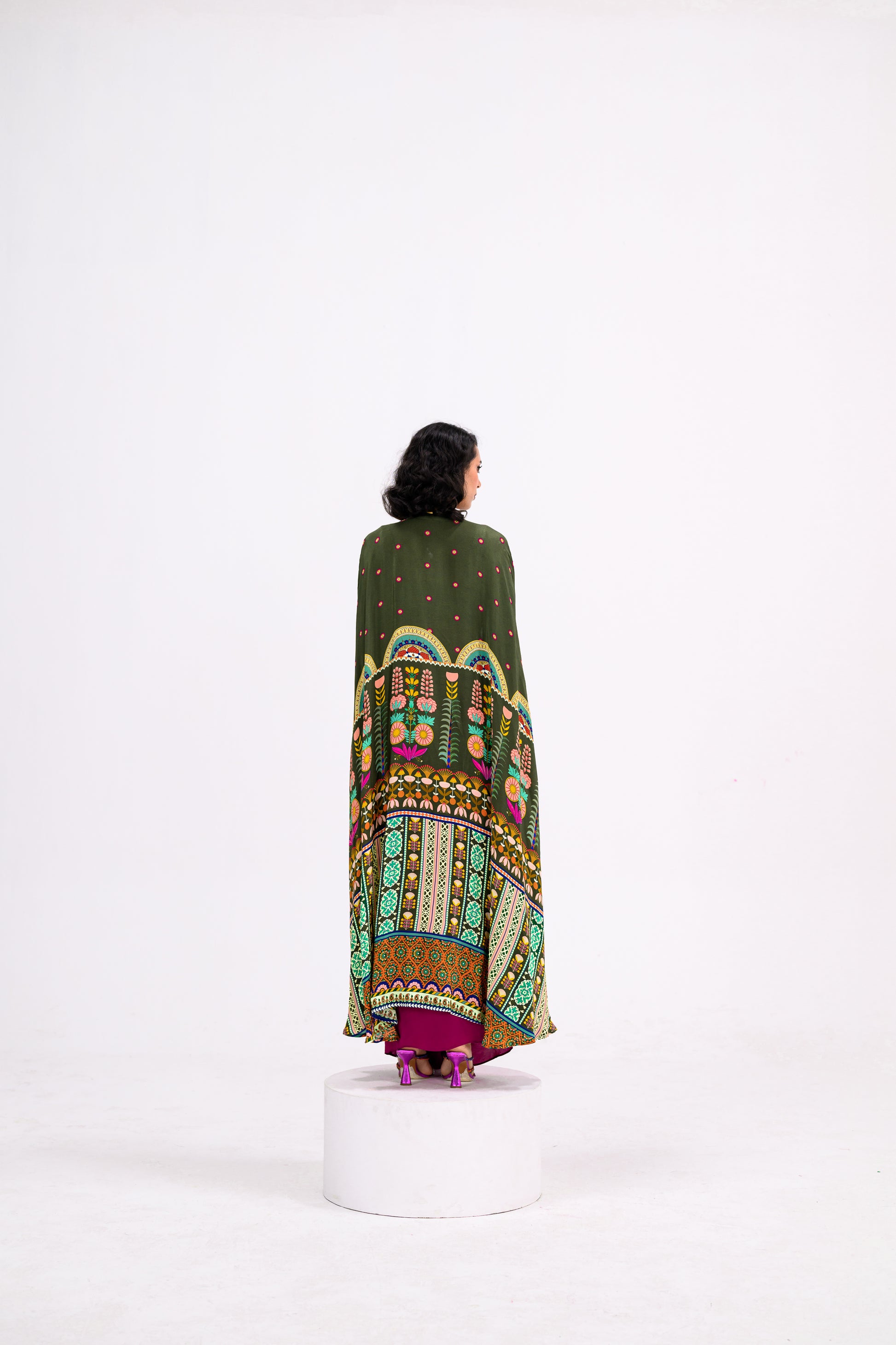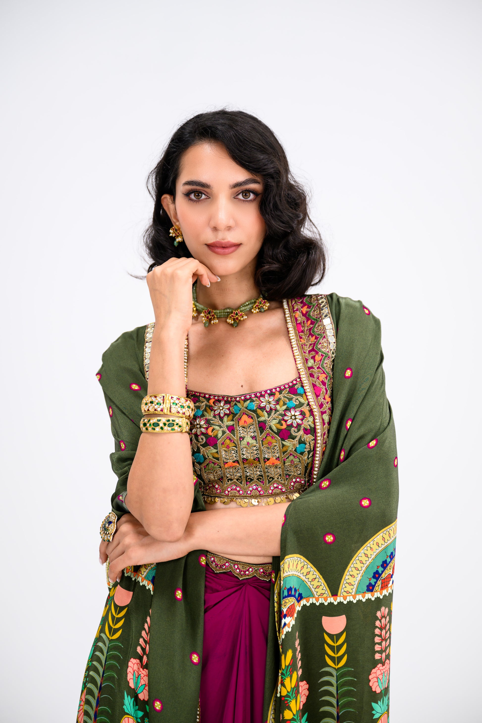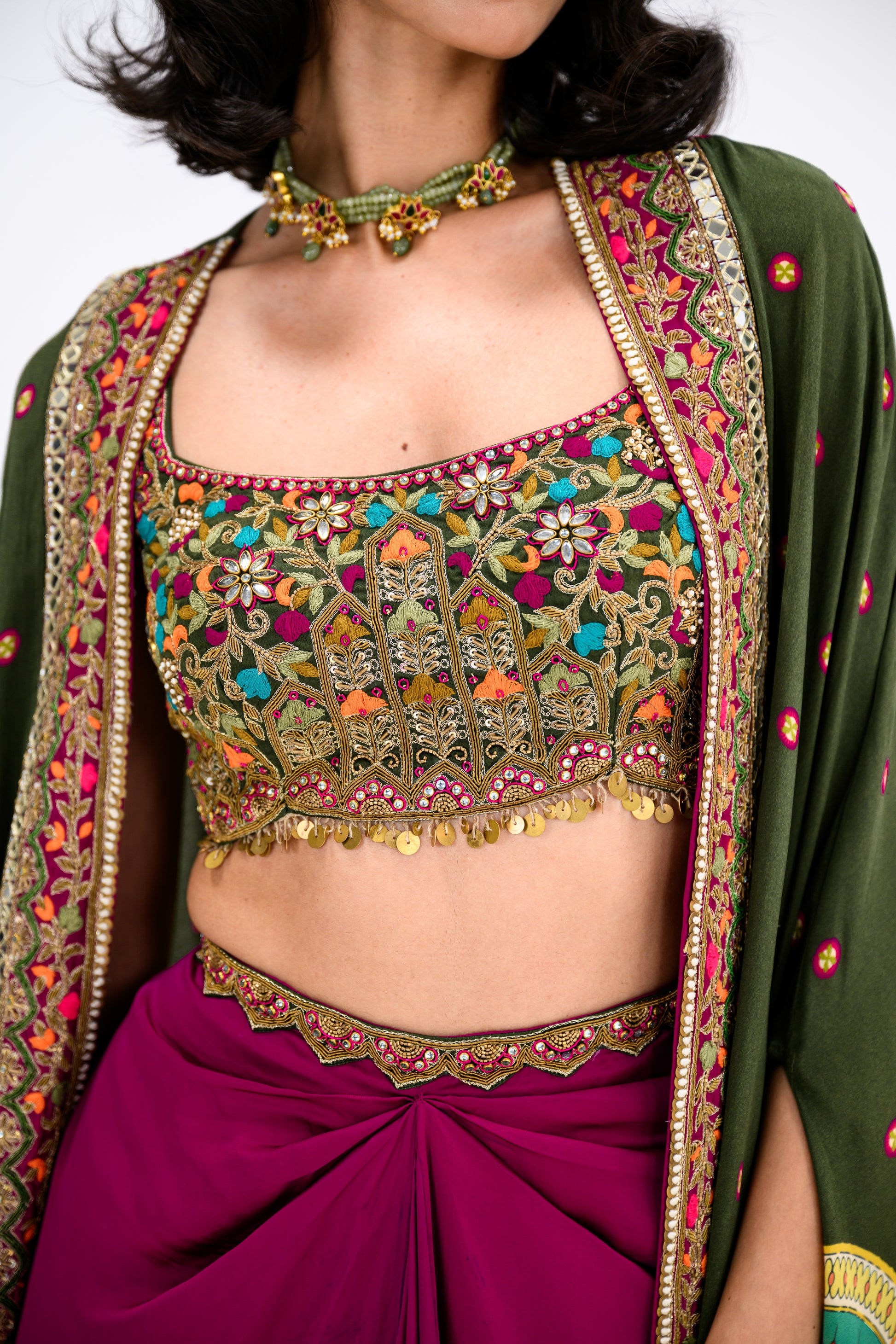 Rani Dhoti Set Paired Embroidered Barlette And Cape