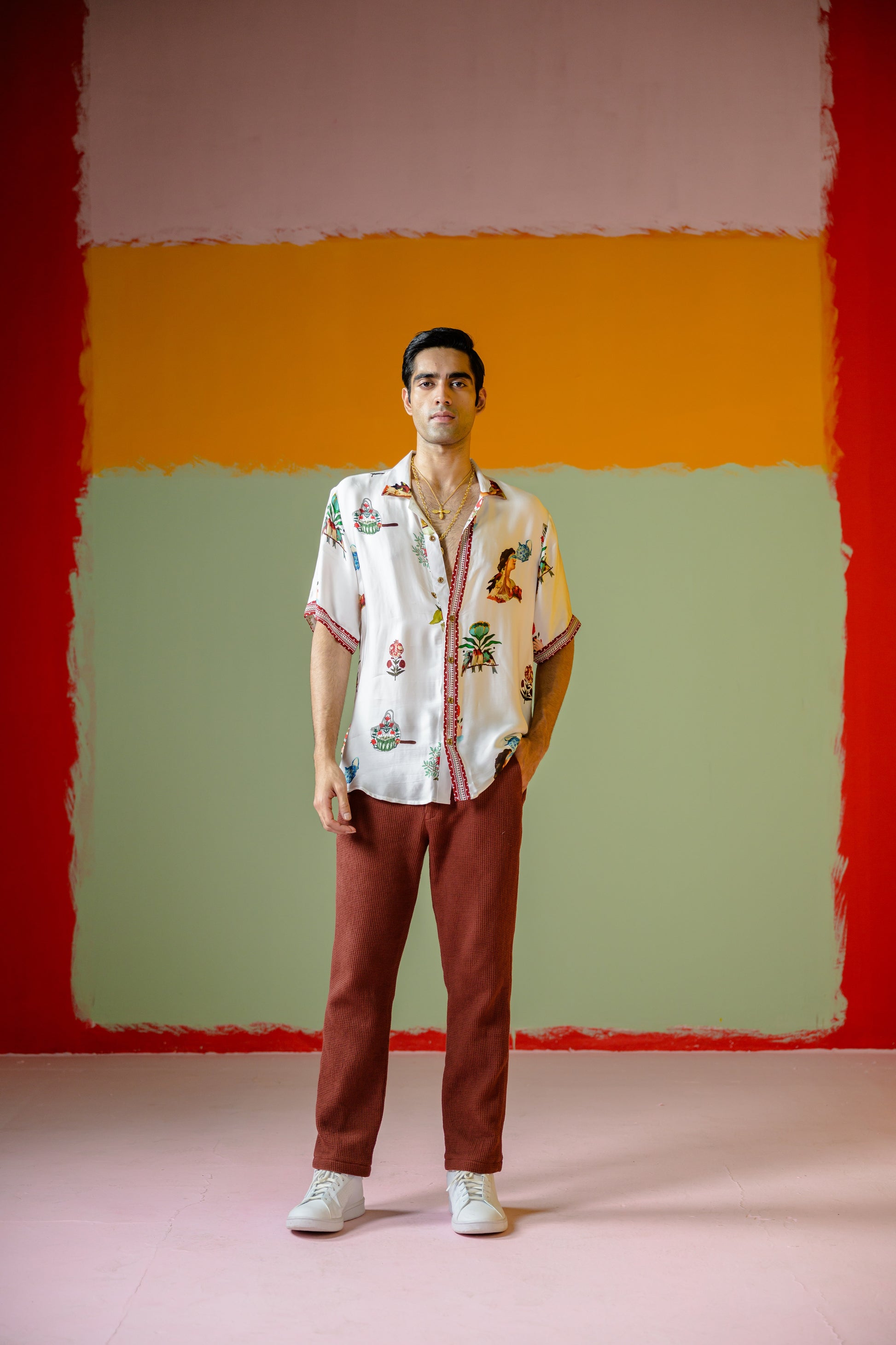 Rani Half Sleeve Shirt Paired With Brown Pants Set