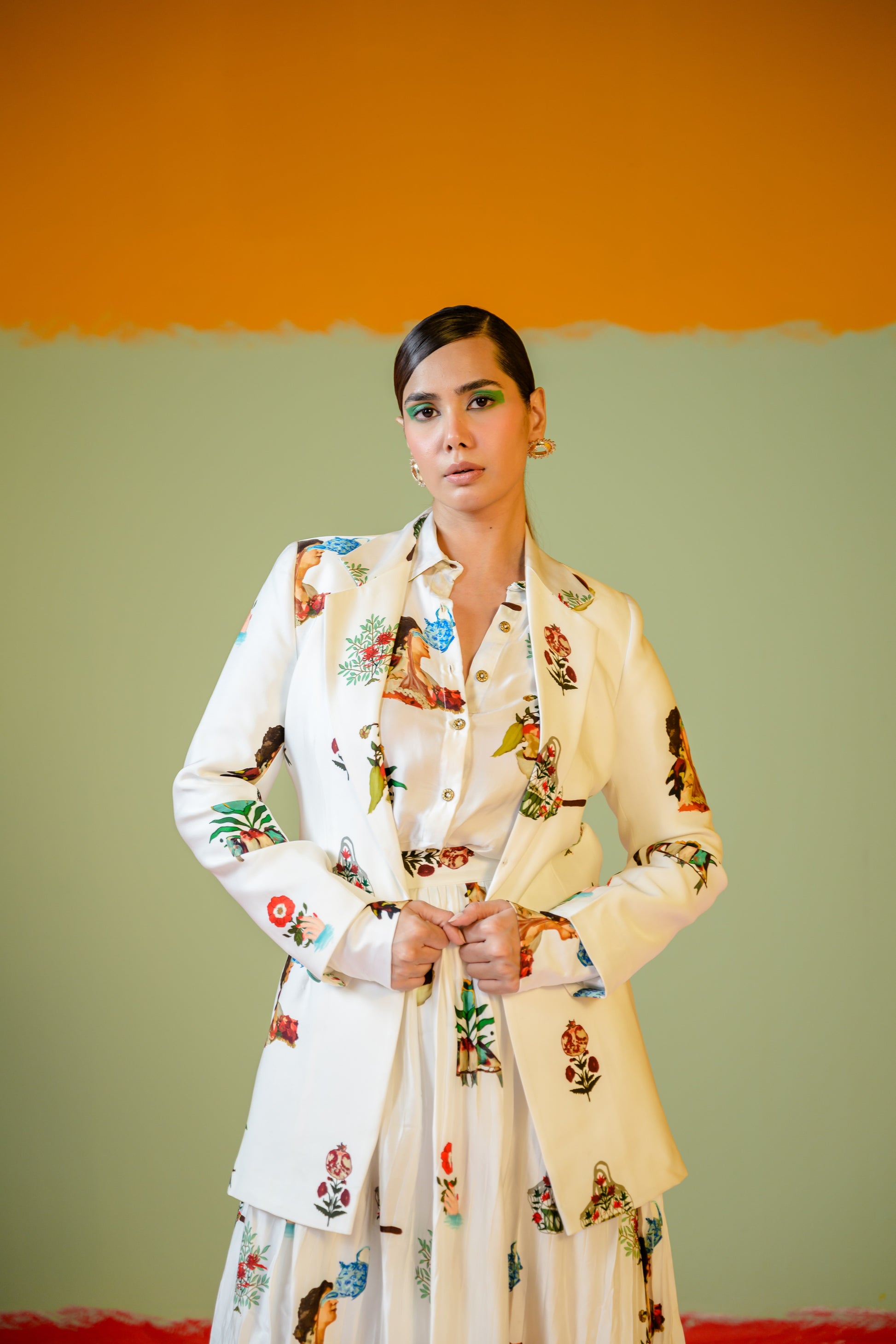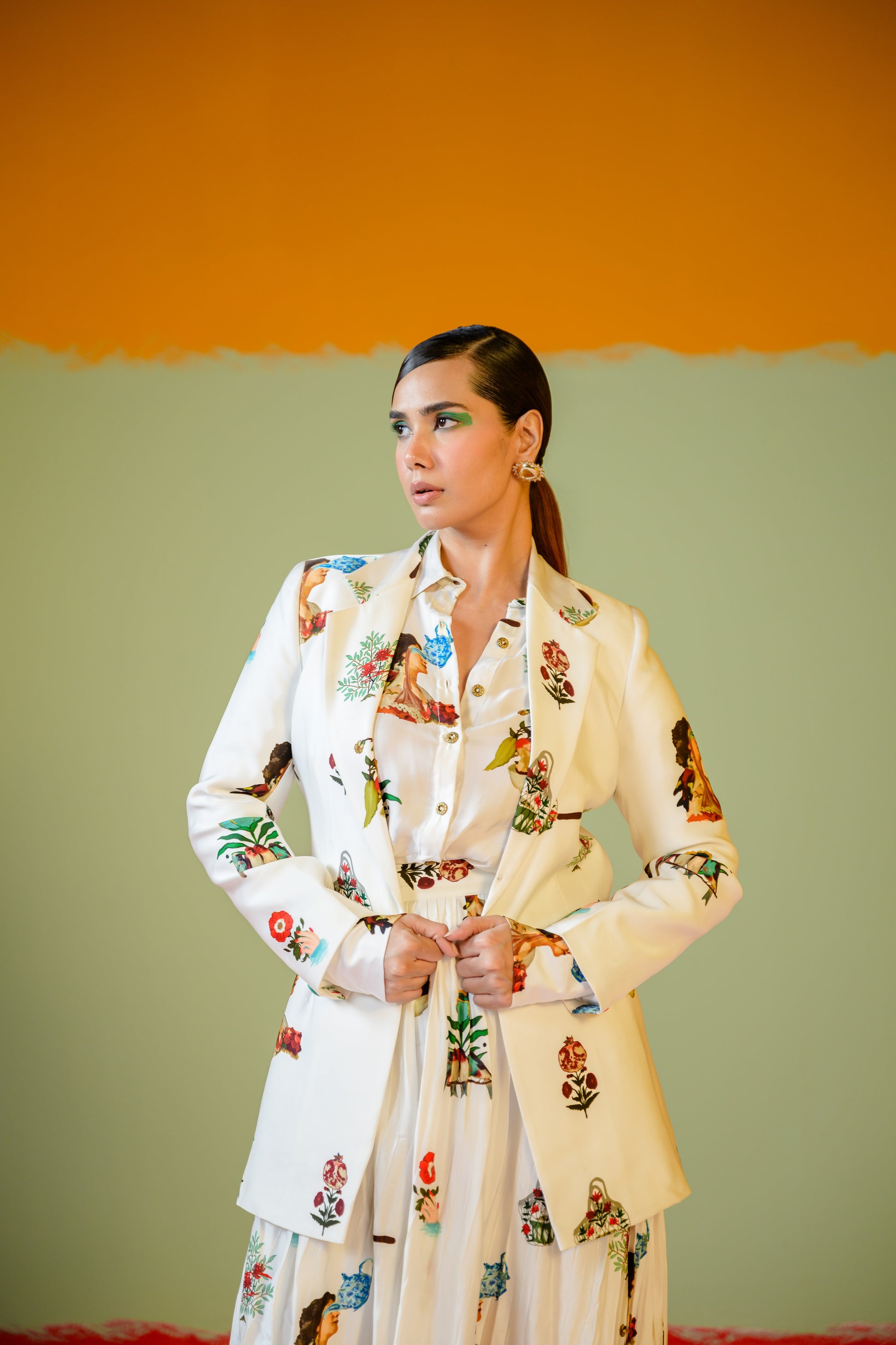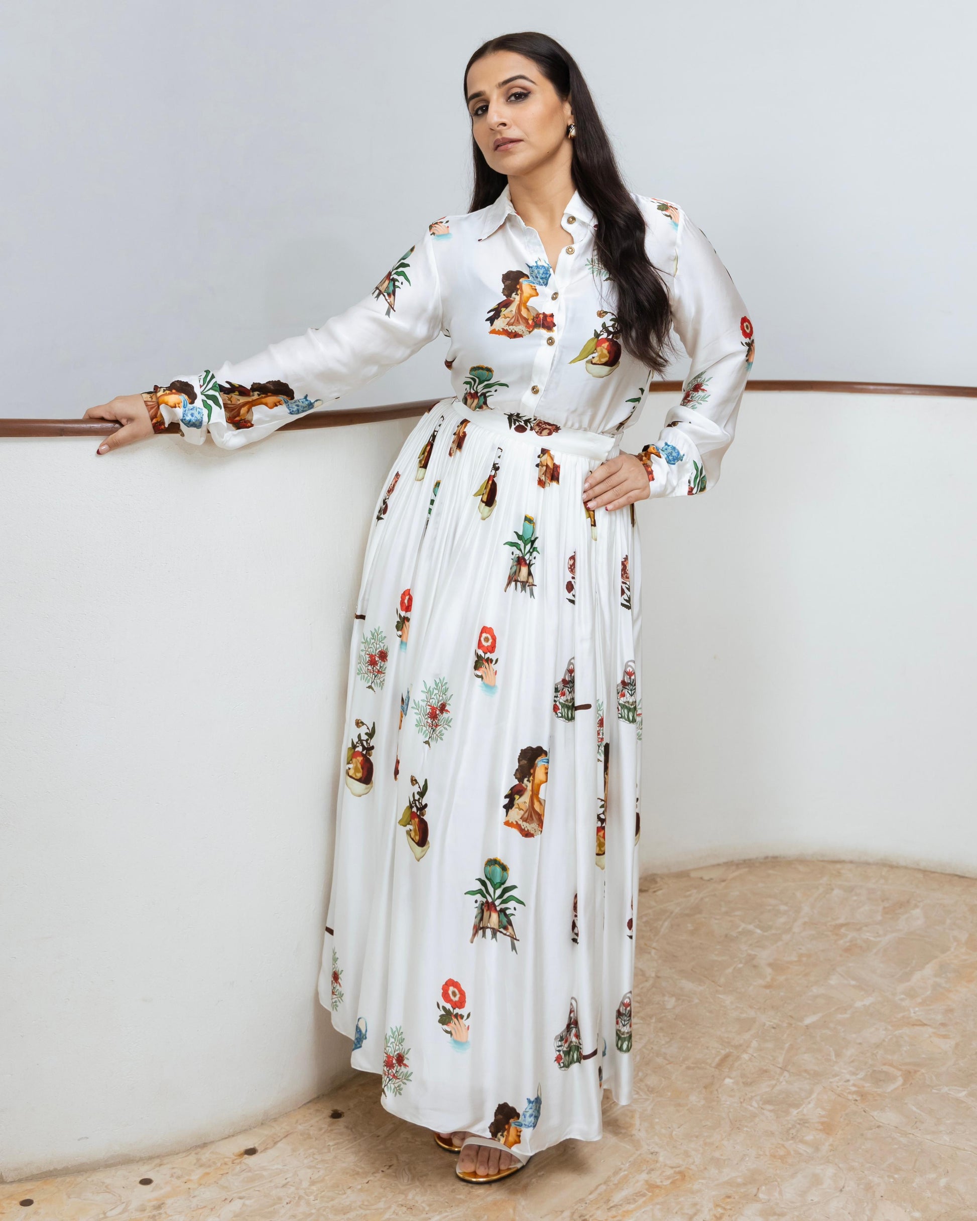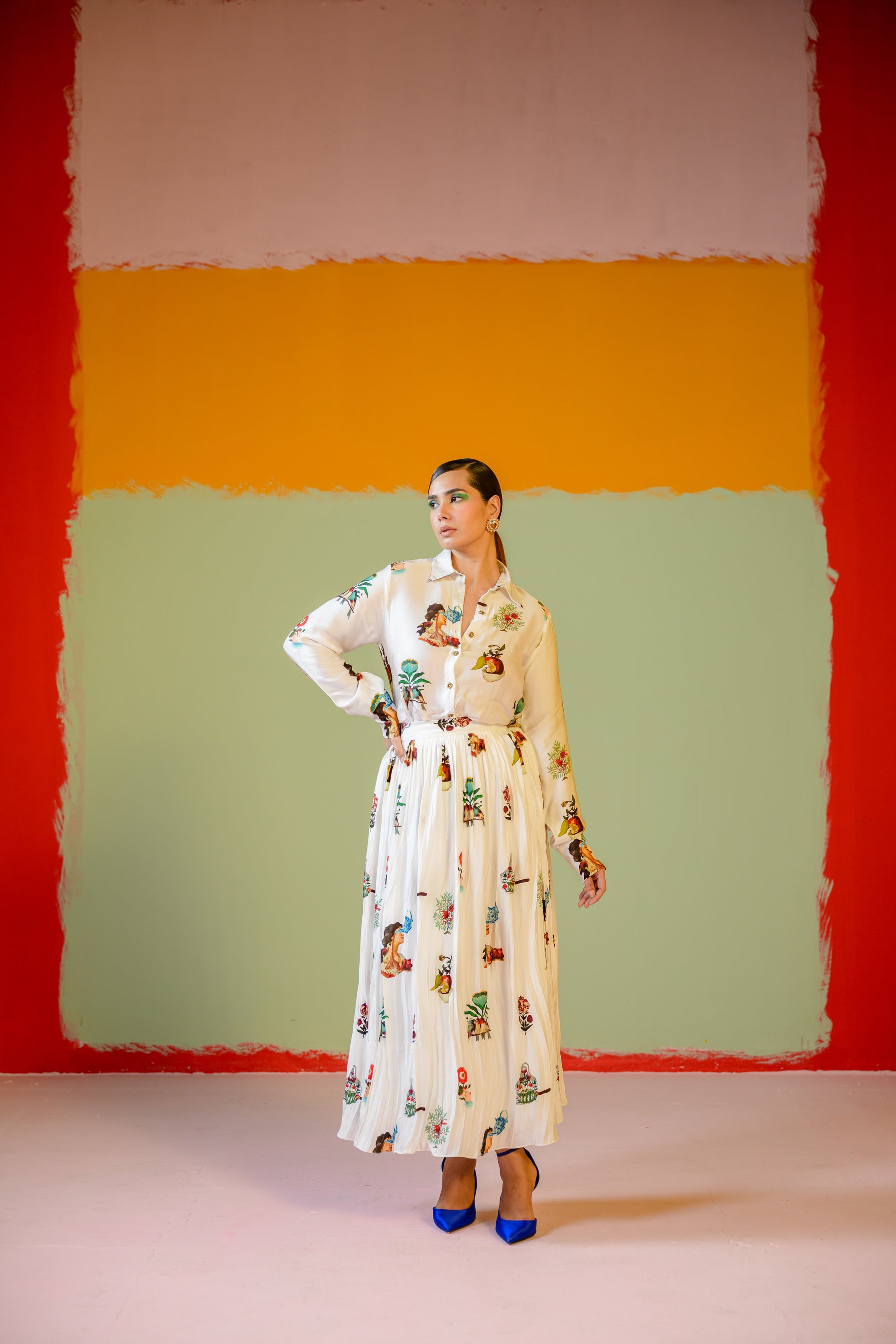 Rani Shirt Paired With Rani Pleated Skirt Set
