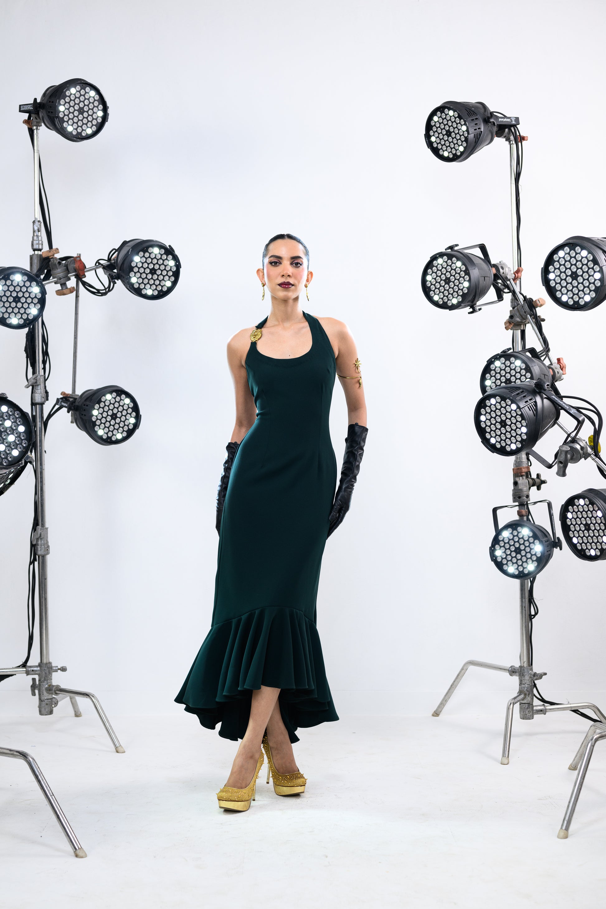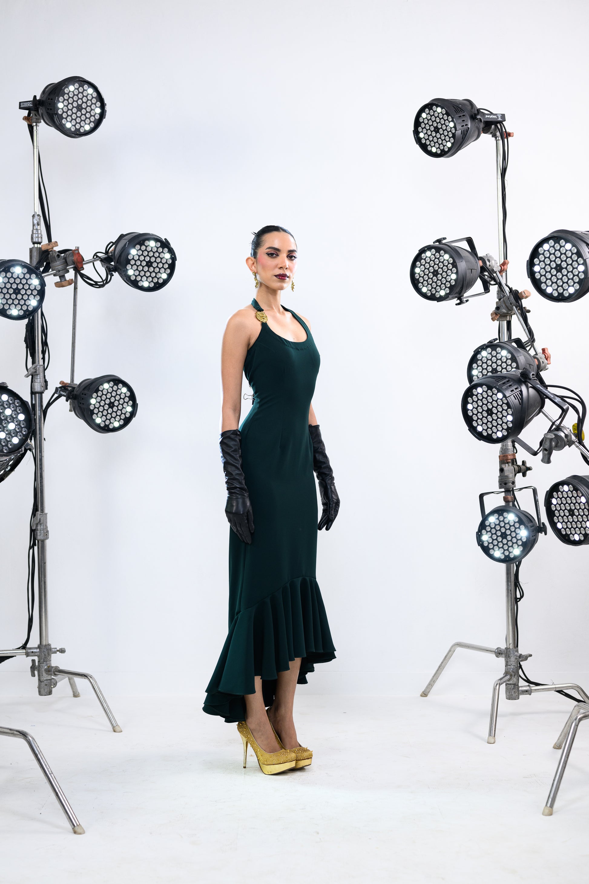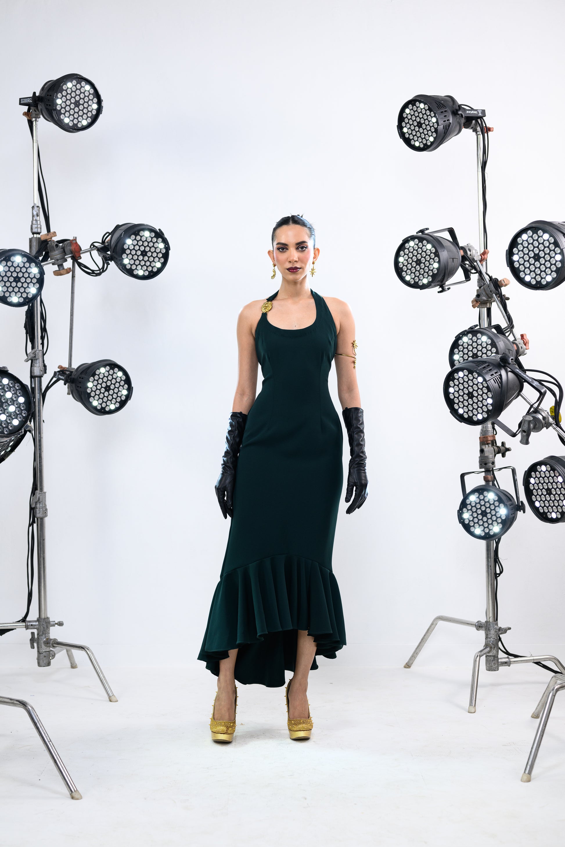 SUN STRAPPED EMERALD BALLOON DRESS