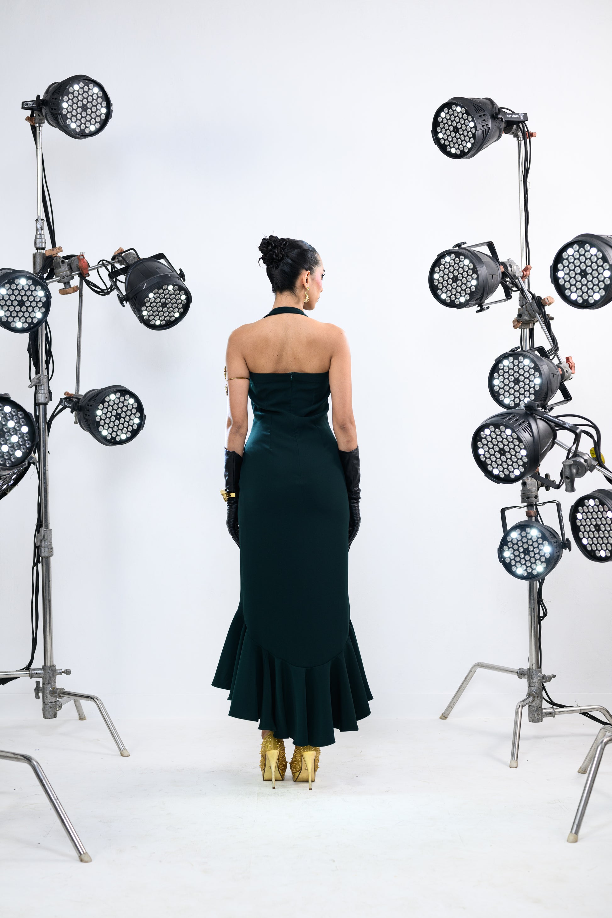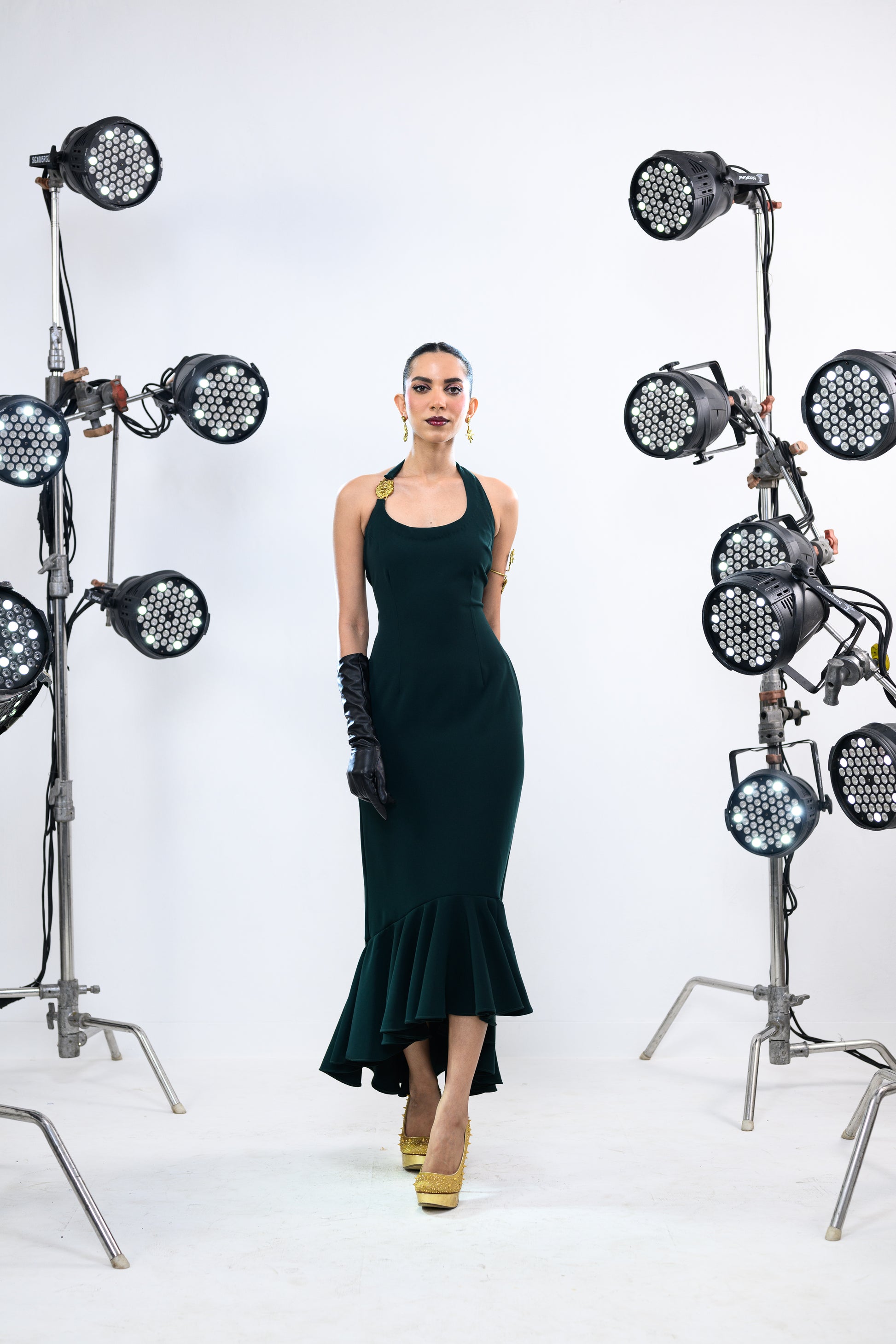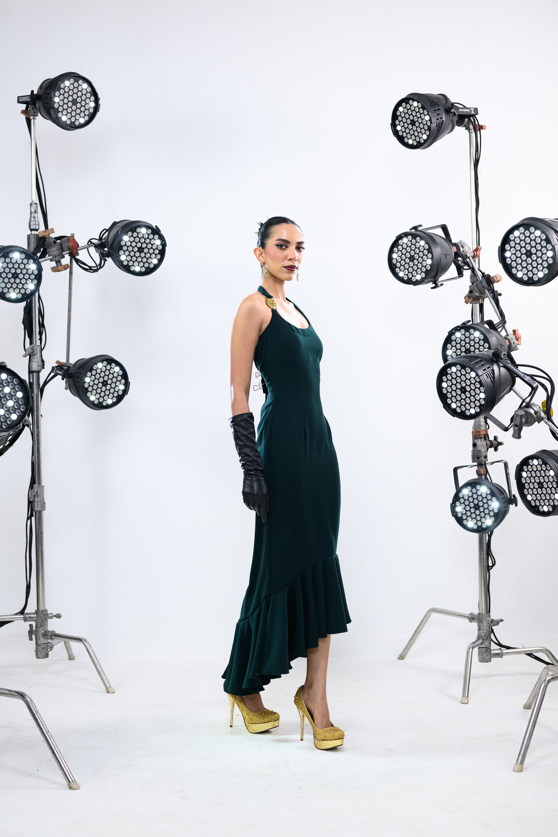 SUN STRAPPED EMERALD BALLOON DRESS