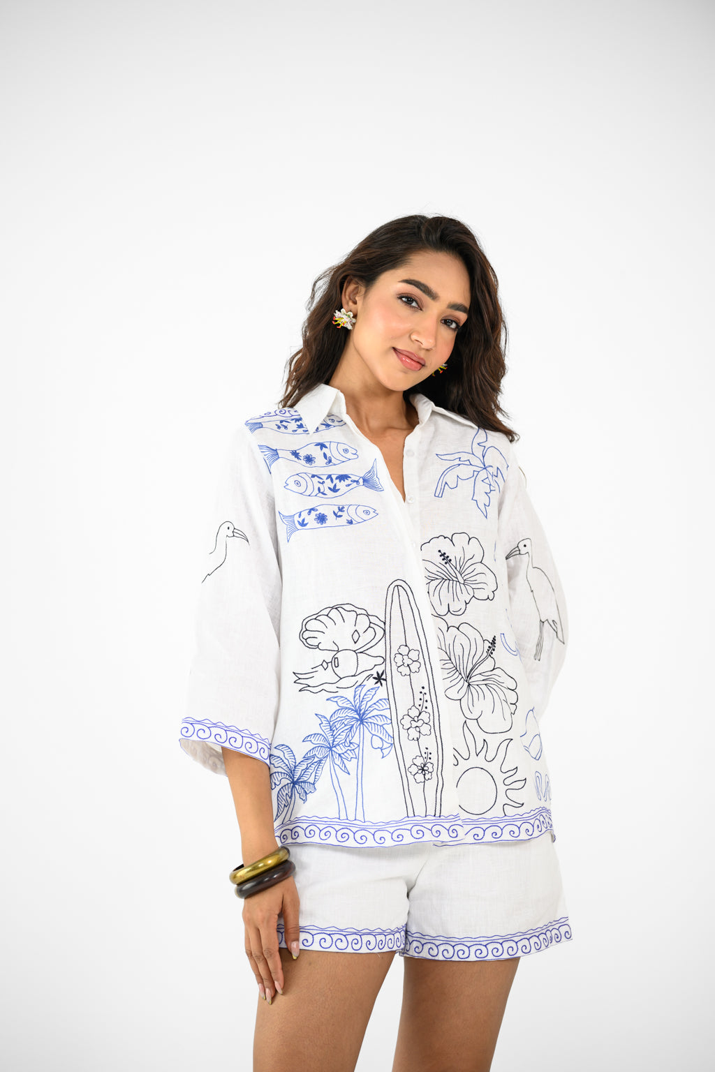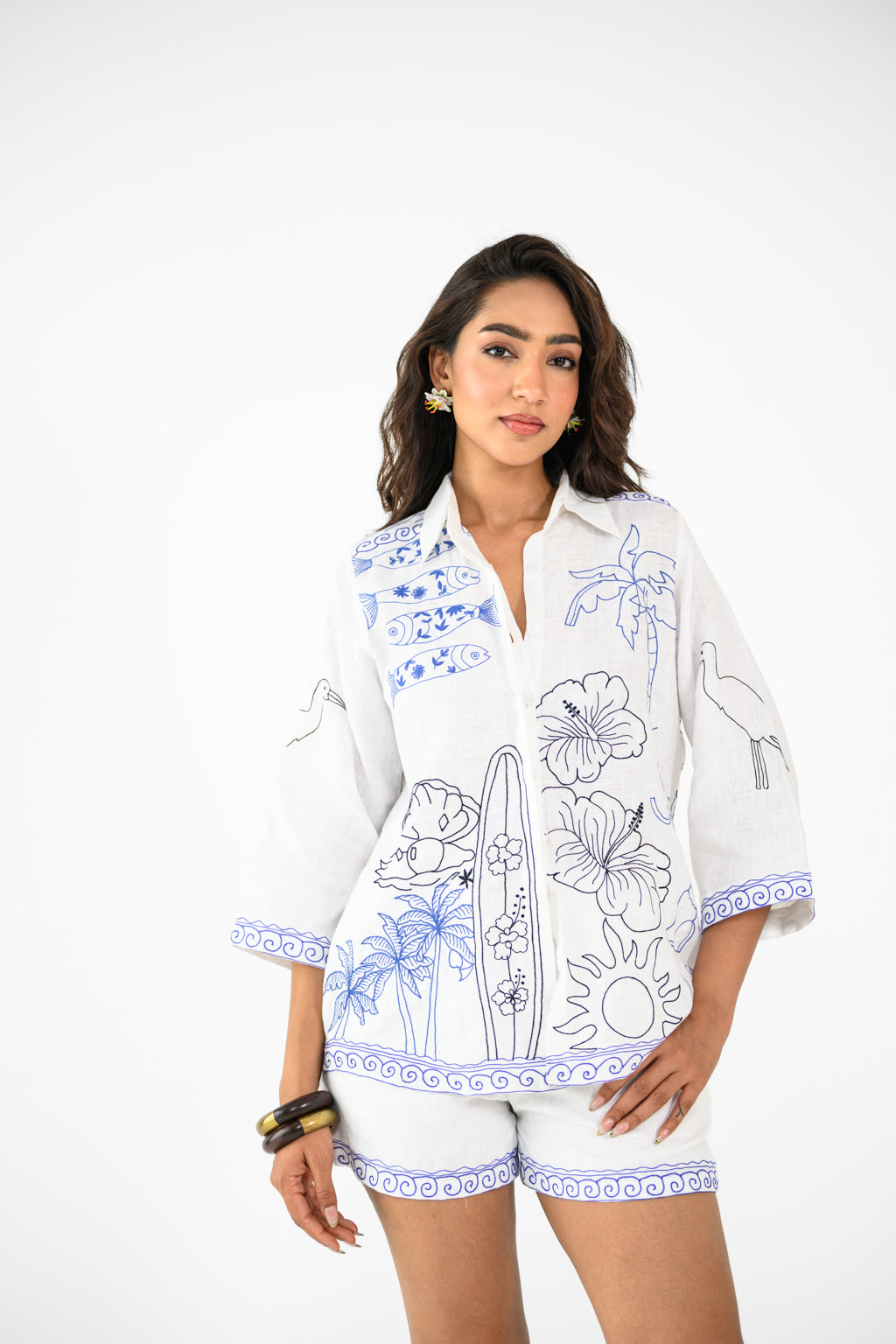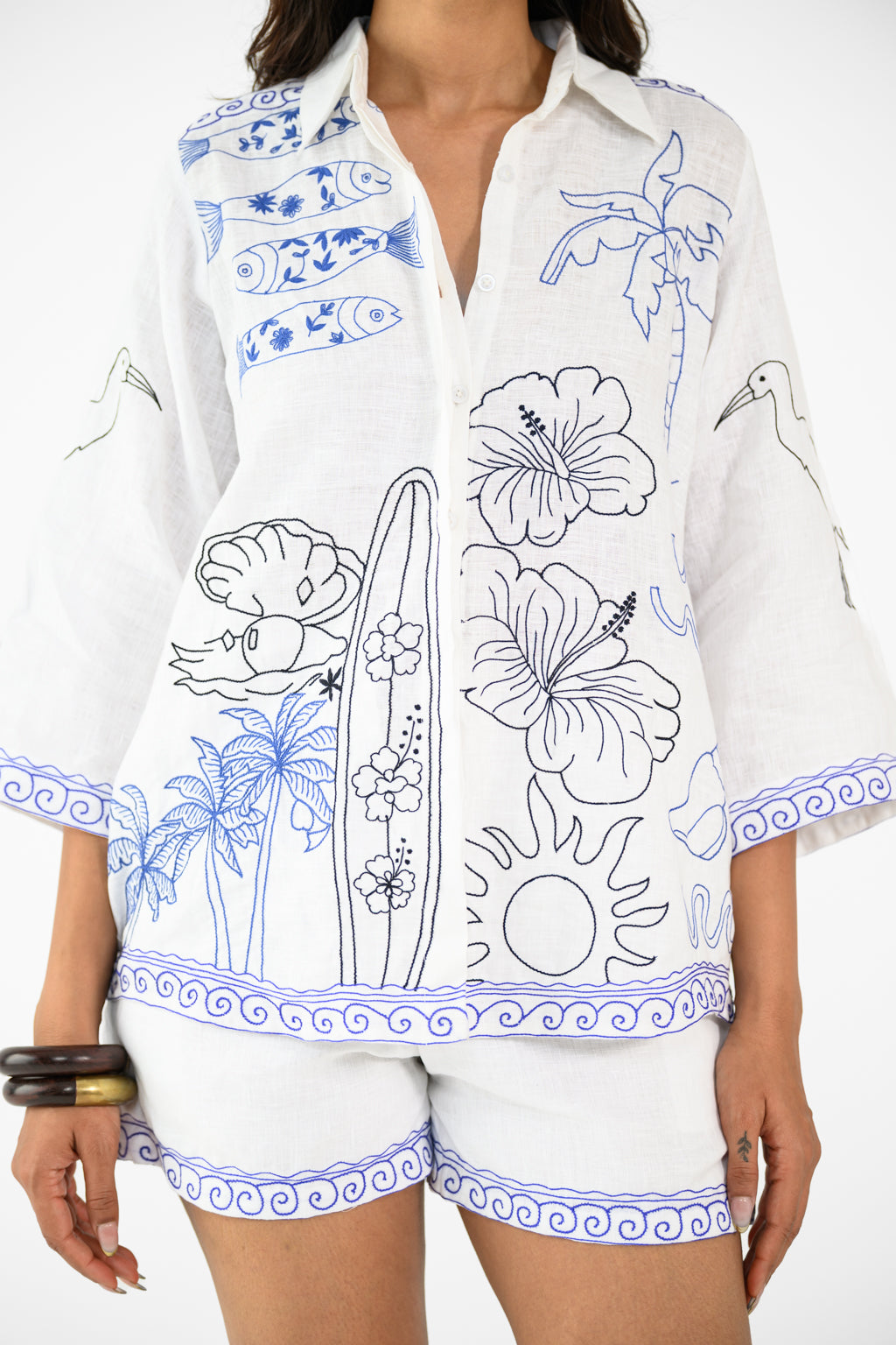 WHITE BEACH SHIRT AND SHORTS