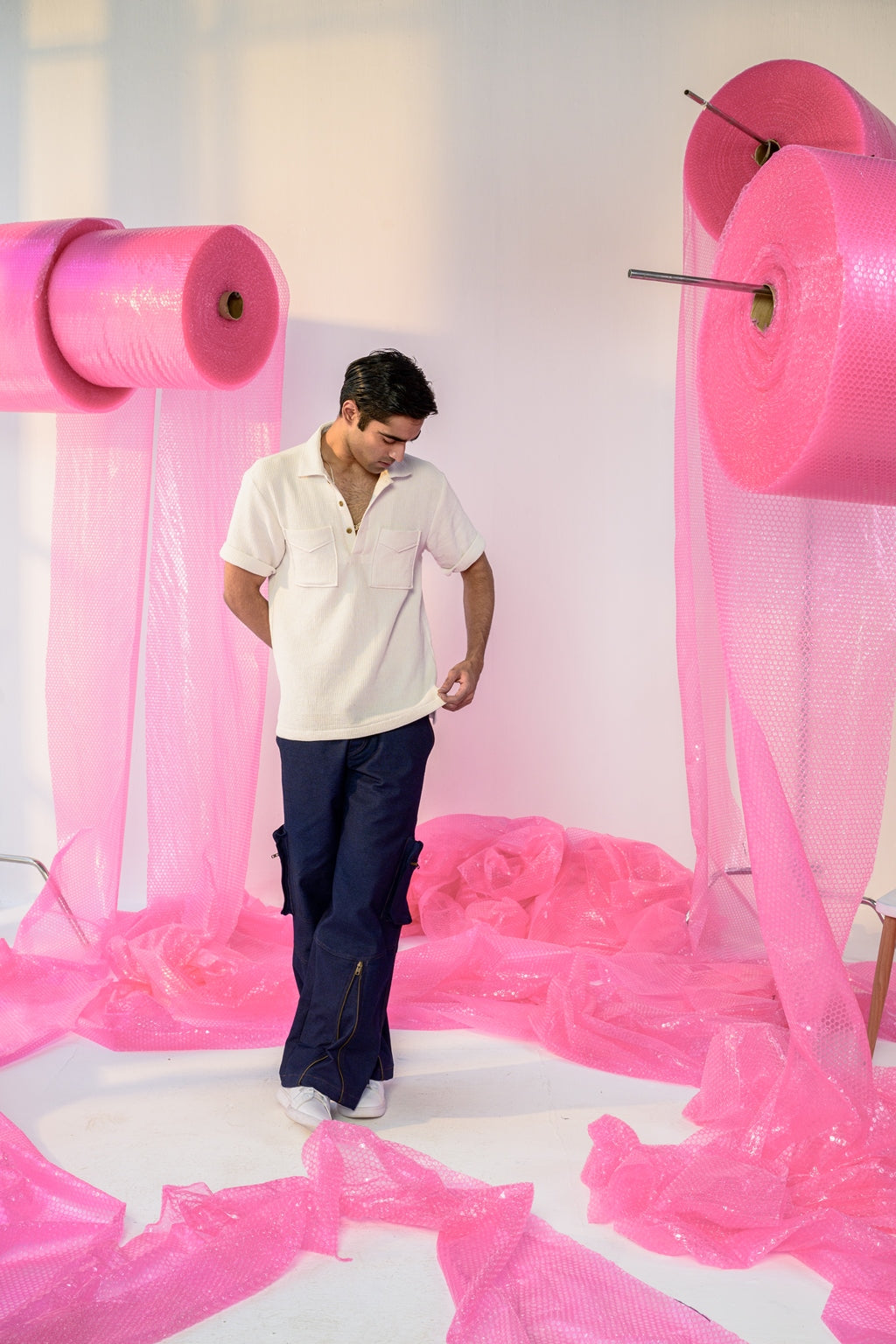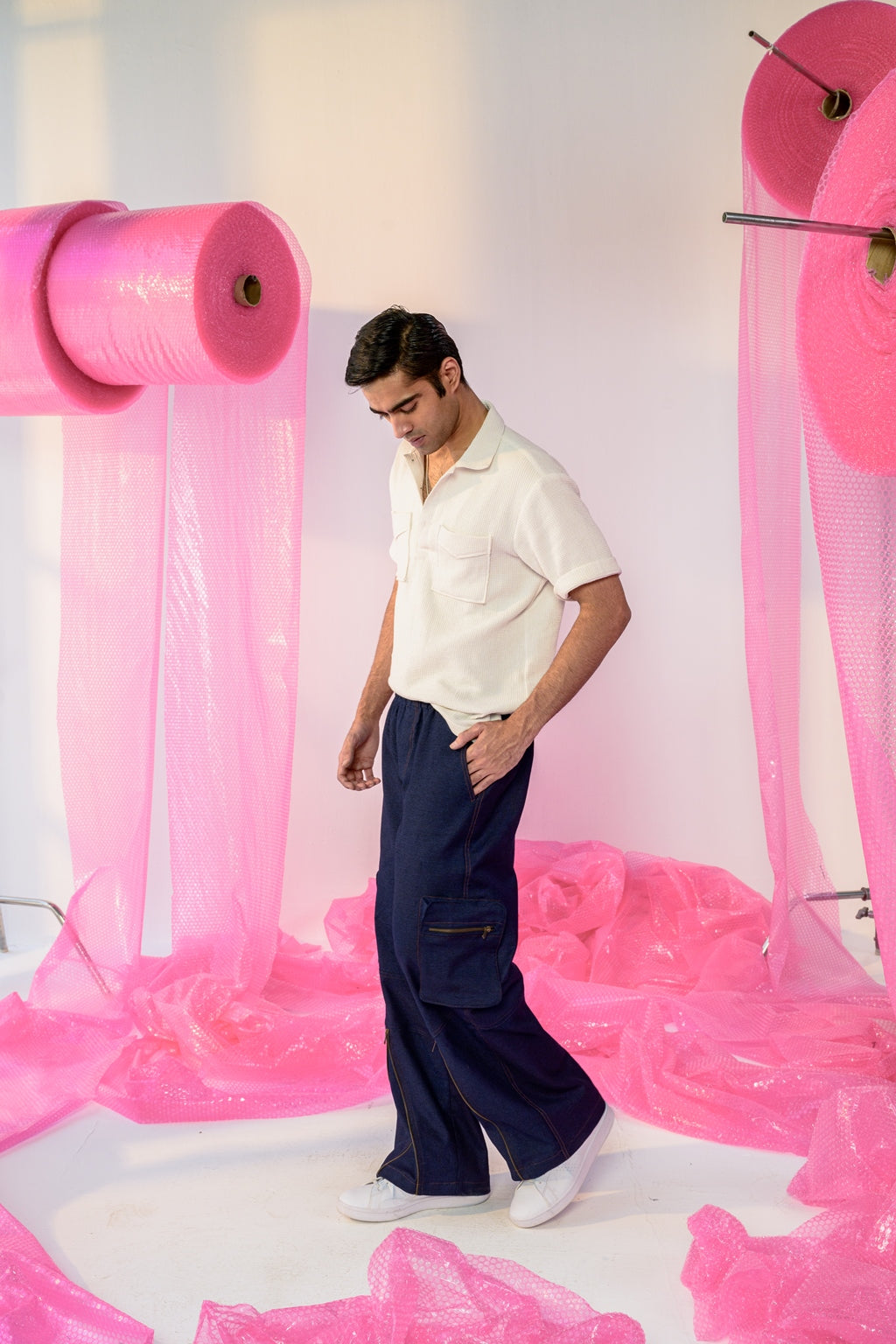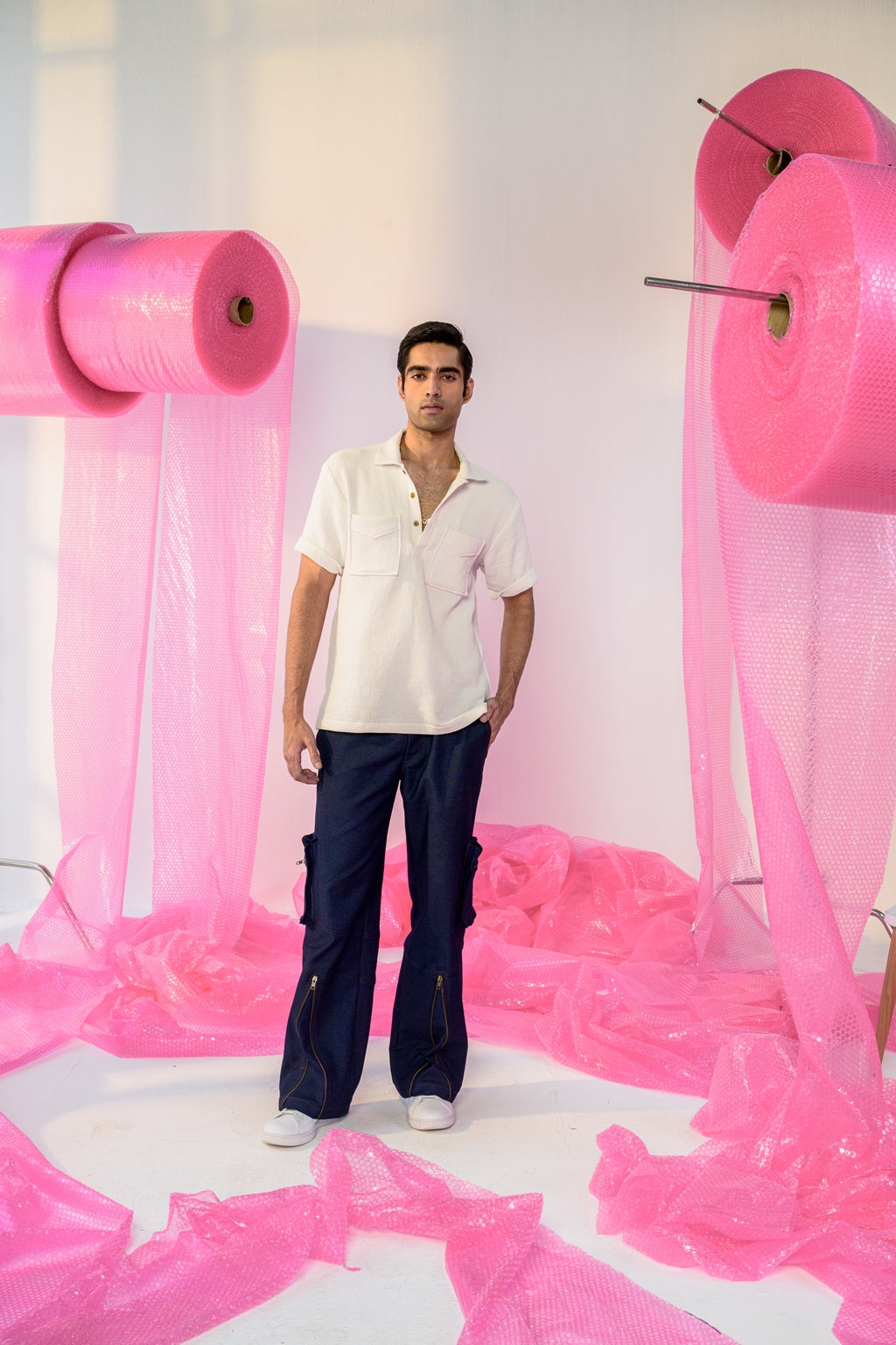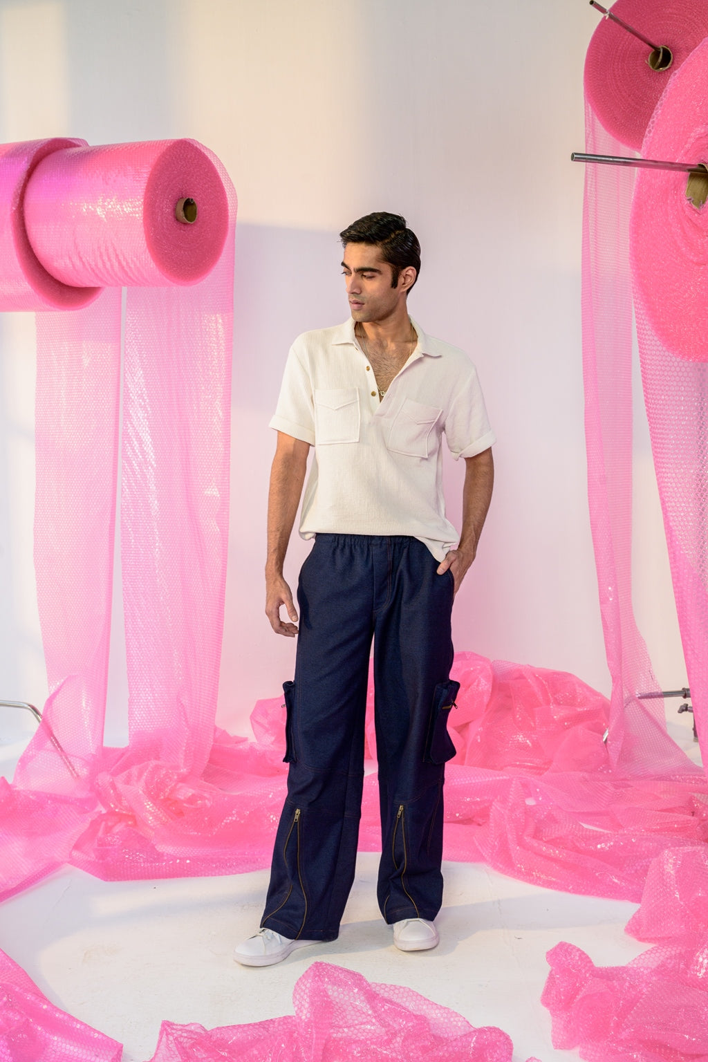 White Dotted Tshirt With Amelia Zip Cargo Men